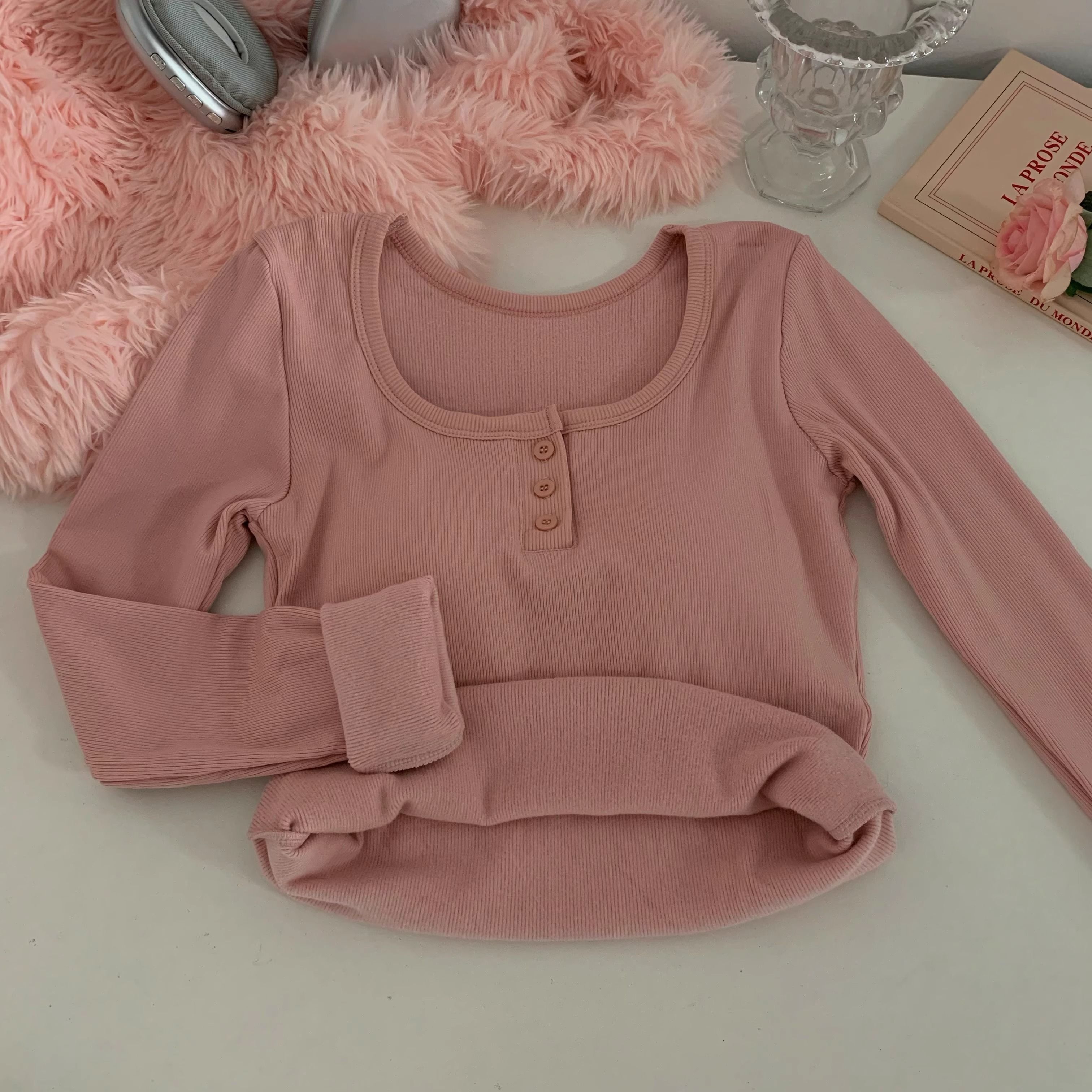 ![[With Chest Pads] Square Neck Fleece-Lined T-Shirt for Women, Autumn/Winter Slim Fit Warm Short-Sleeve Inner Layer Base Shirt](images/mrwg/mrwg729e_02.jpg)