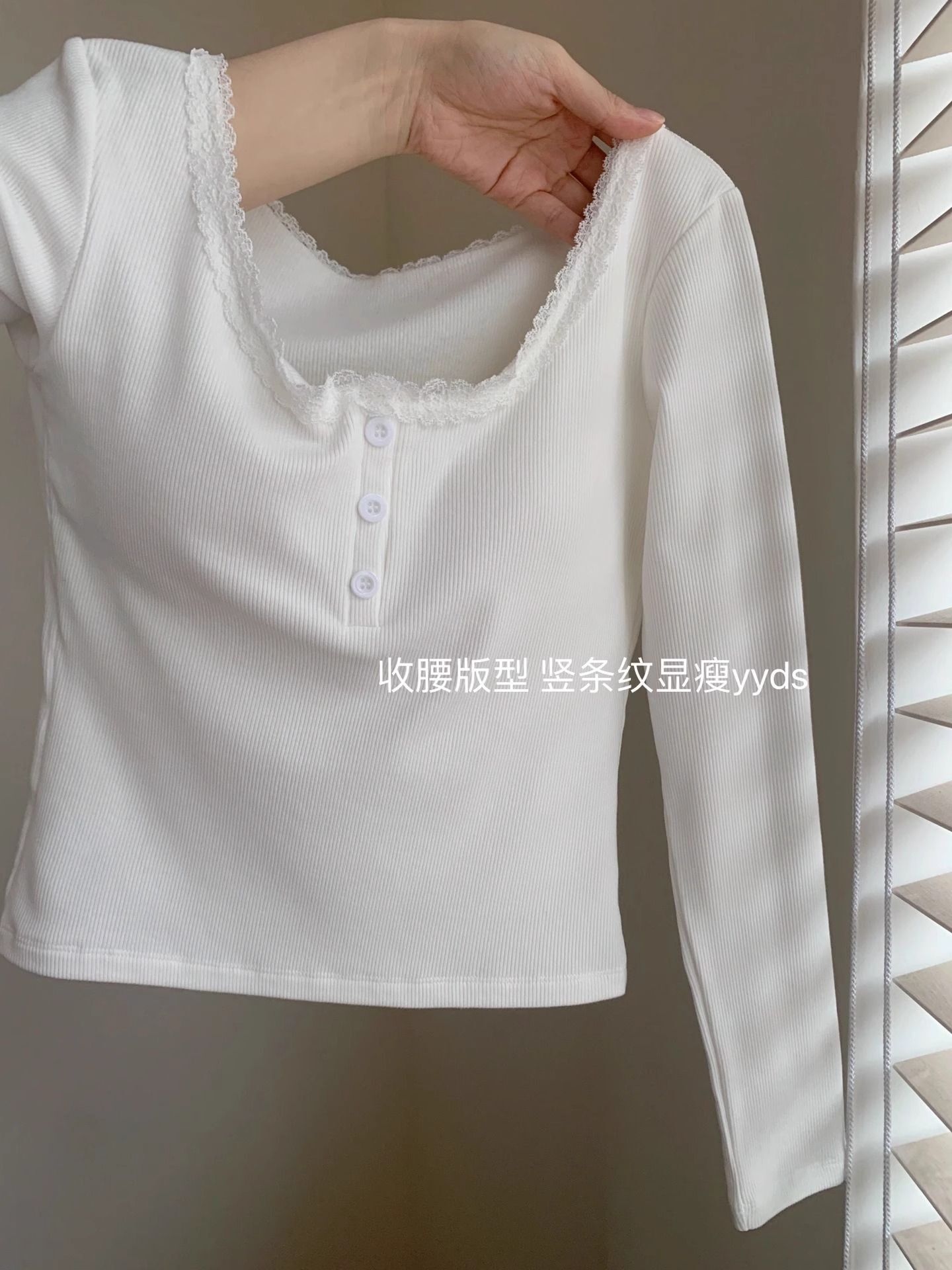 ![[With Bra Pads] Long-sleeved Lace-trimmed T-shirt for women, sweet and warm for winter, with bra pads, versatile and sexy base layer.](images/mrwg/mrwg739e_04.jpg)