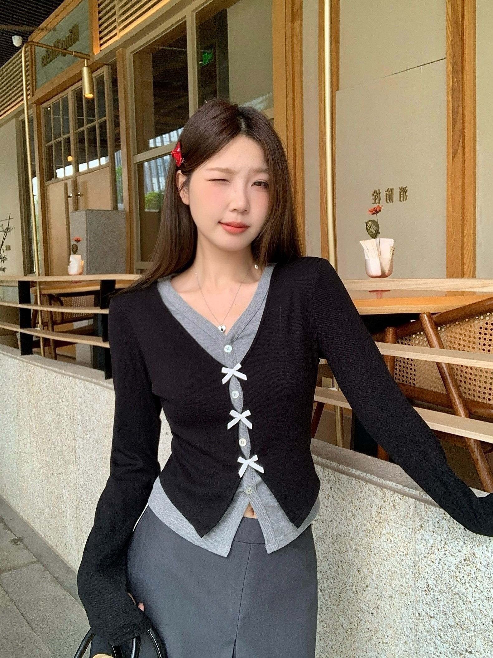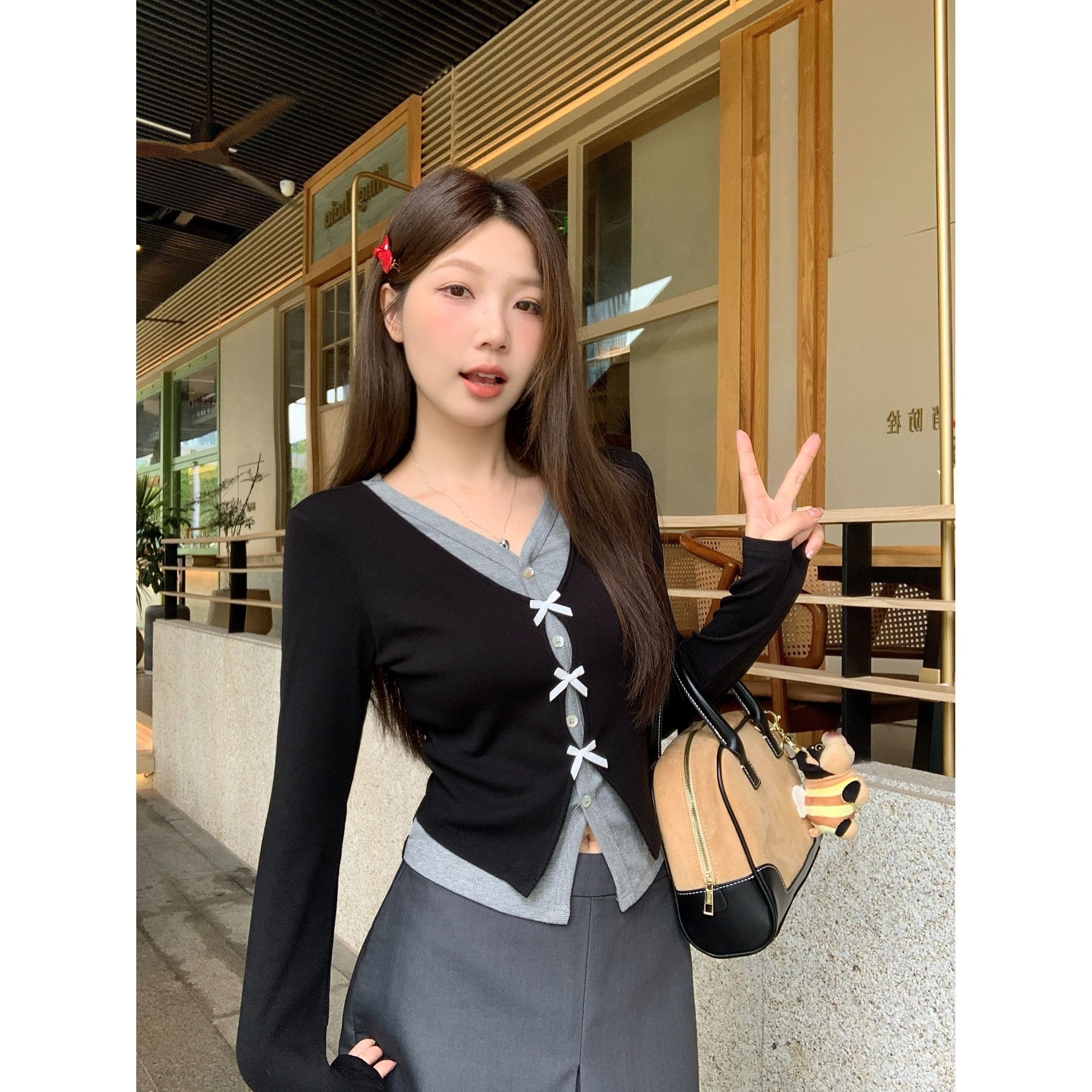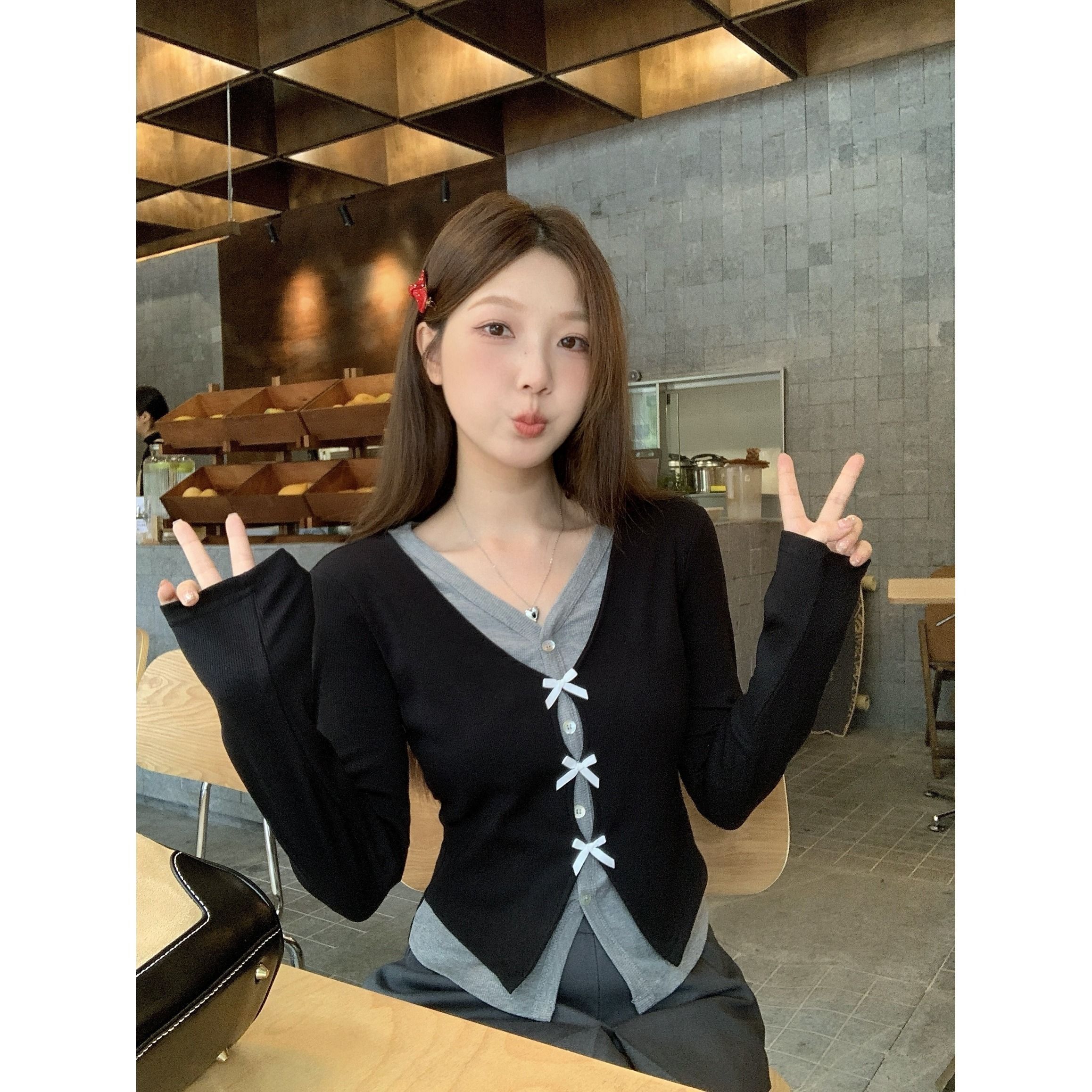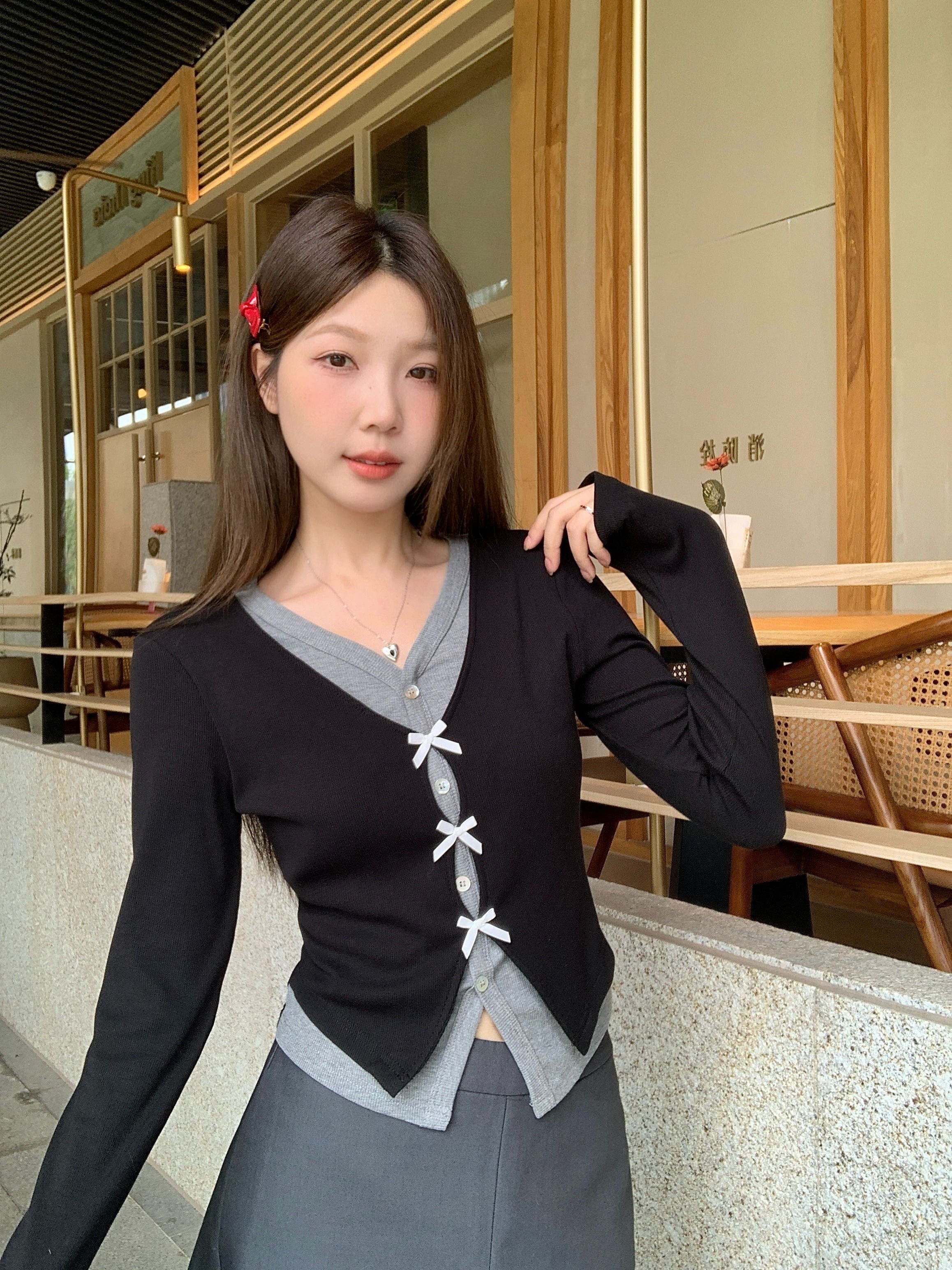 ![MR [Imitation Cotton Ribbed] Long-Sleeve Faux Two-Piece T-Shirt for Women, Autumn, Slimming Waist, Color Blocking Top, Niche Sweet Style](images/mrwg/mrwg762e_01.jpg)