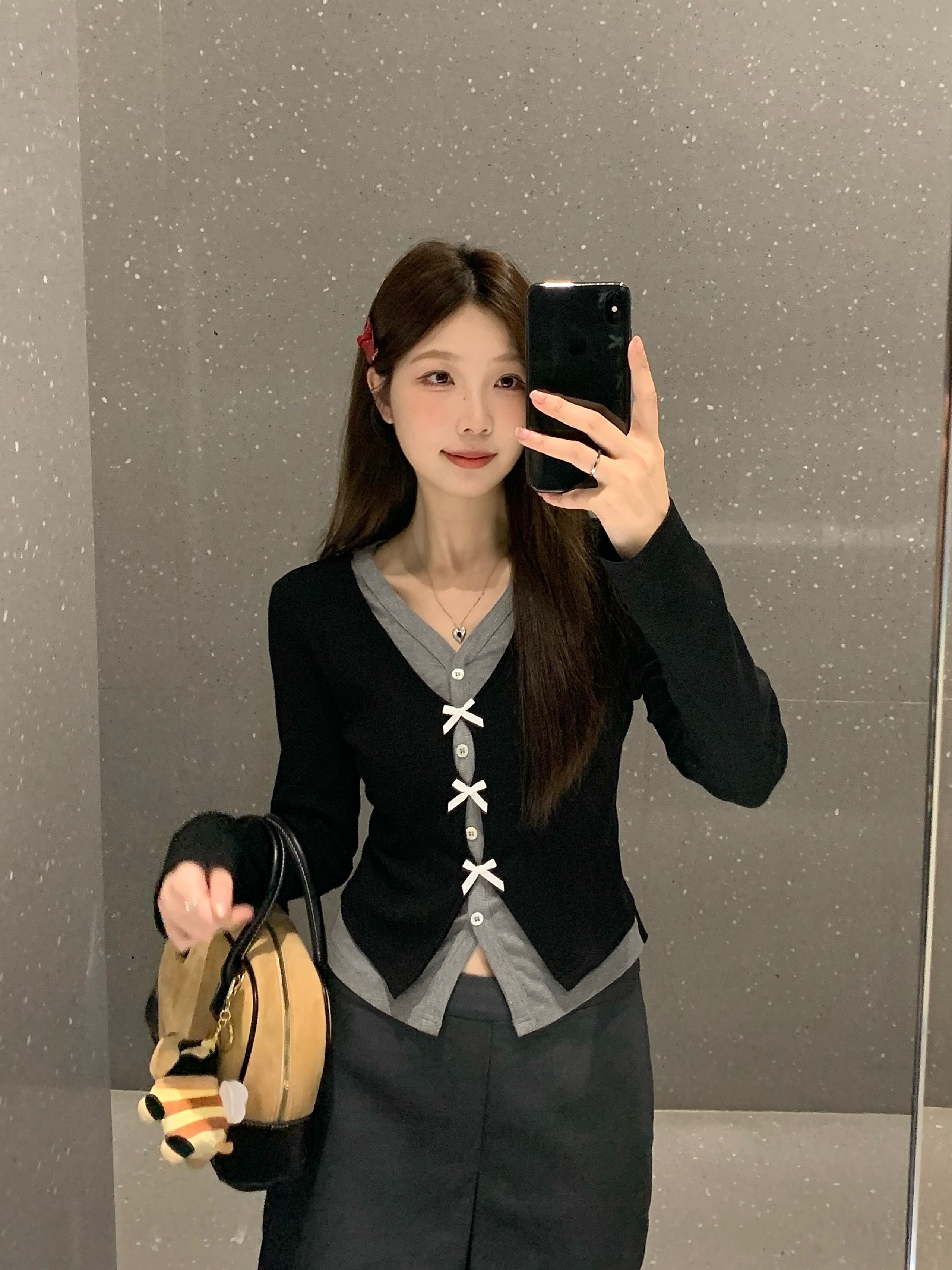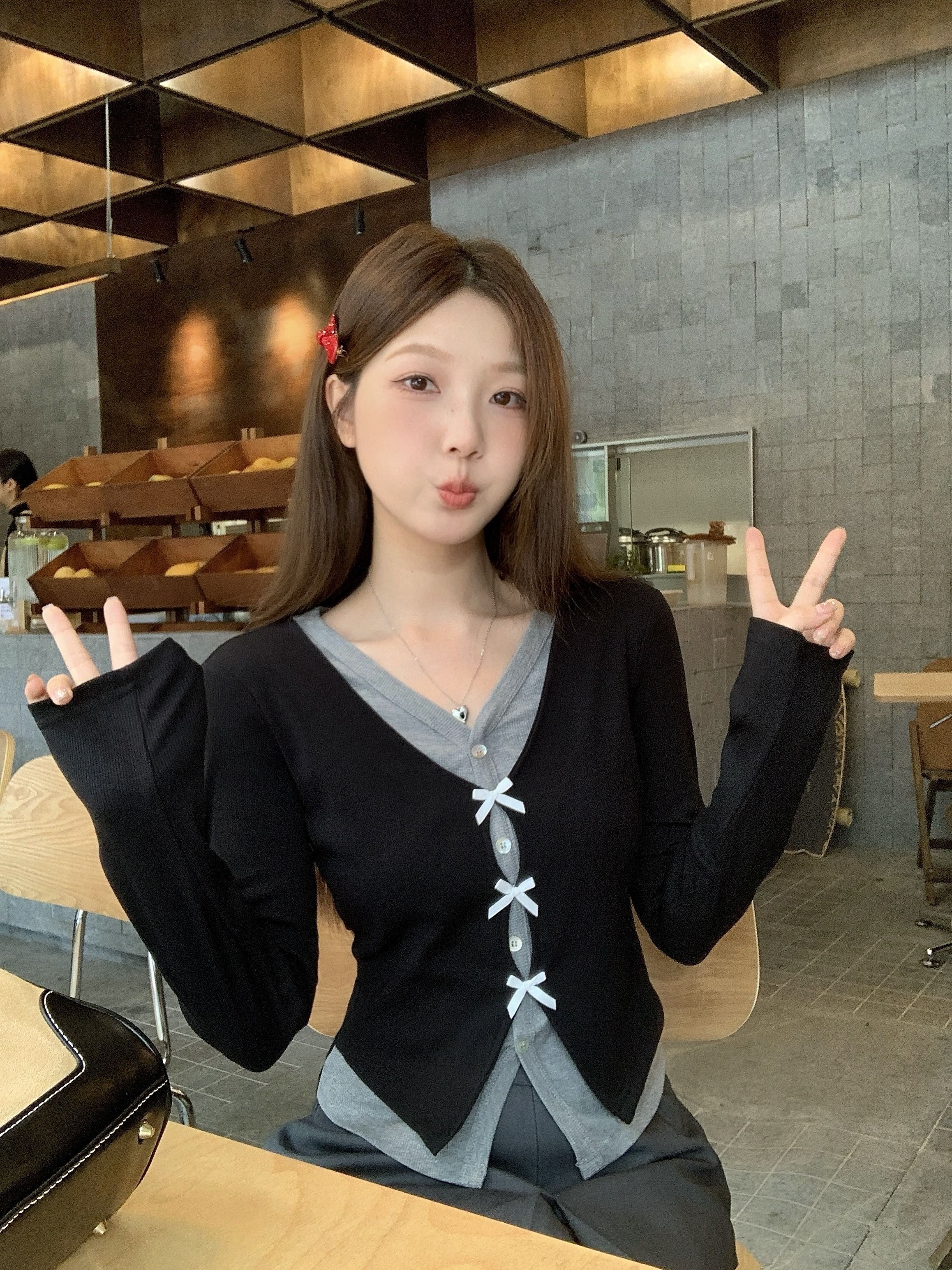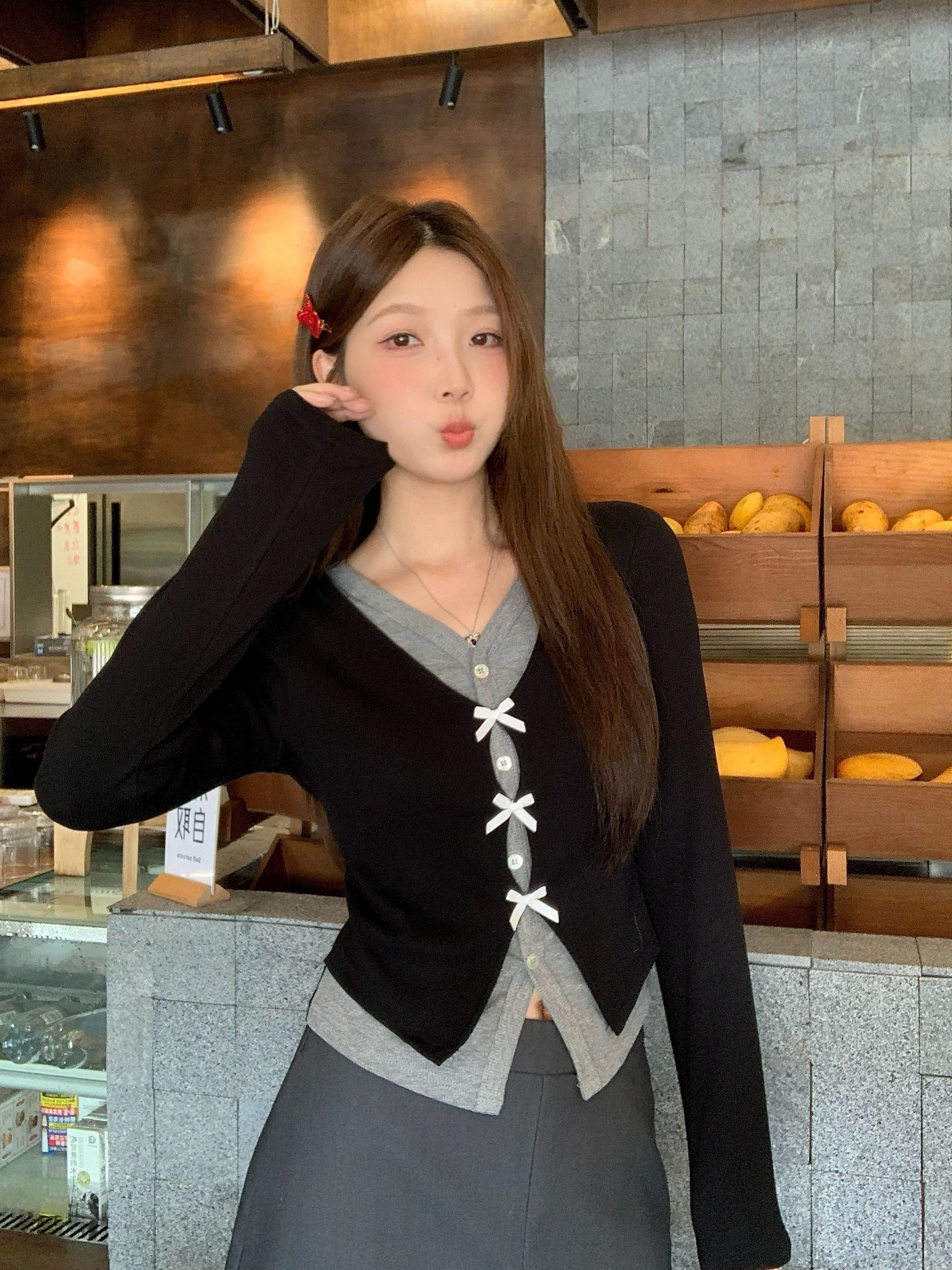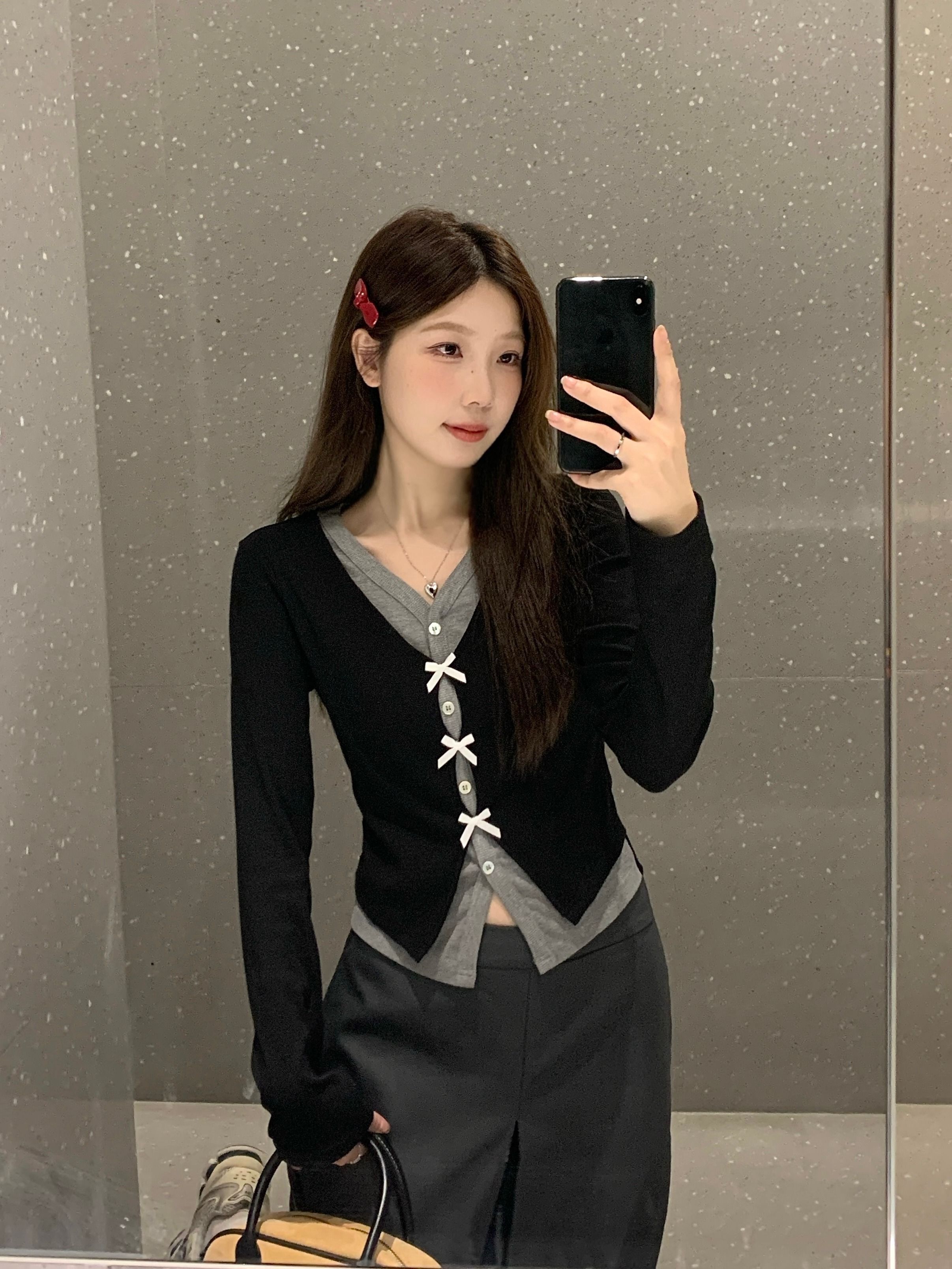 ![MR [Imitation Cotton Ribbed] Long-Sleeve Faux Two-Piece T-Shirt for Women, Autumn, Slimming Waist, Color Blocking Top, Niche Sweet Style](images/mrwg/mrwg762e_01.jpg)