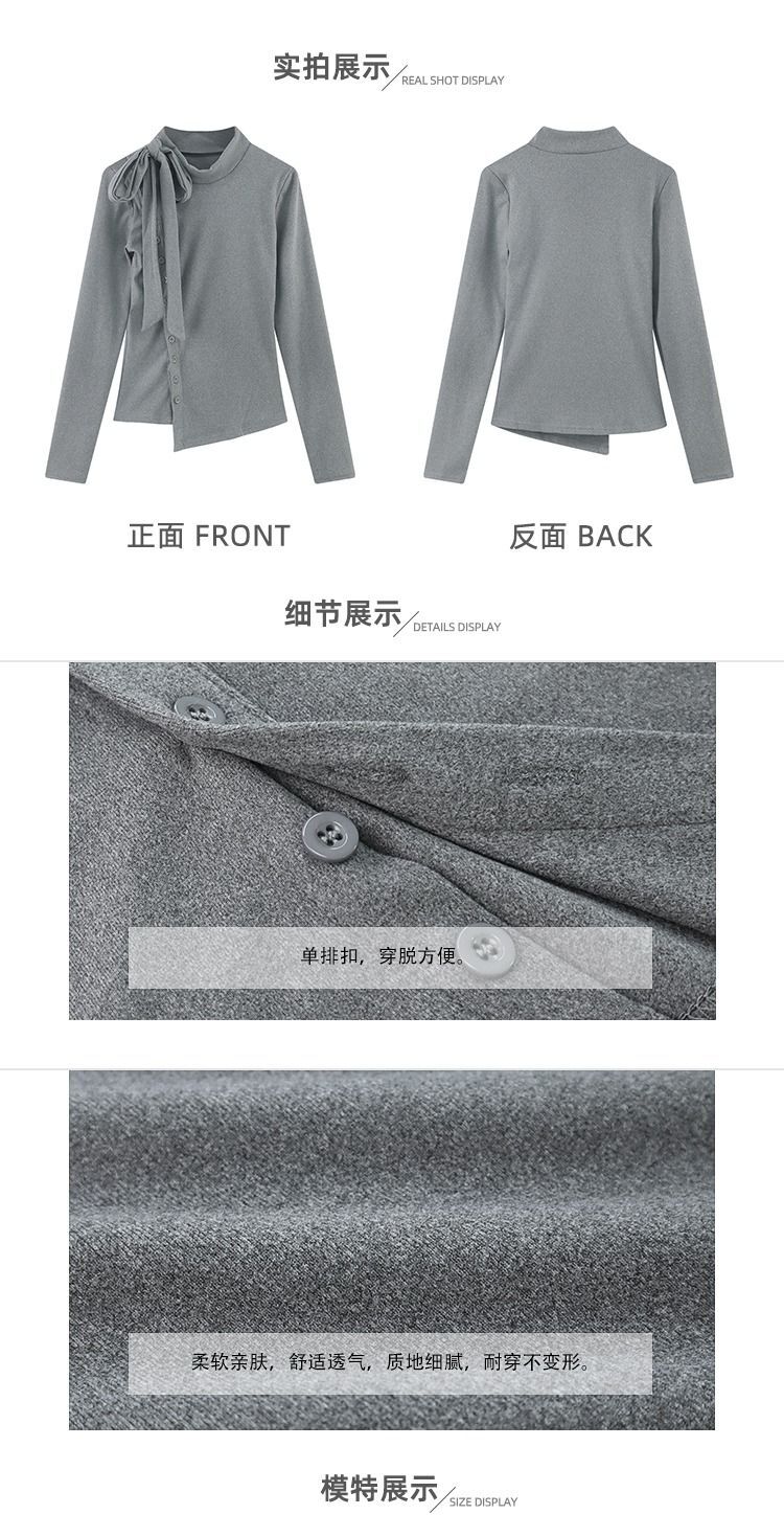 ![MR [Original German Velvet Ribbed Fabric] French Tie-Neck Base Layer Women's Autumn and Winter Thickened German Velvet Long](images/mrwg/mrwg782e_04.jpg)