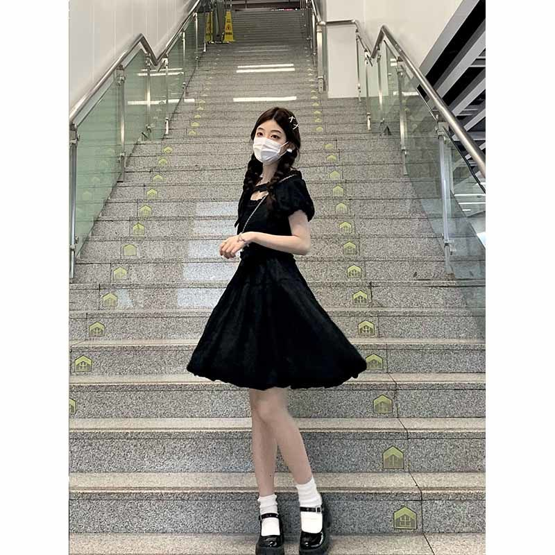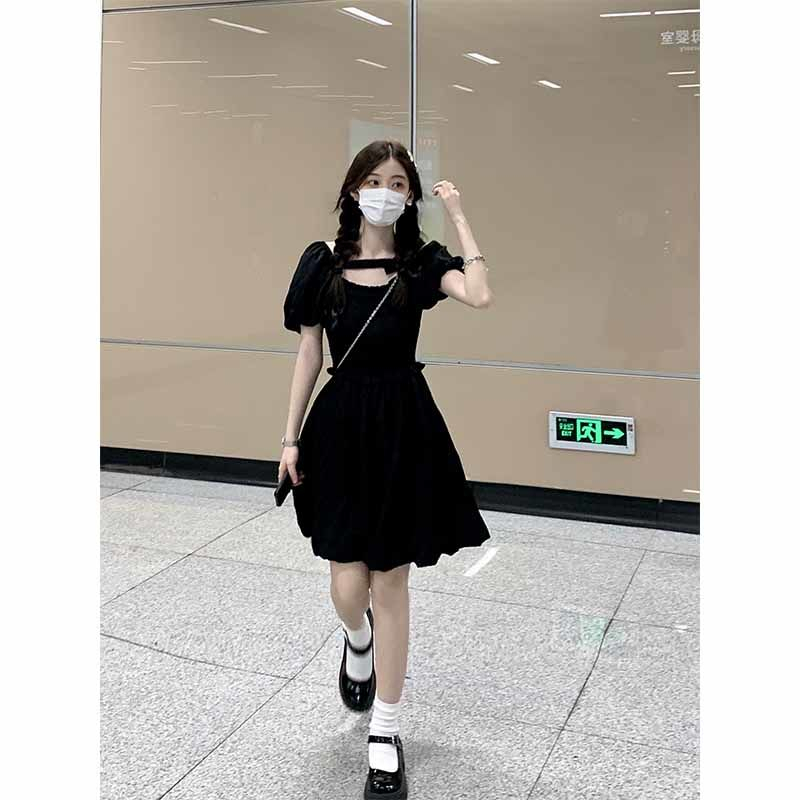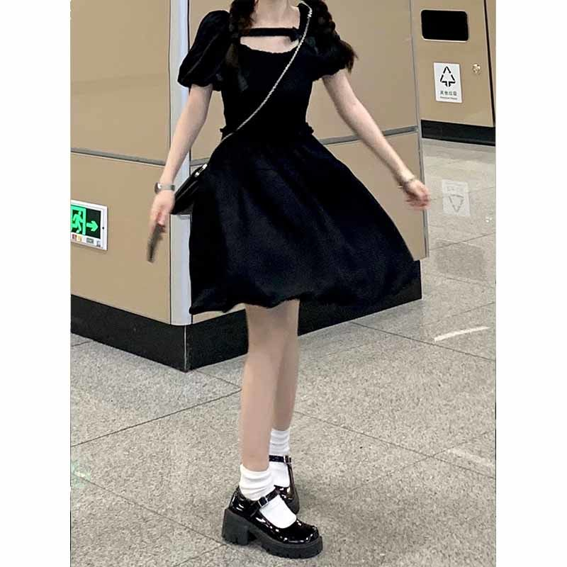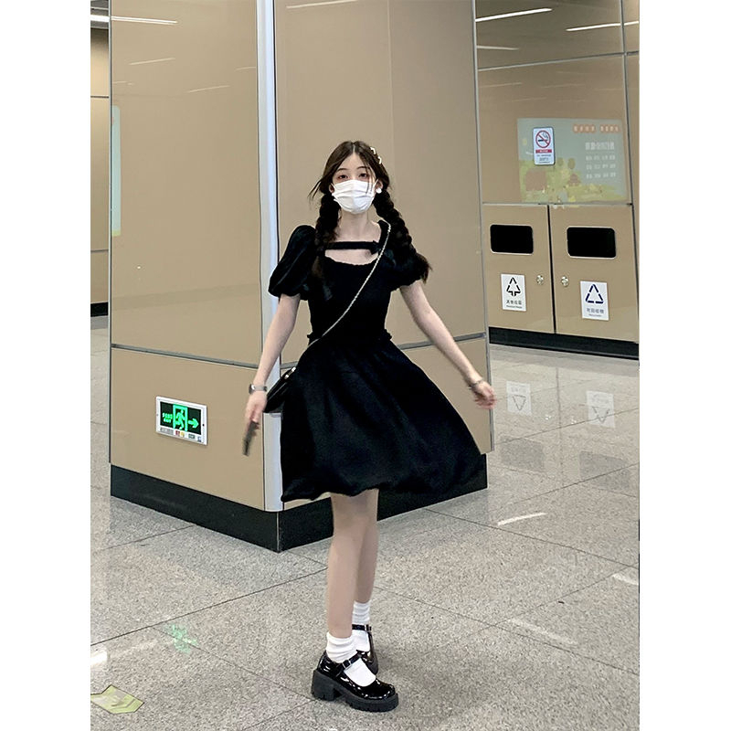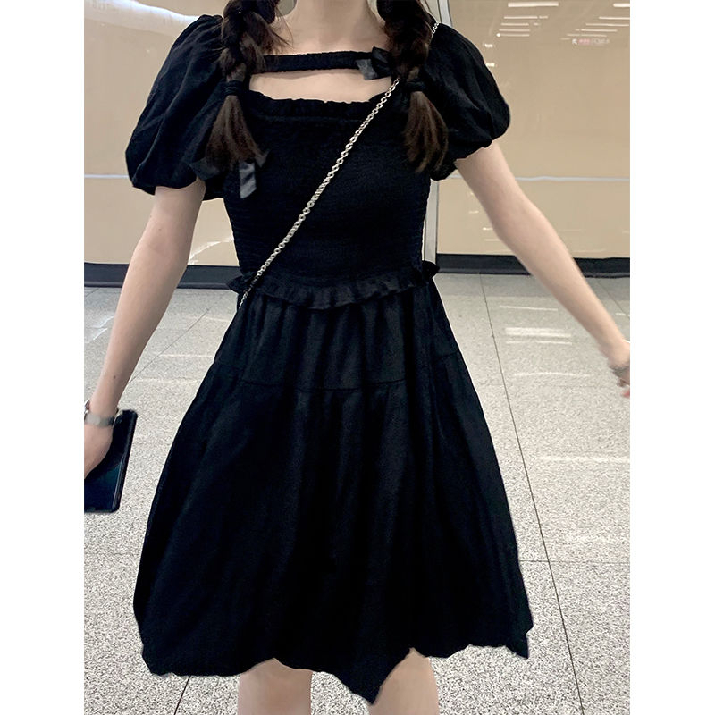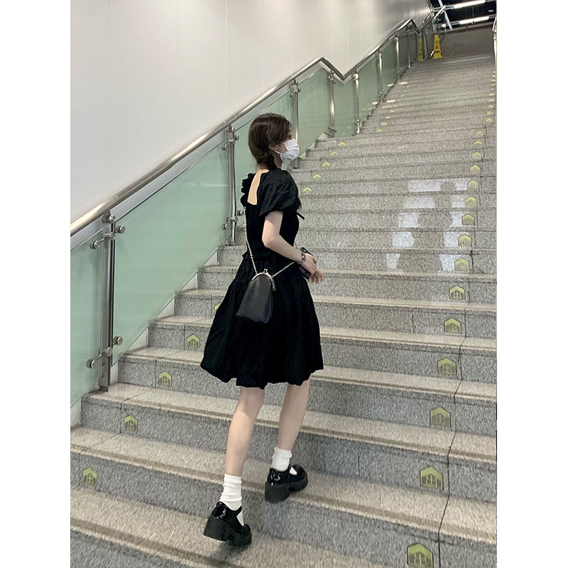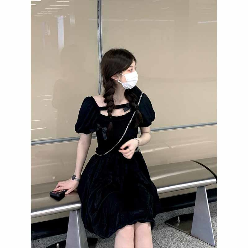 French little black dress, courtly style design, new summer 2025 style, waist-cinching, slimming, bow-tie short-sleeved jumpsuit