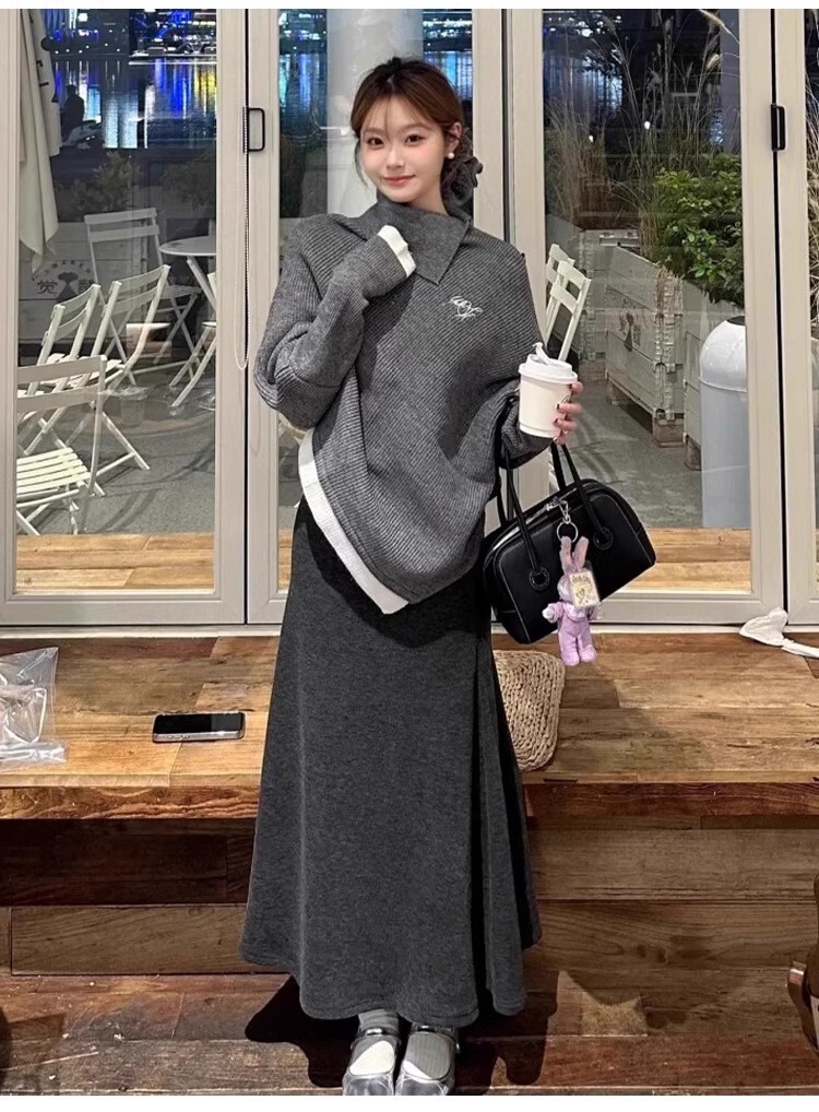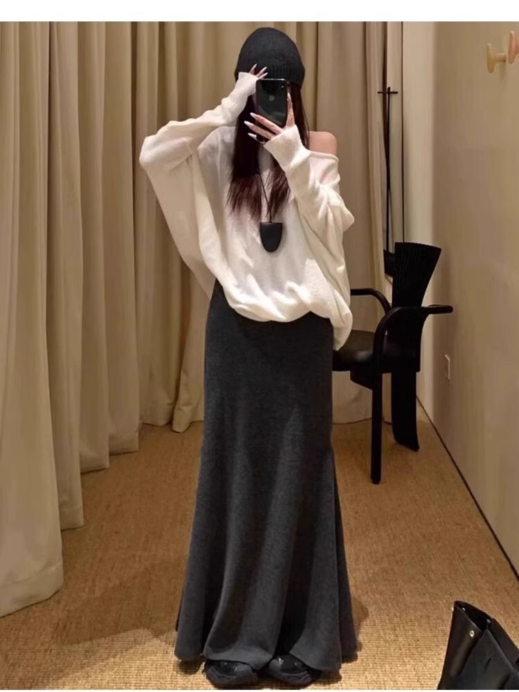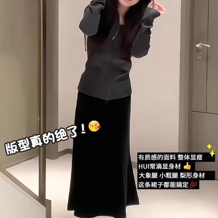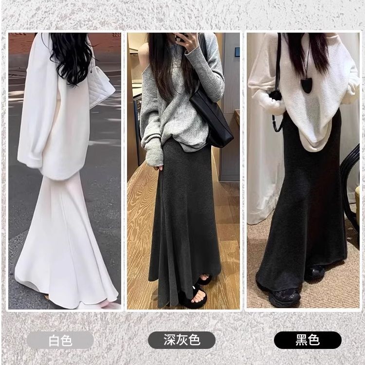 • Grey knitted fishtail skirt for women, spring and autumn 2025 new style, high-waisted, slimming A-line, bodycon, high-end feel.
