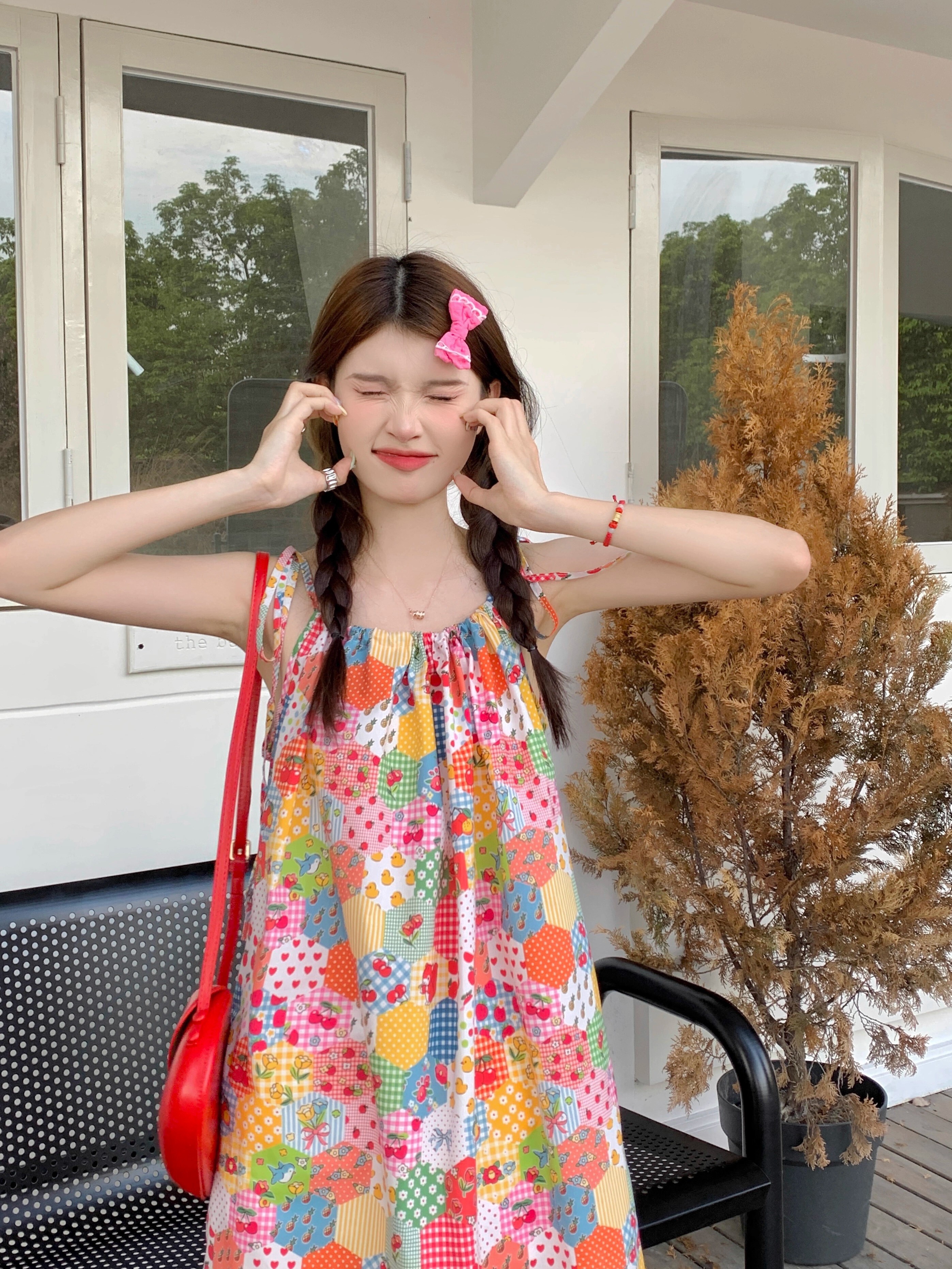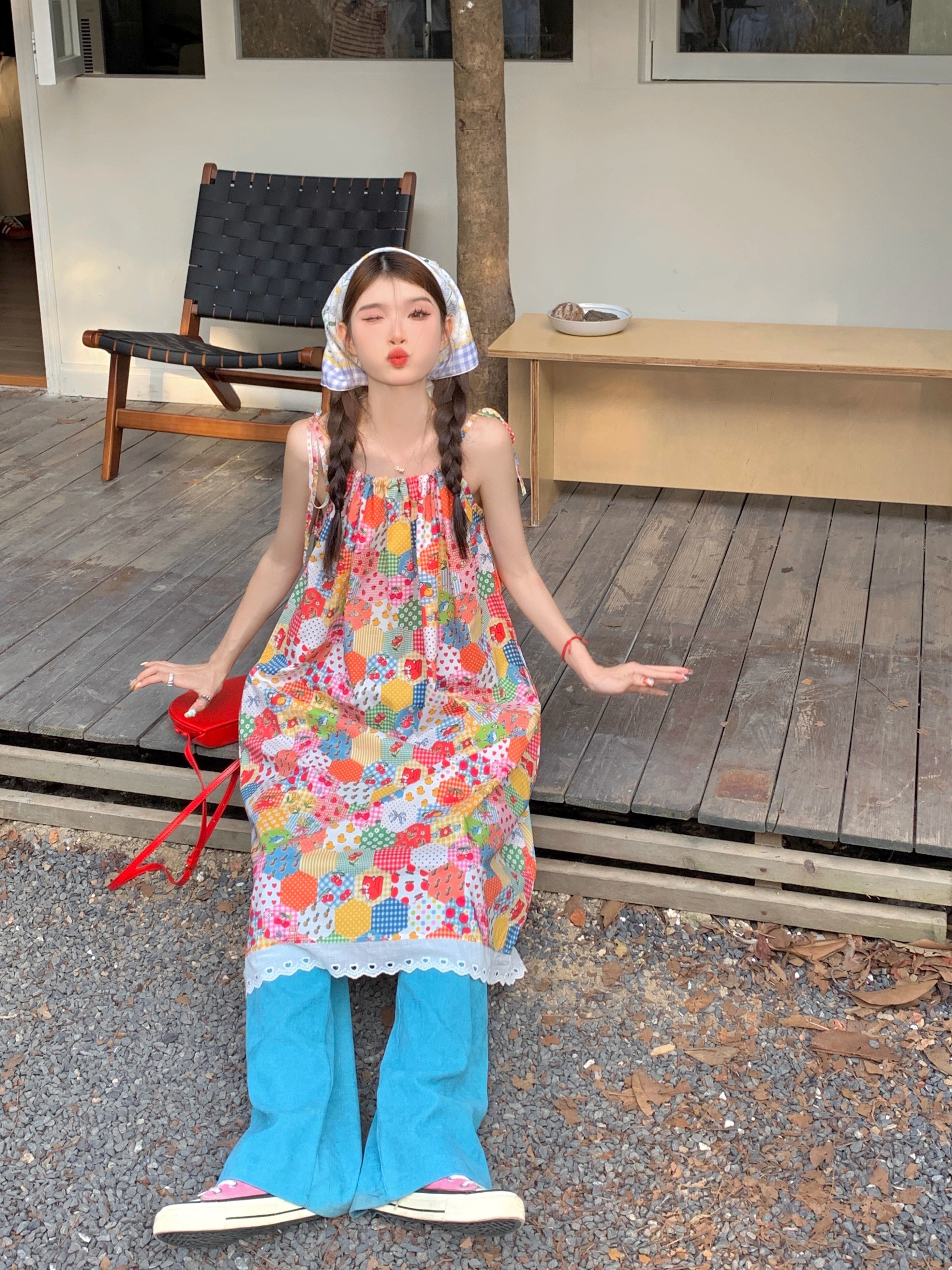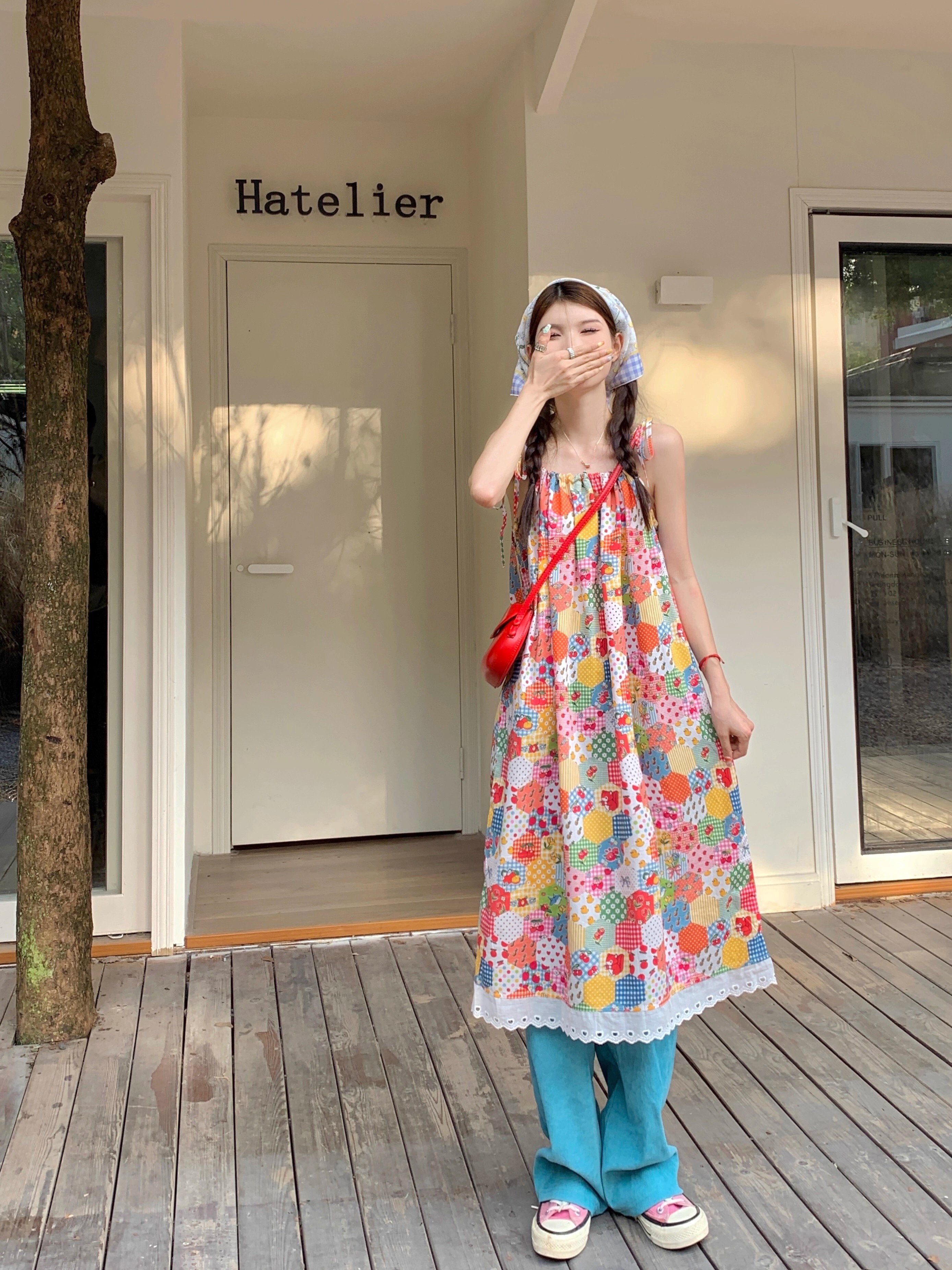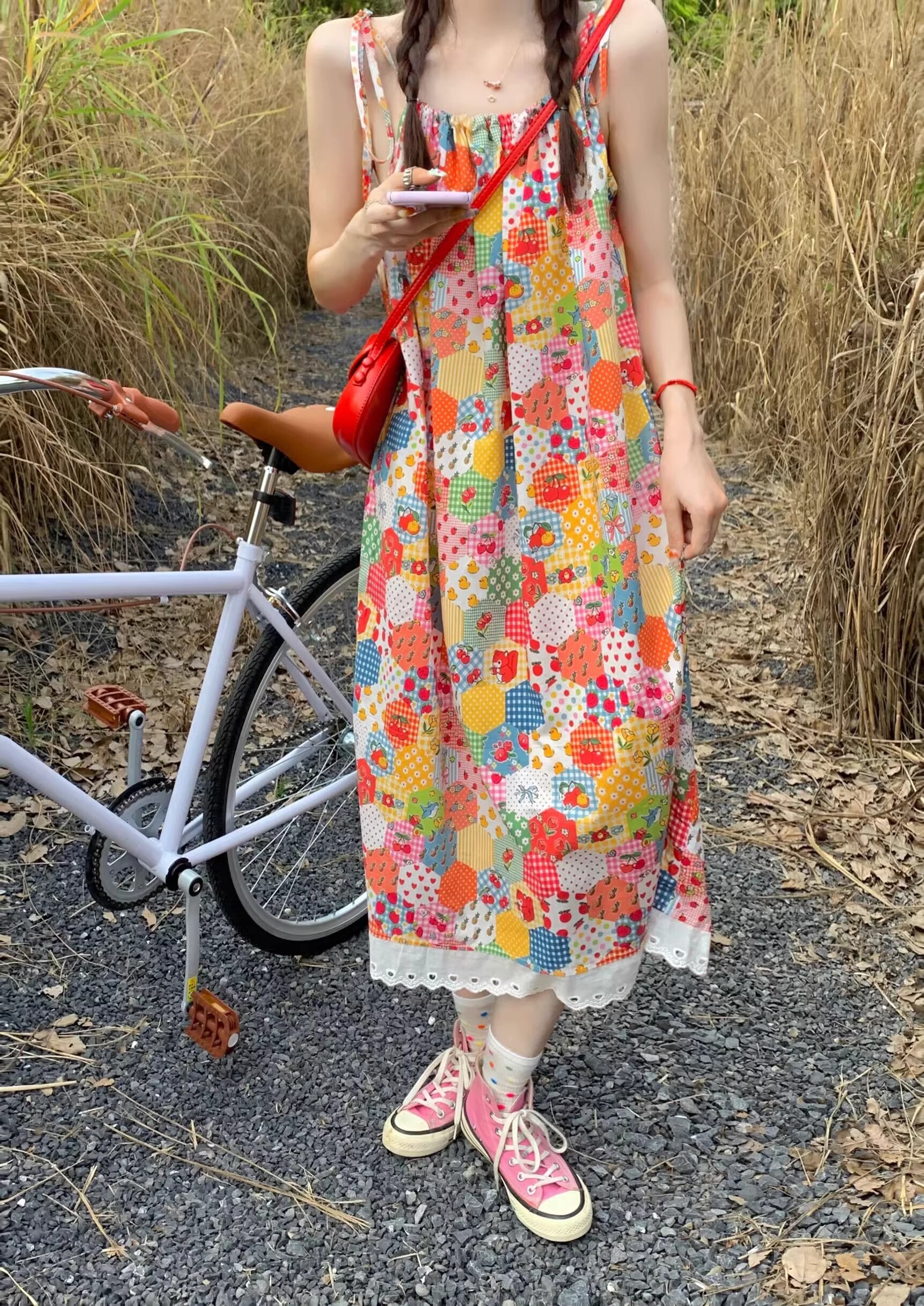 • Floral print sundress for women, new summer style 2024, sweet, youthful, unique and super pretty, patchwork lace trim.