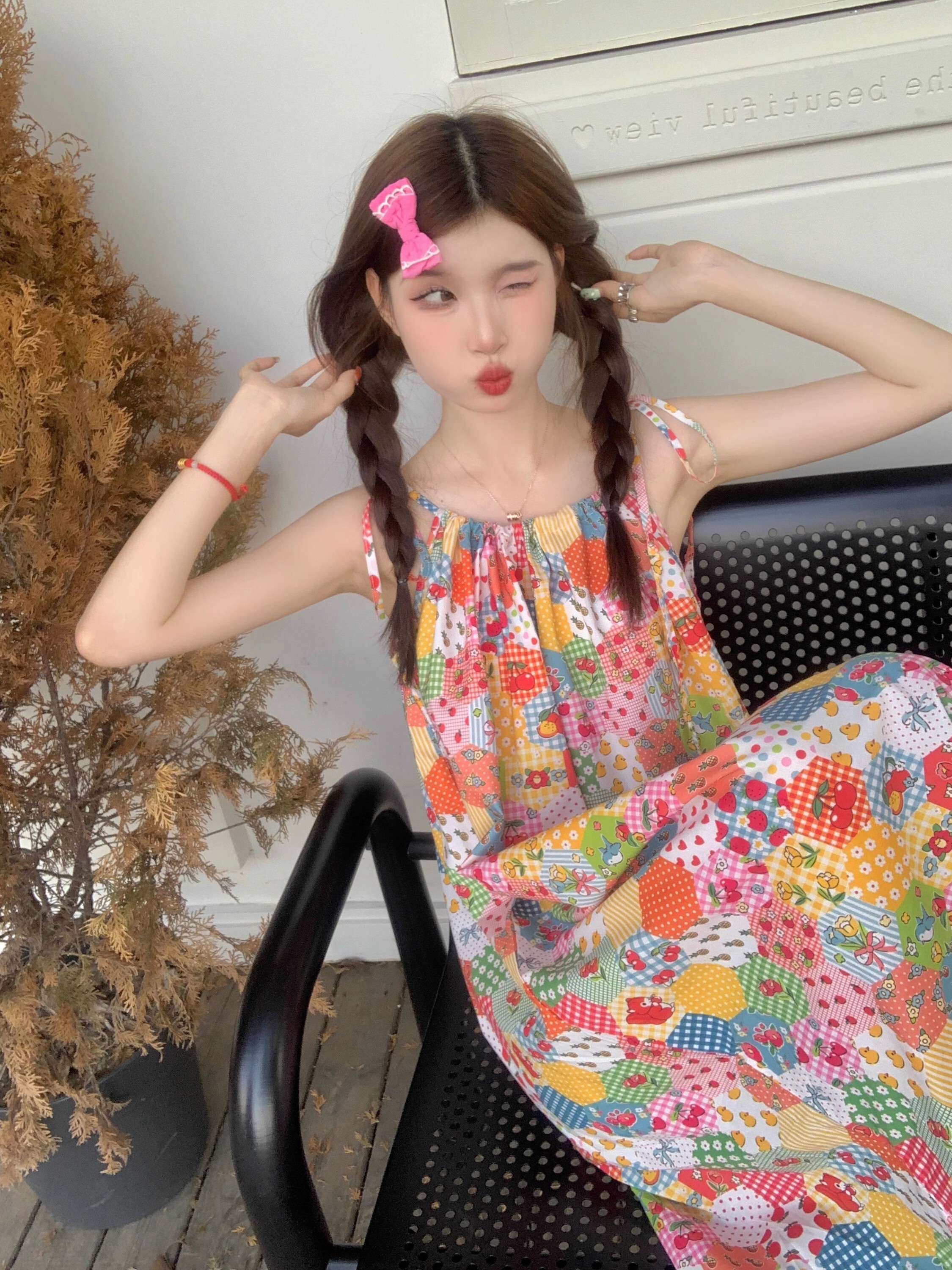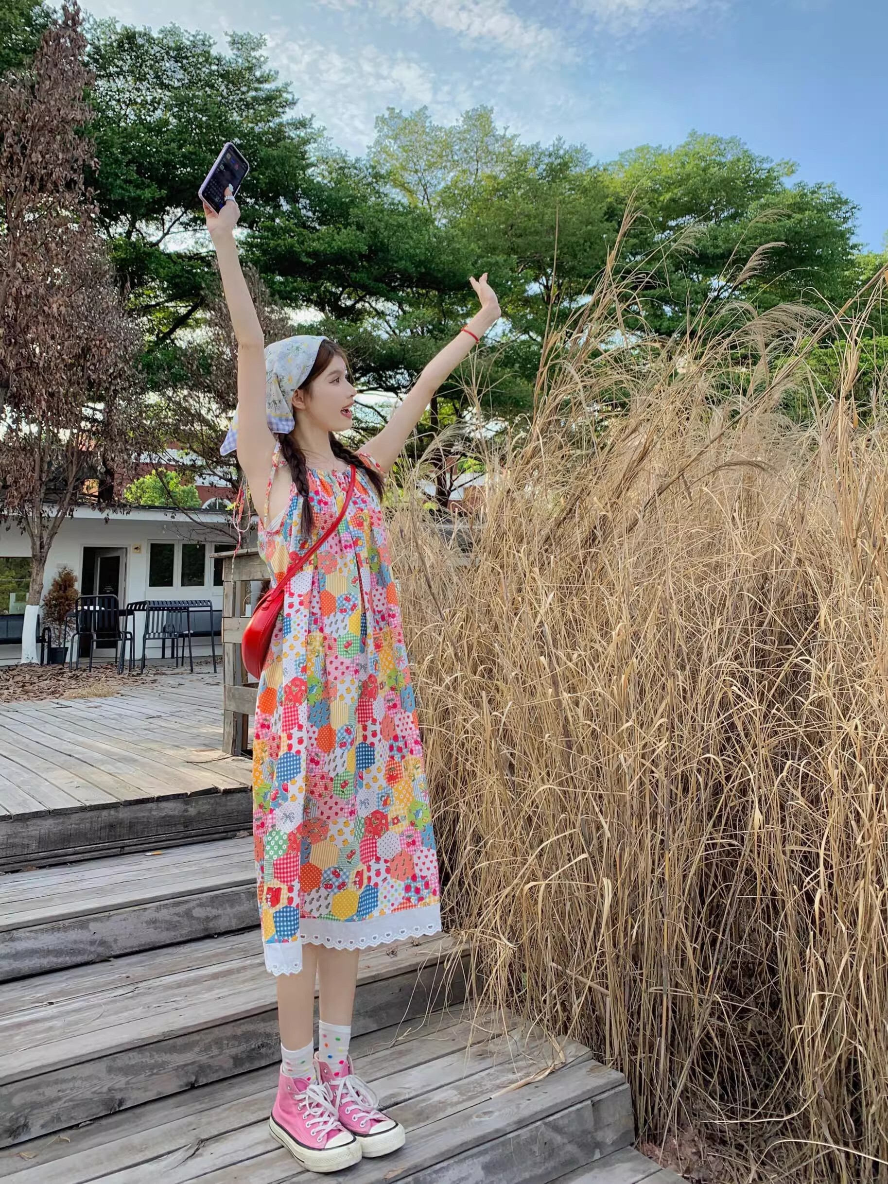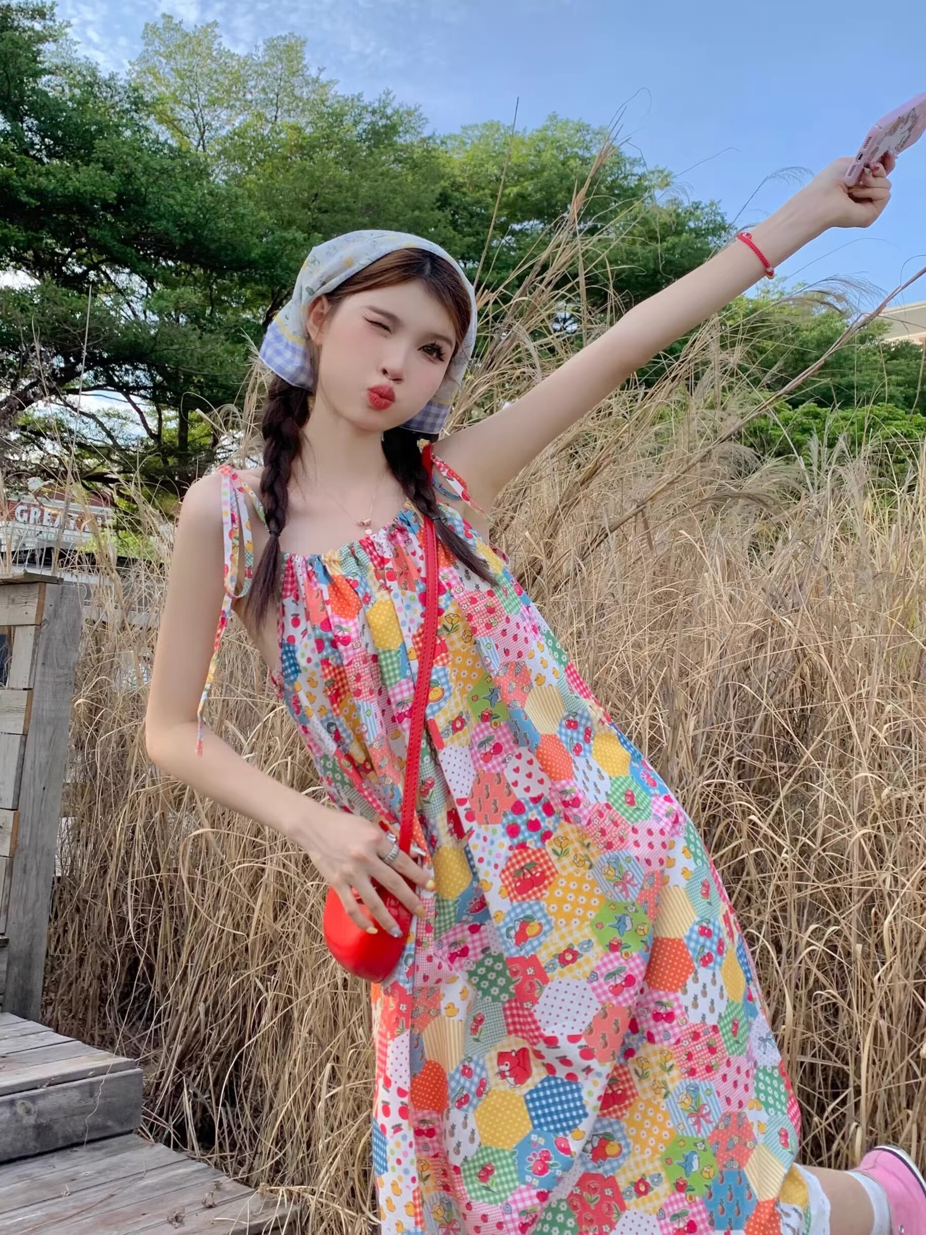 Floral print sundress for women, new summer style 2024, sweet, youthful, unique and super pretty, patchwork lace trim.