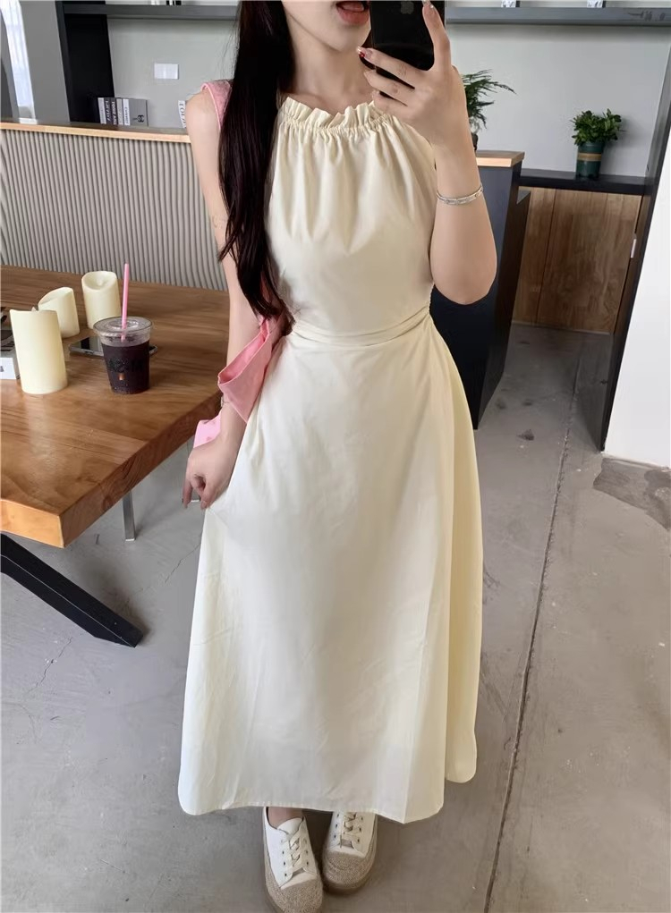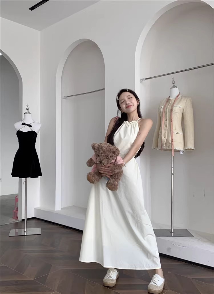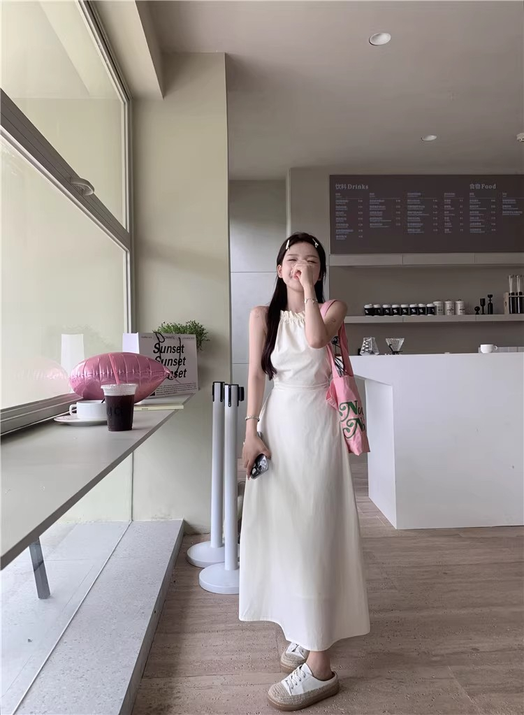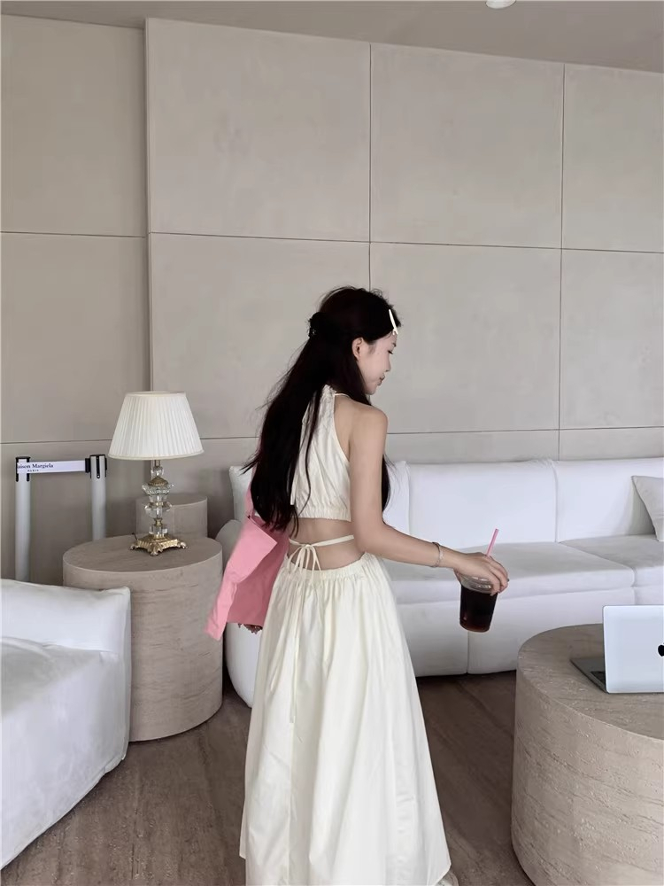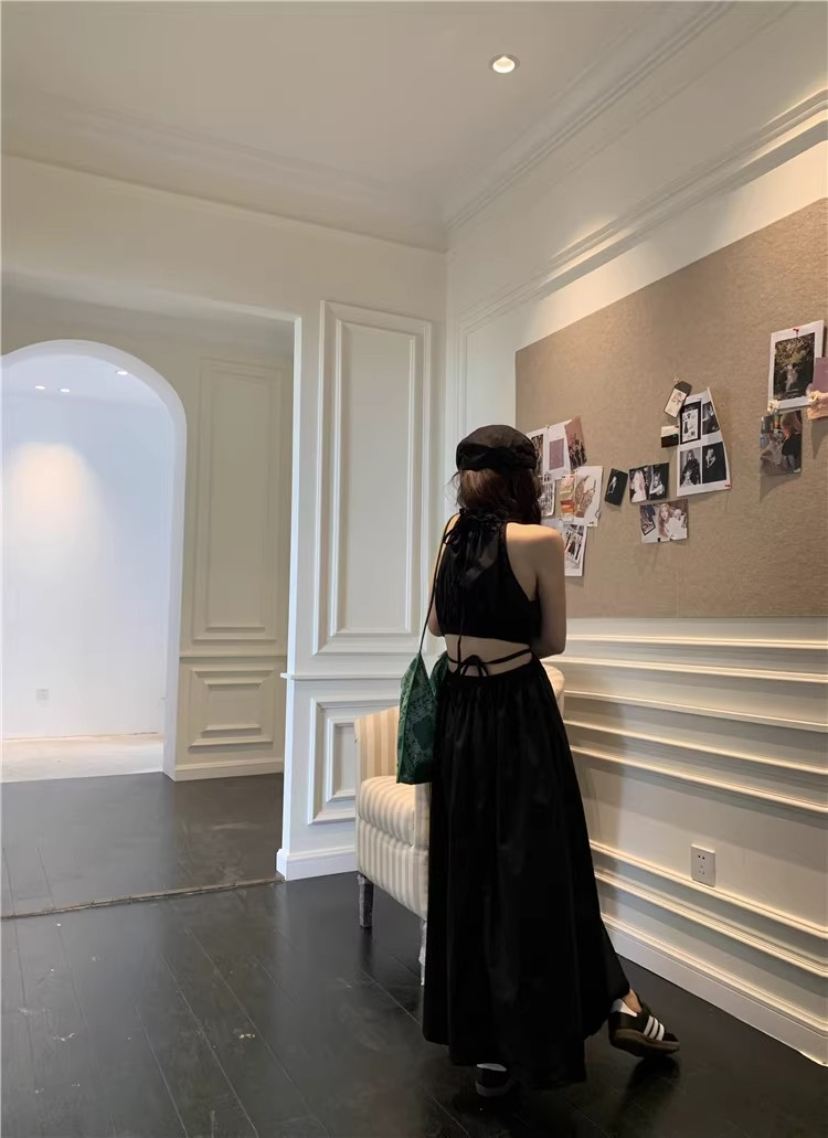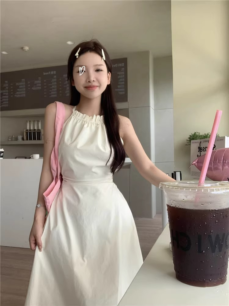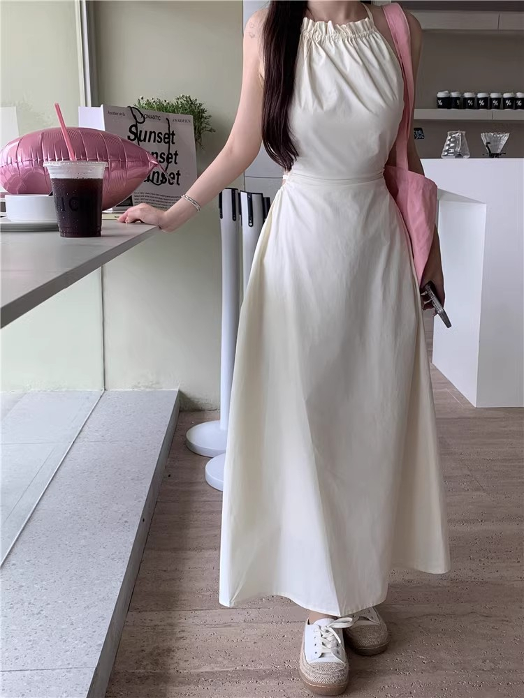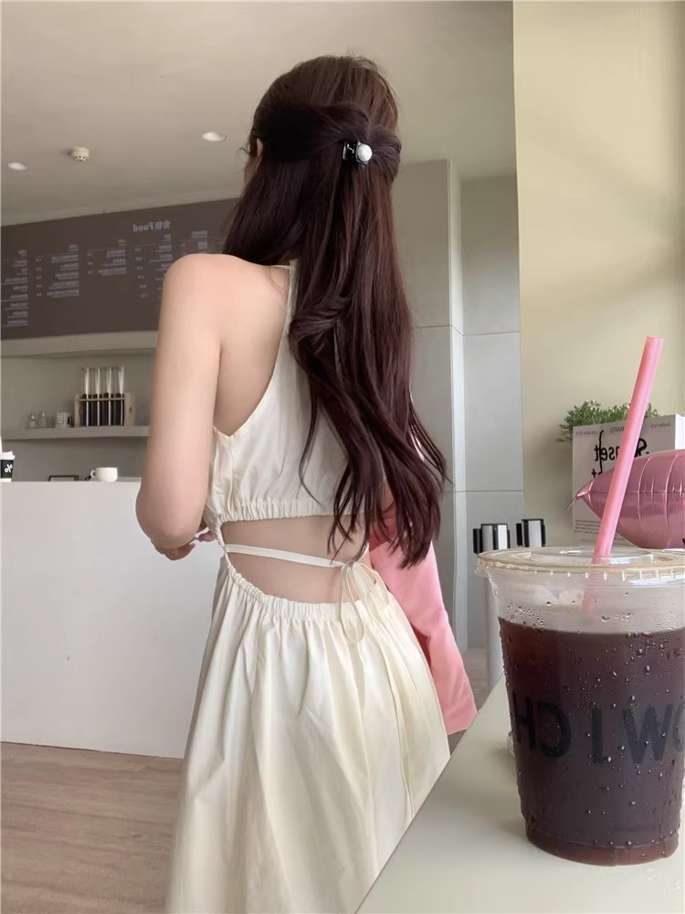 • Beach vacation style halter neck suspender dress, women's summer pink first love dress, backless waist-cinching elegant long dress