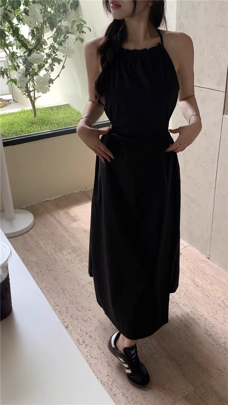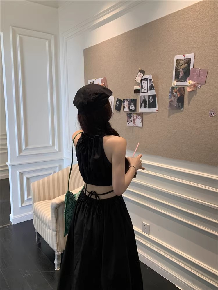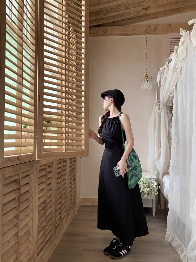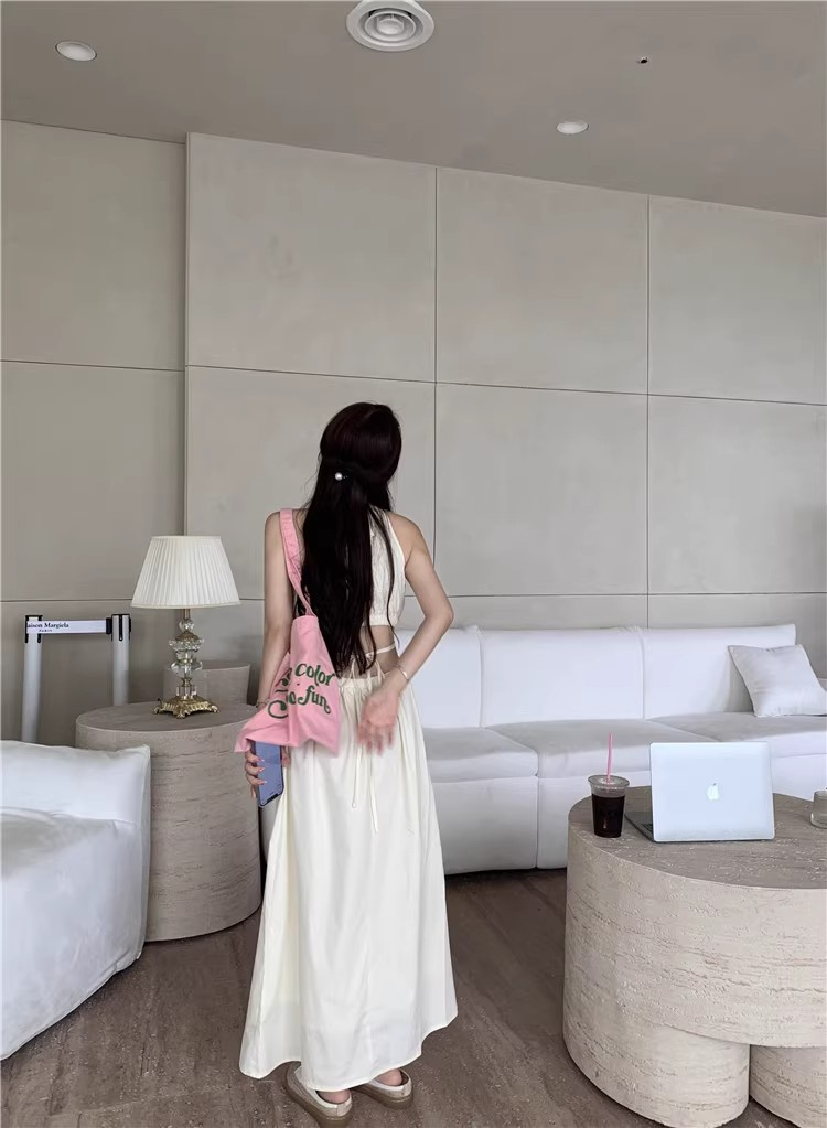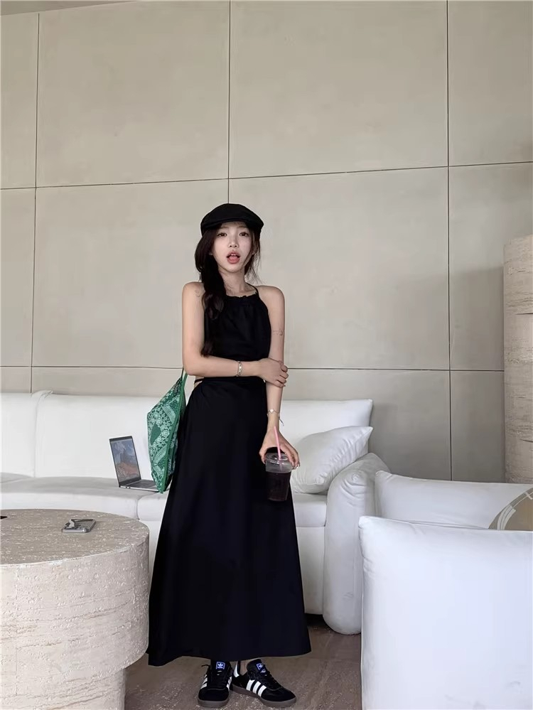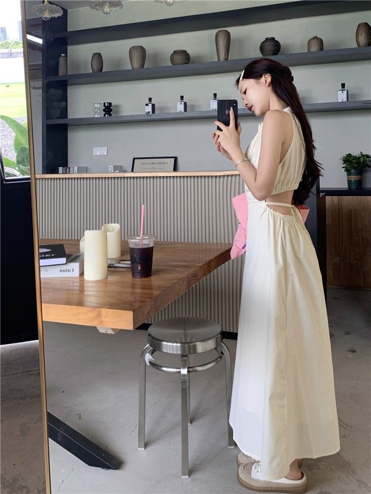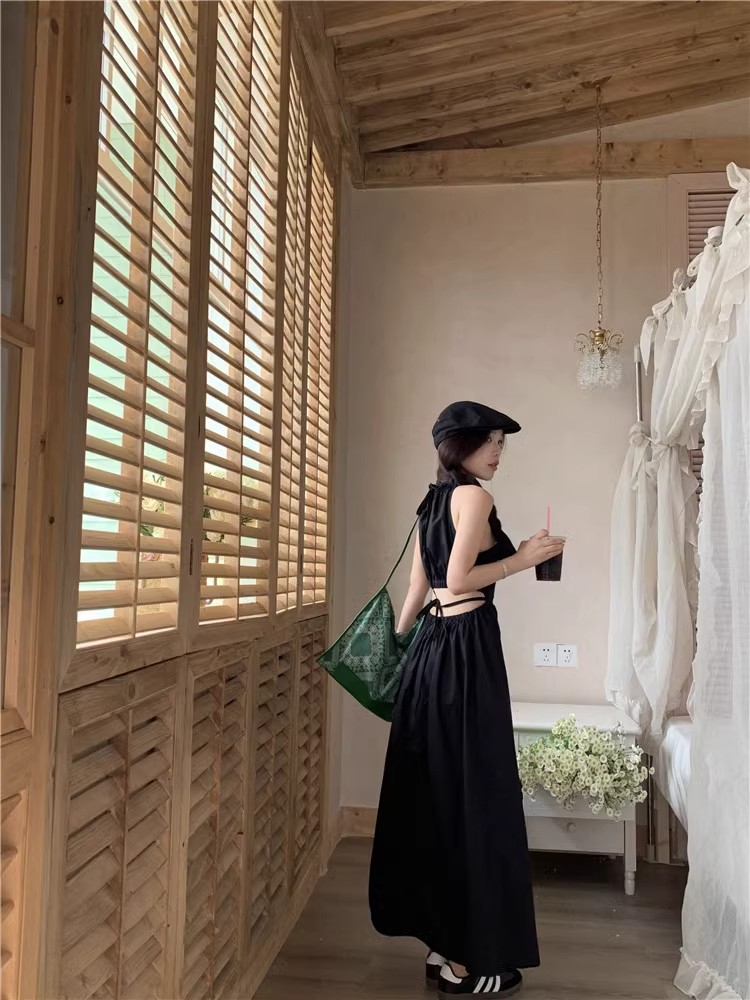 • Beach vacation style halter neck suspender dress, women's summer pink first love dress, backless waist-cinching elegant long dress