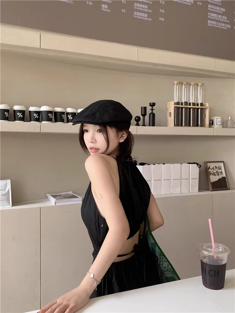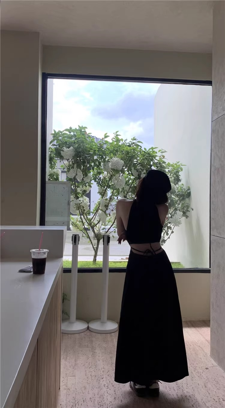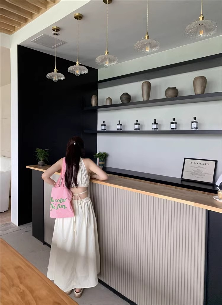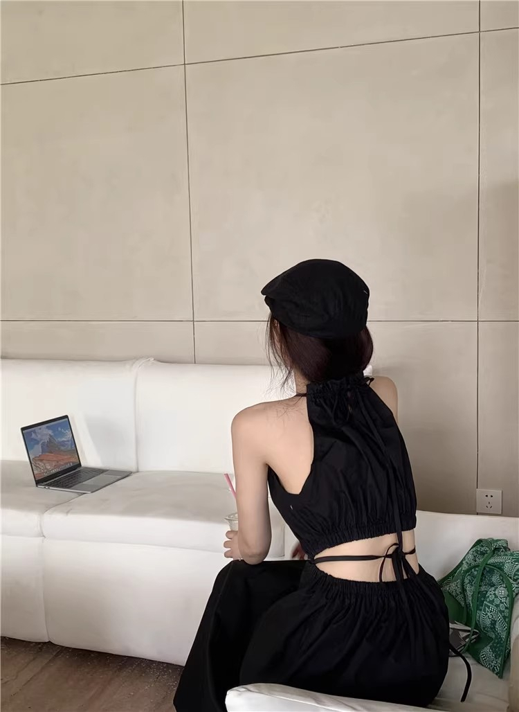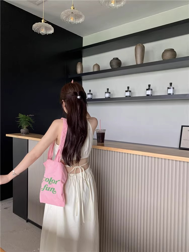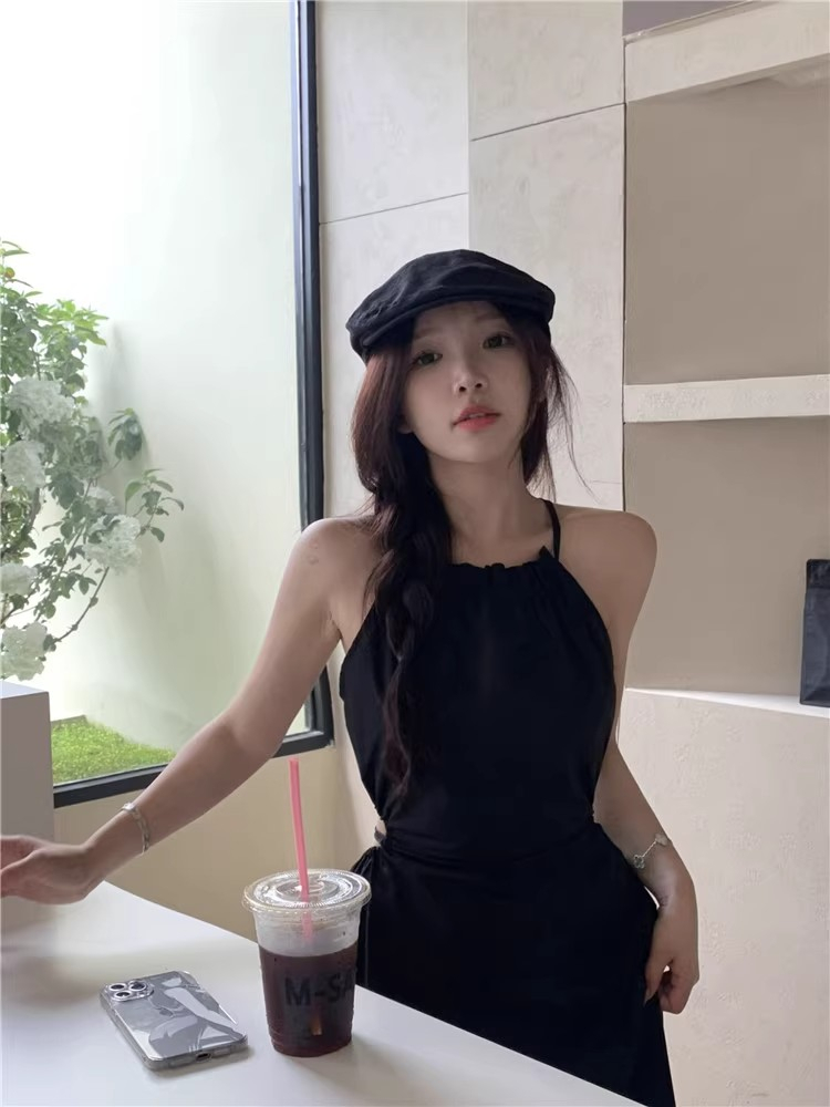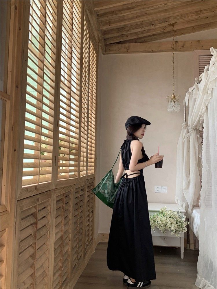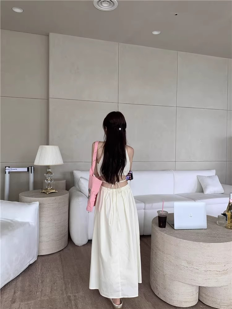 • Beach vacation style halter neck suspender dress, women's summer pink first love dress, backless waist-cinching elegant long dress
