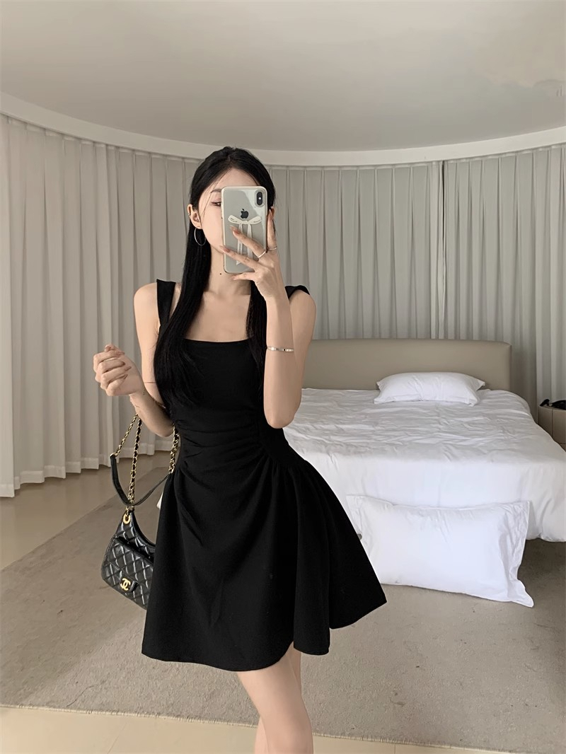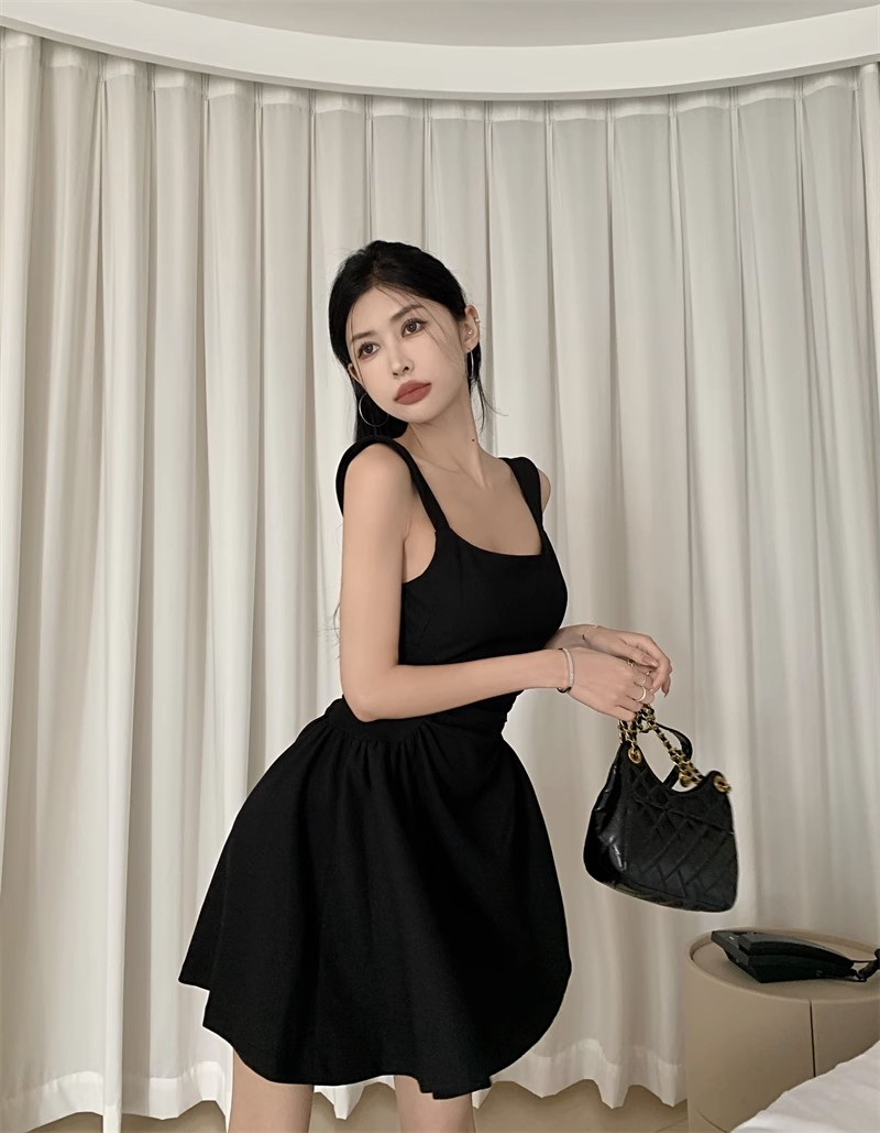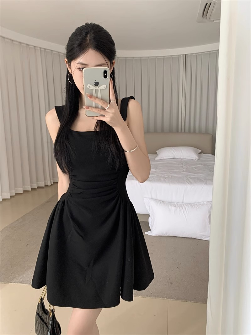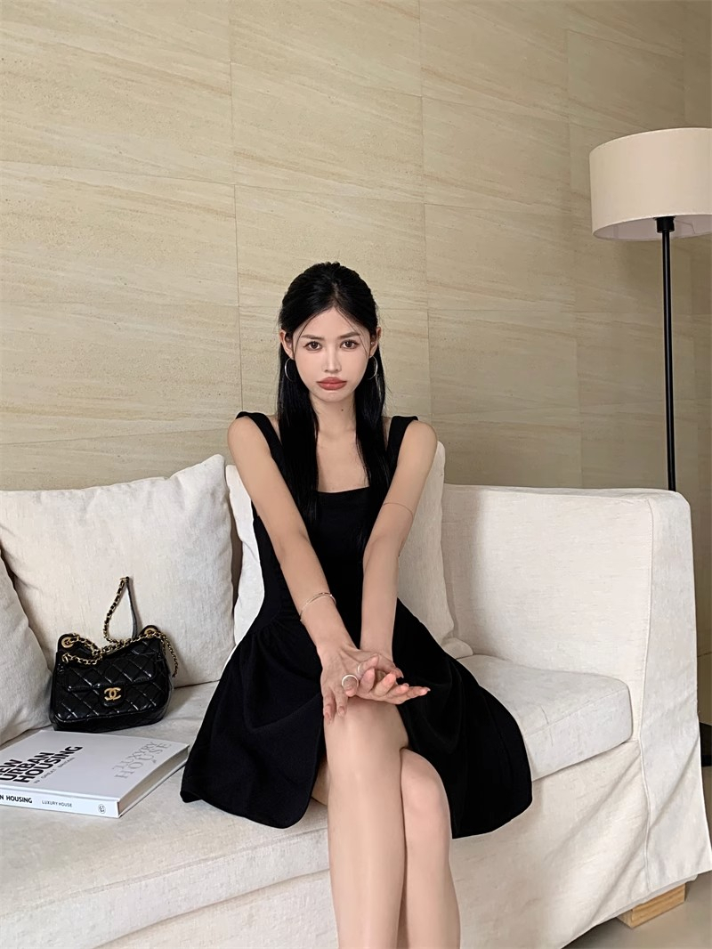 • Hepburn-style little black dress, elegant vest dress, women's summer niche, waist-cinching, slimming suspender dress, A-line short skirt