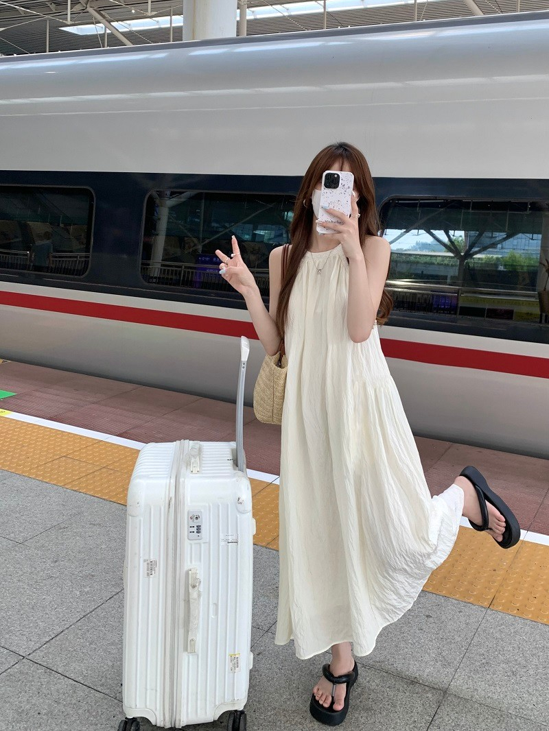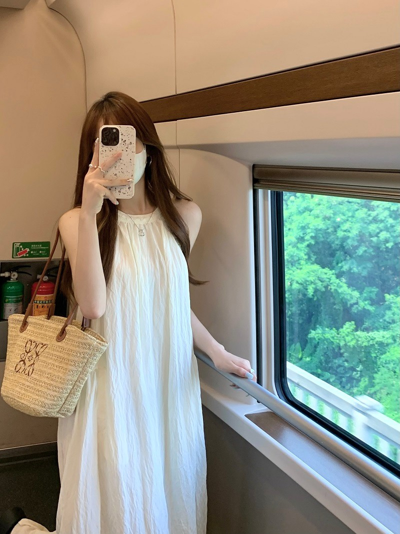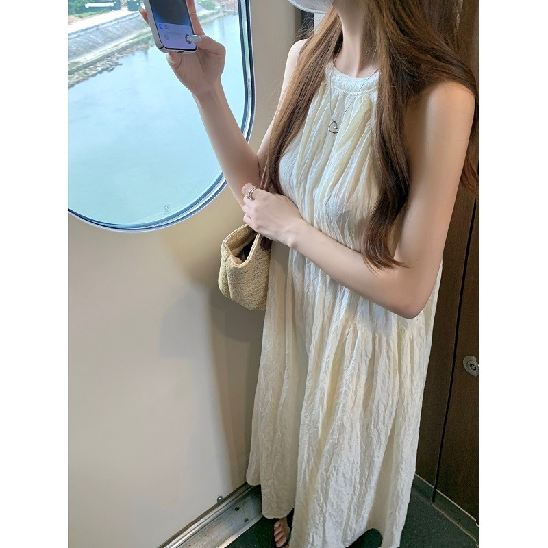 • Sweet halter neck dress, fairy-like summer 2024 new style, white sleeveless dress, elegant and classy A-line.