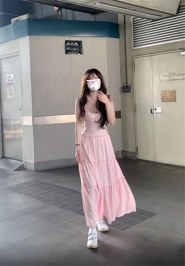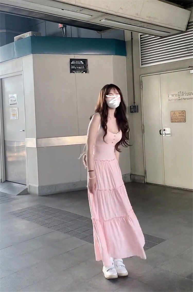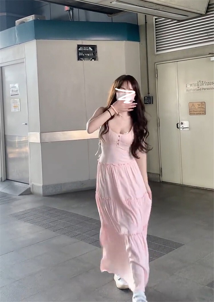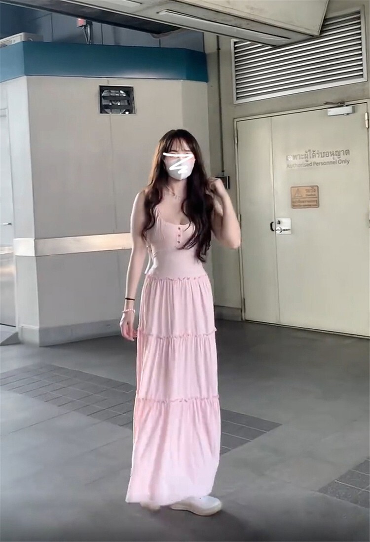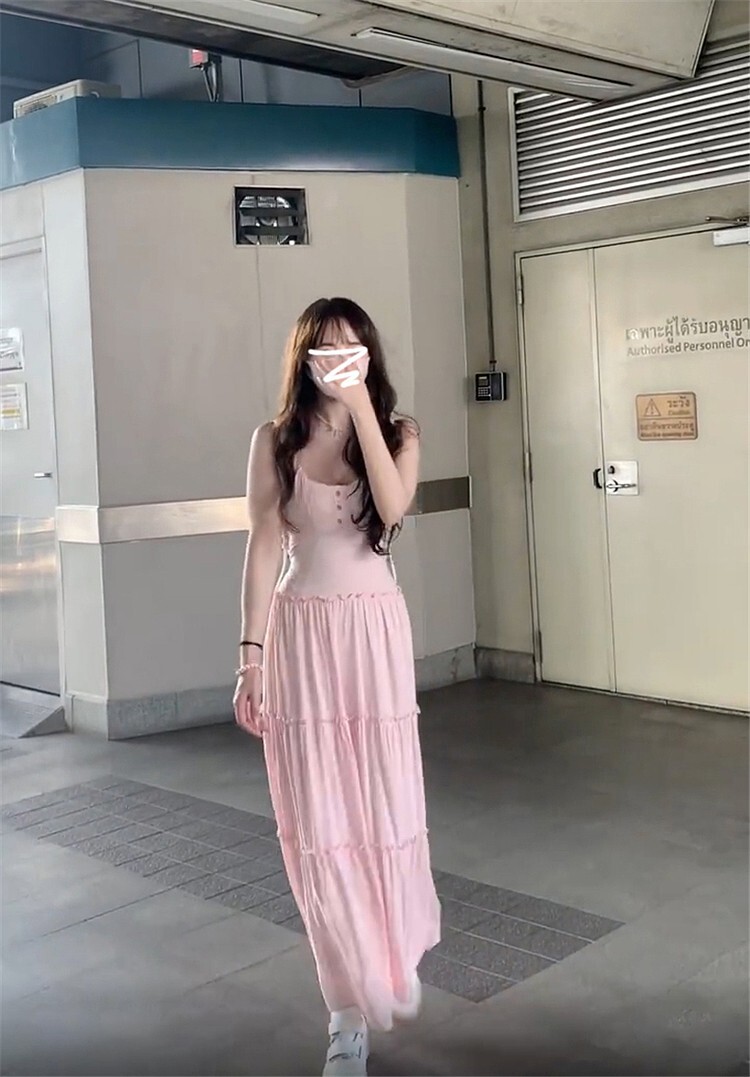 • French-style elegant pink slip dress for women, perfect for petite women, perfect for summer, gentle and sweet, ideal for a beach vacation.