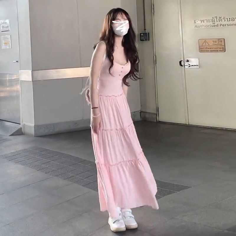 French-style elegant pink slip dress for women, perfect for petite women, perfect for summer, gentle and sweet, ideal for a beach vacation.