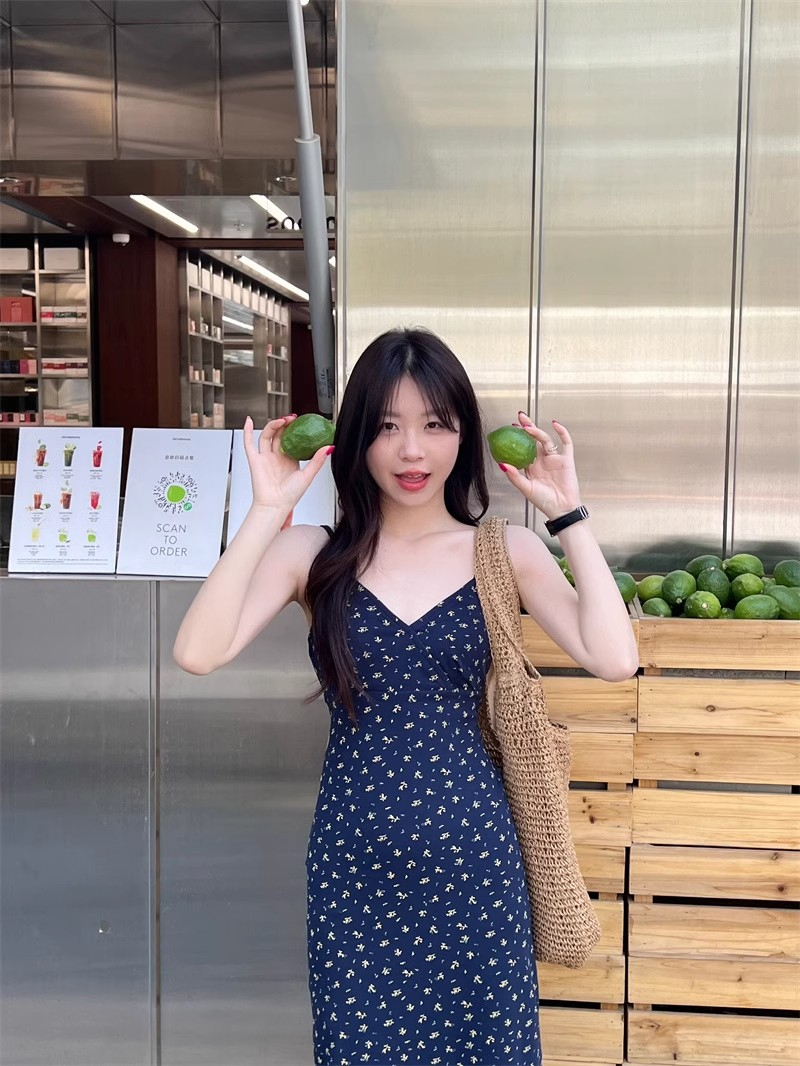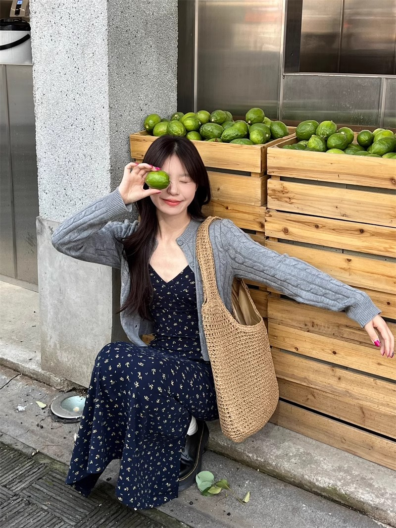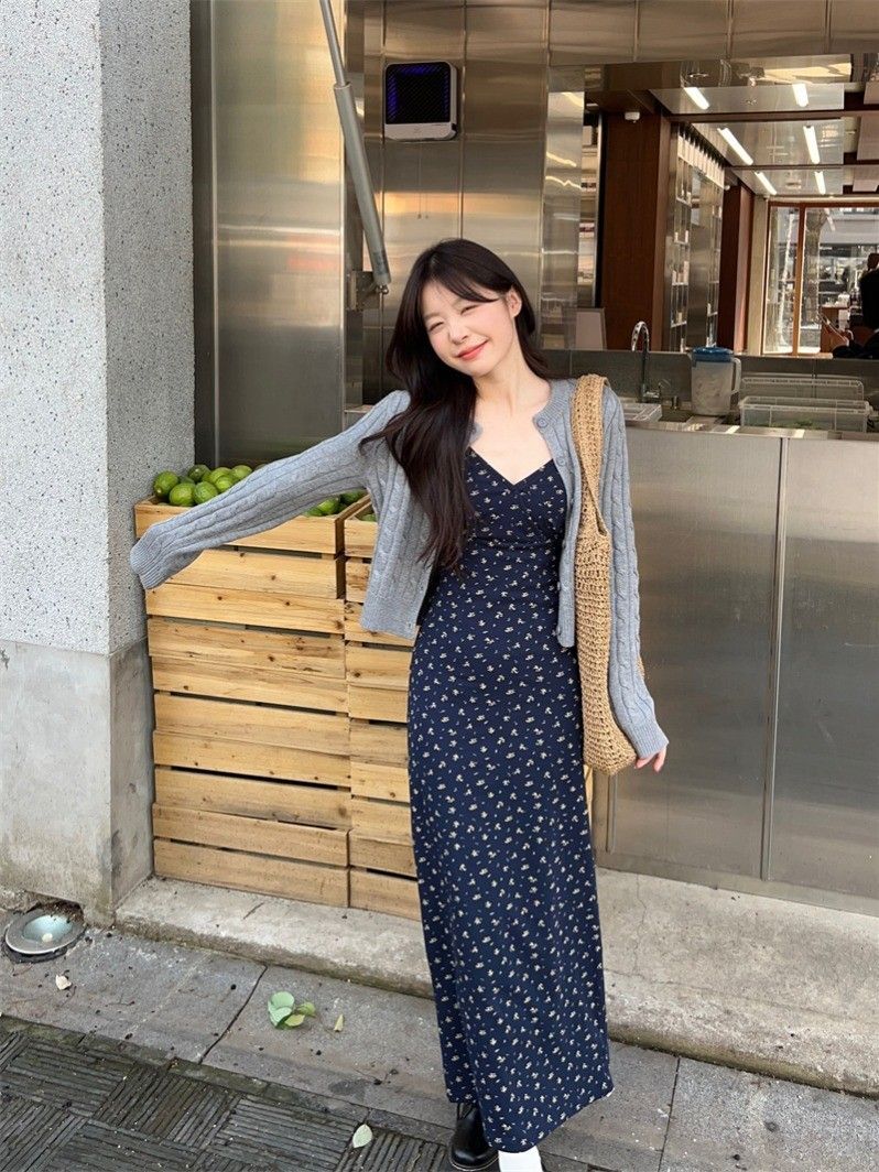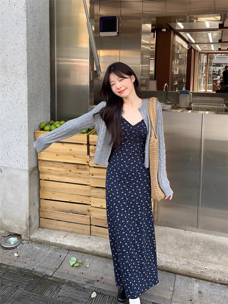 • Tea break French style blue floral print sundress for women, summer 2024 new style, petite and elegant, waist-cinching.