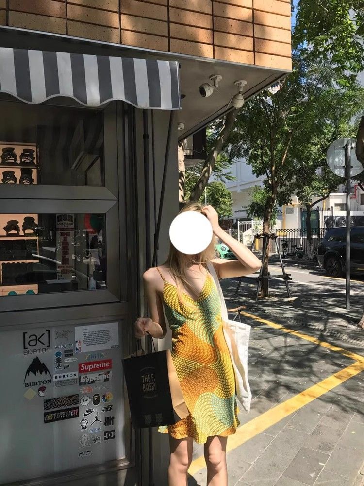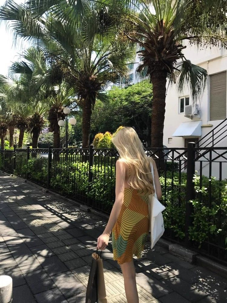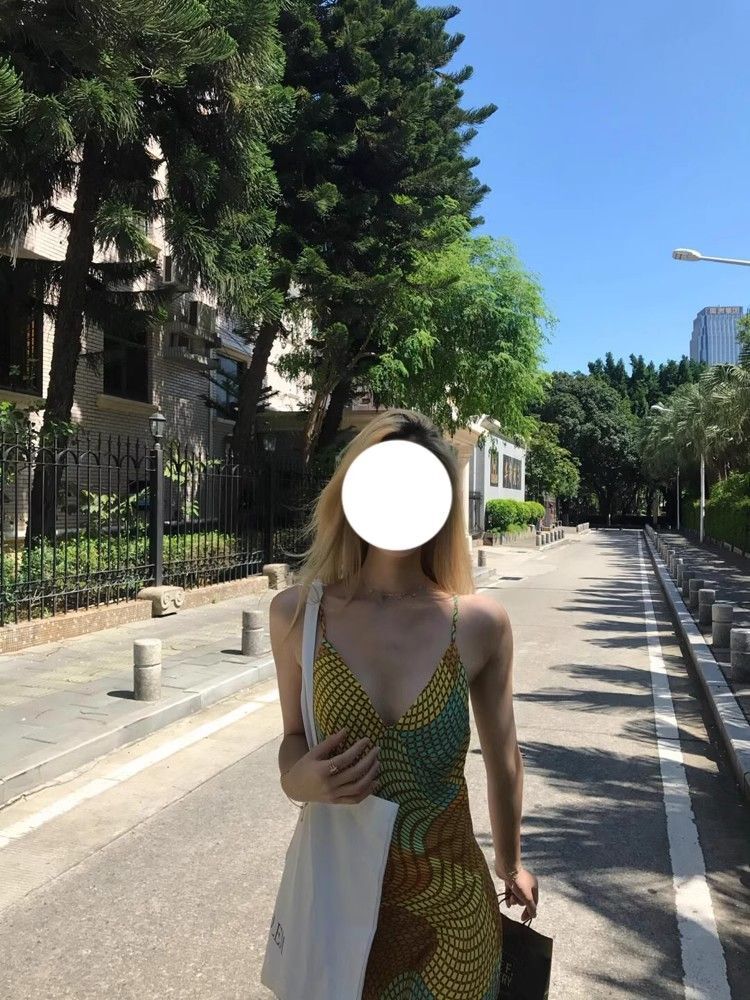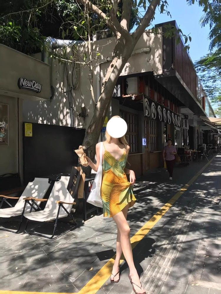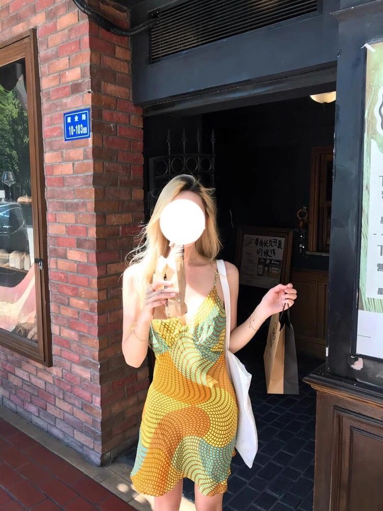 • Pure and alluring retro vacation style sundress for women, new summer style, V-neck, irregular repeating color-blocked print dress
