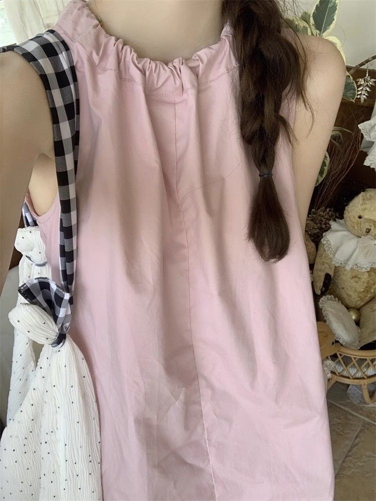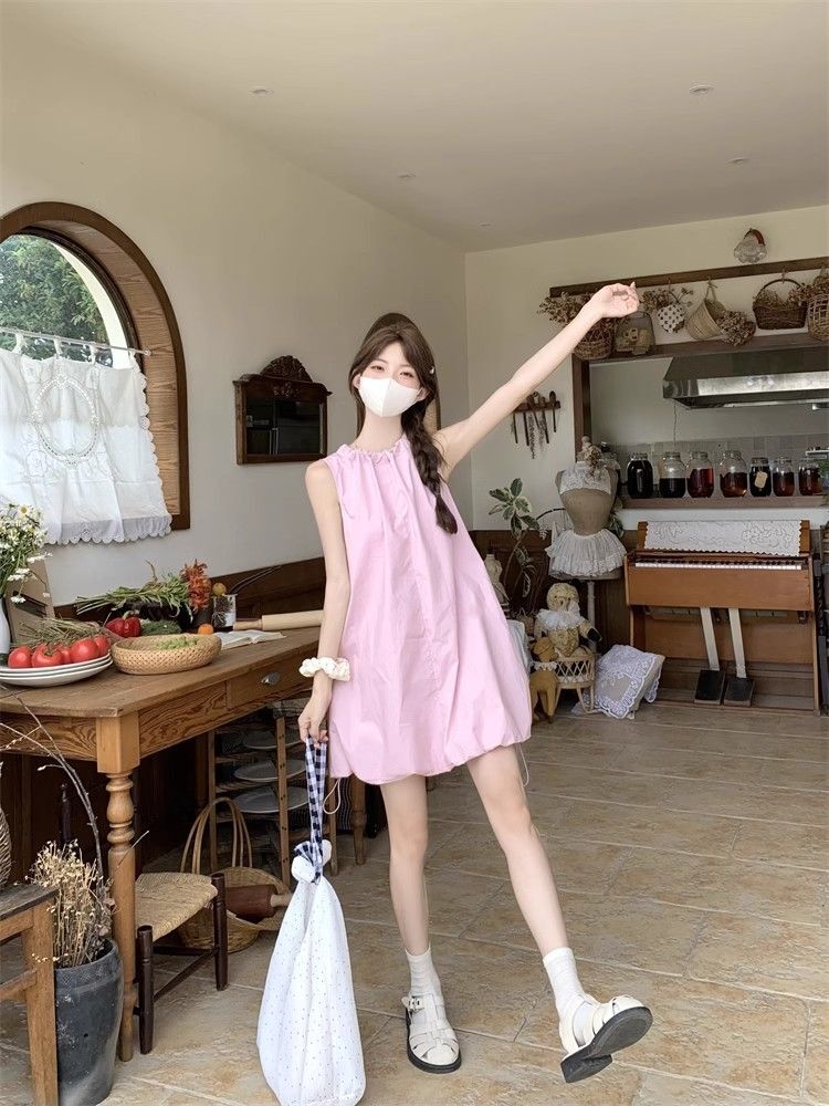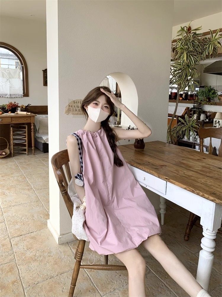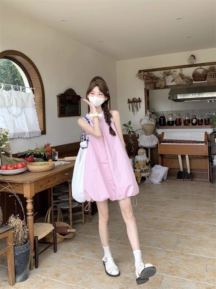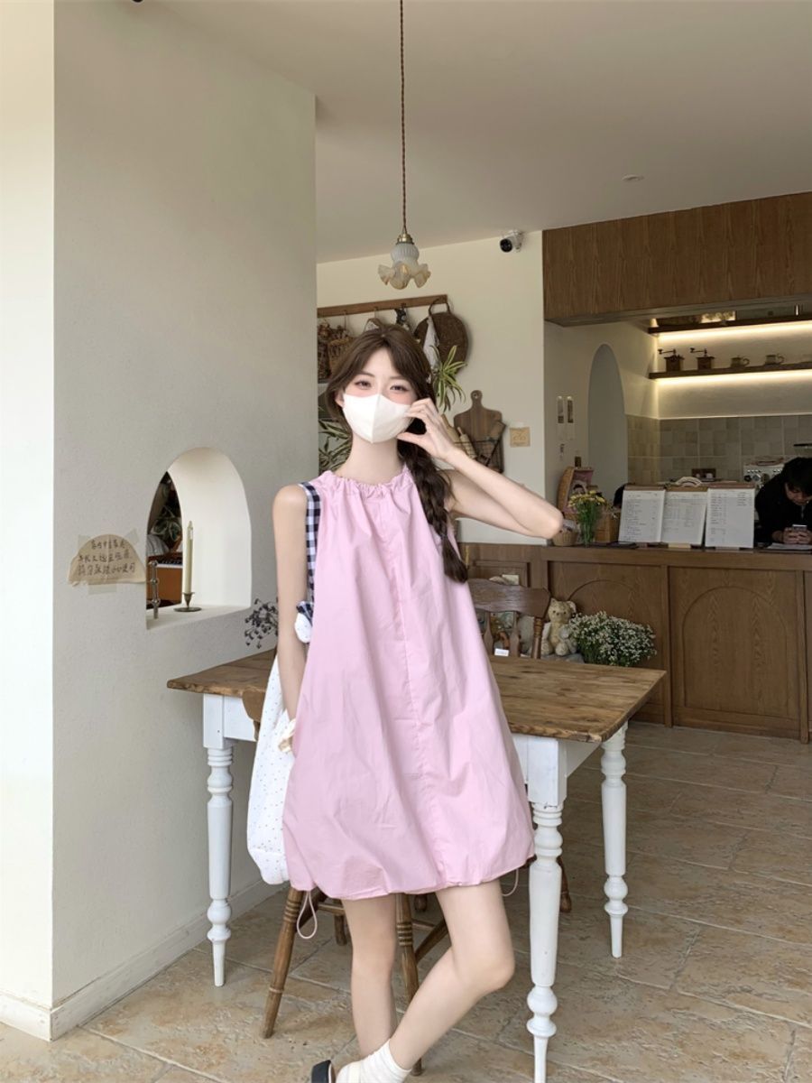 • Gentle and youthful design, pink tie-waist dress, women's summer 2025 new style, solid color tulip skirt.
