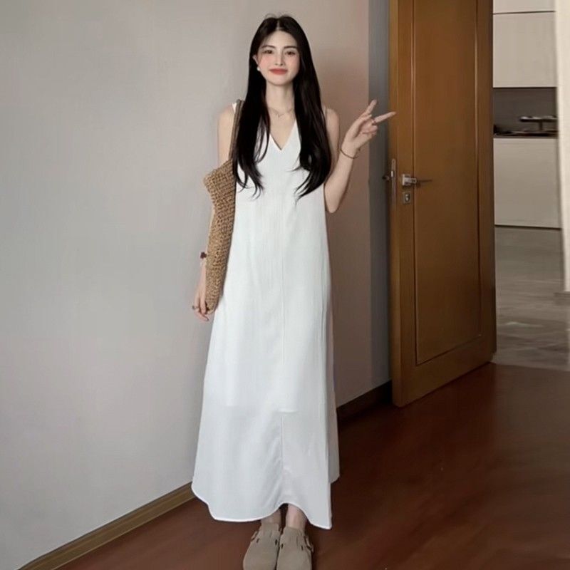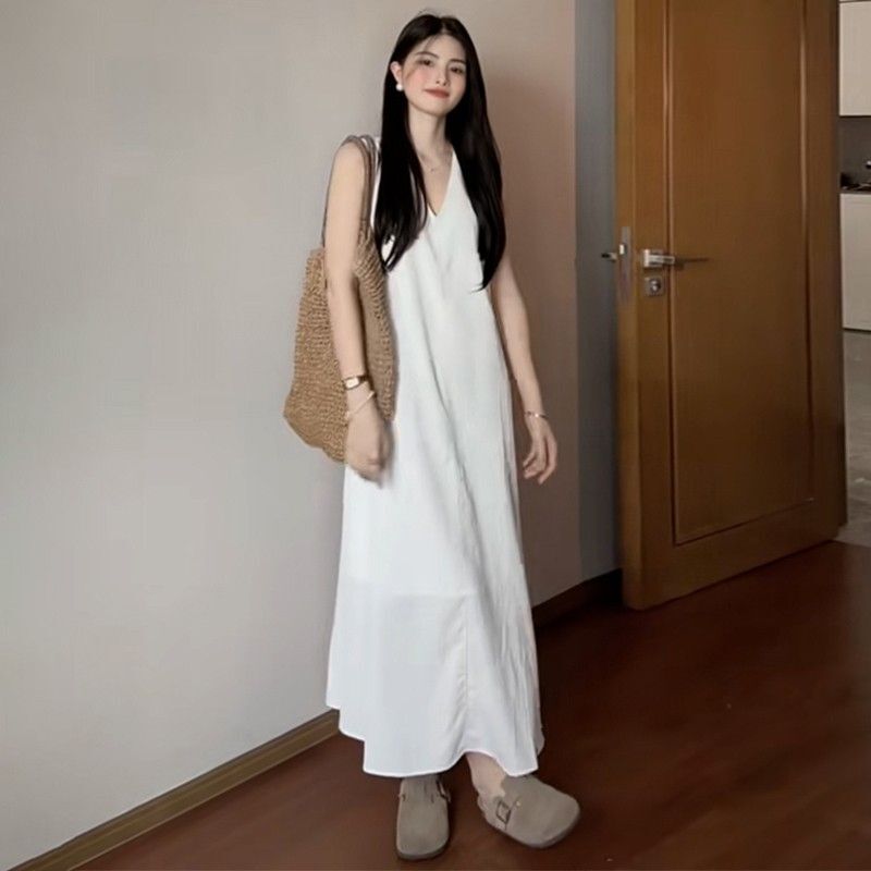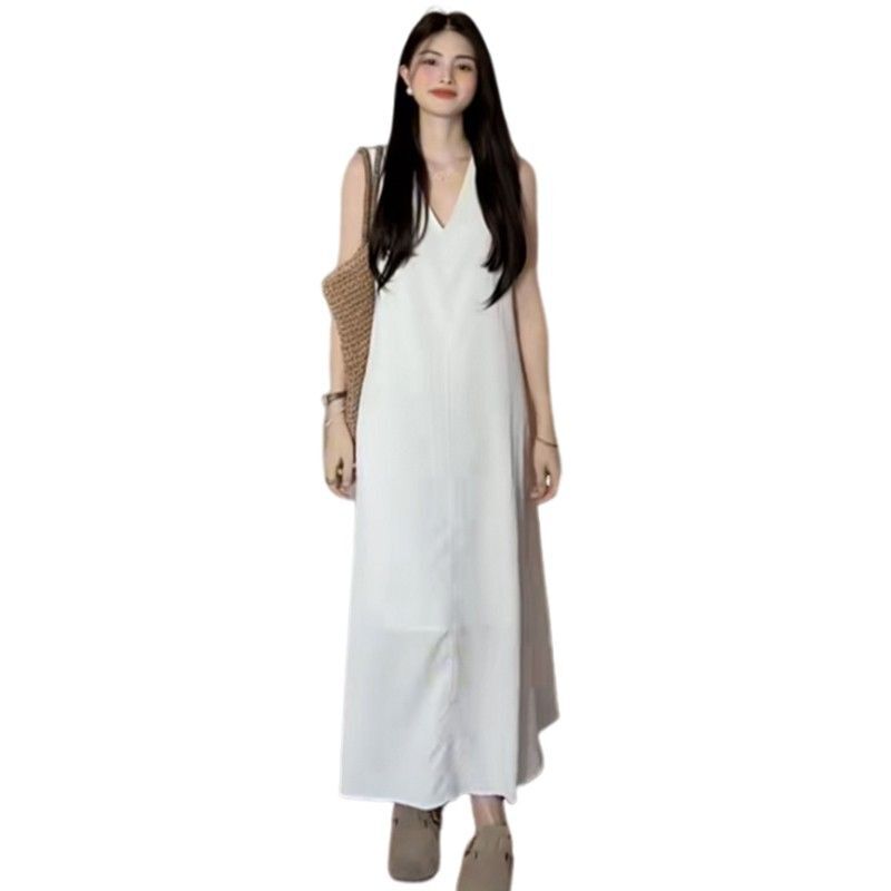 French-style white sleeveless tank dress for women, new summer 2025 style, high-end beachwear.