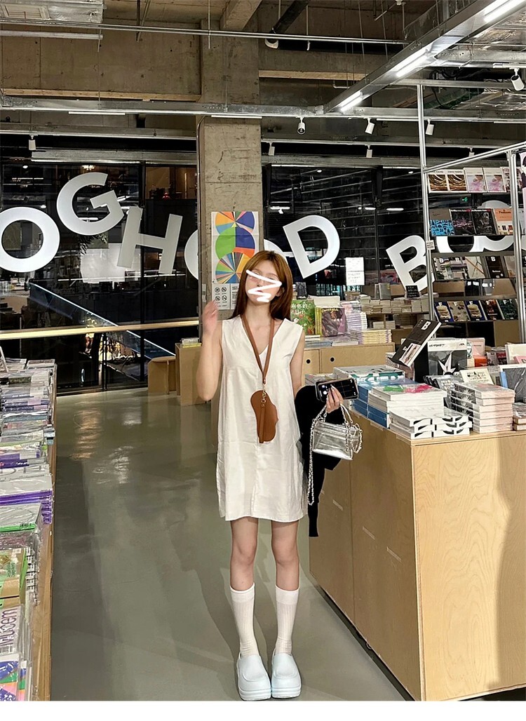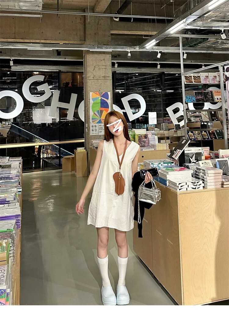 • Summer sleeveless vest V-neck dress for women, pure and simple, solid color, loose fit, slimming short skirt, fashionable new women's clothing.