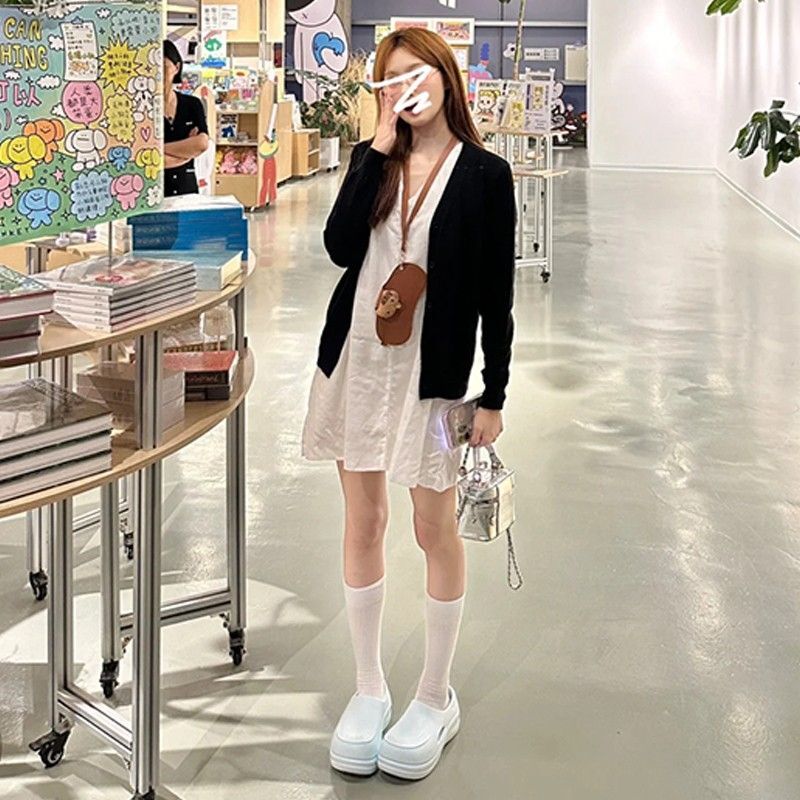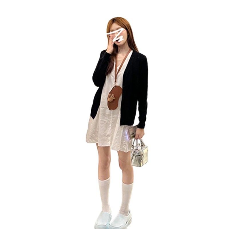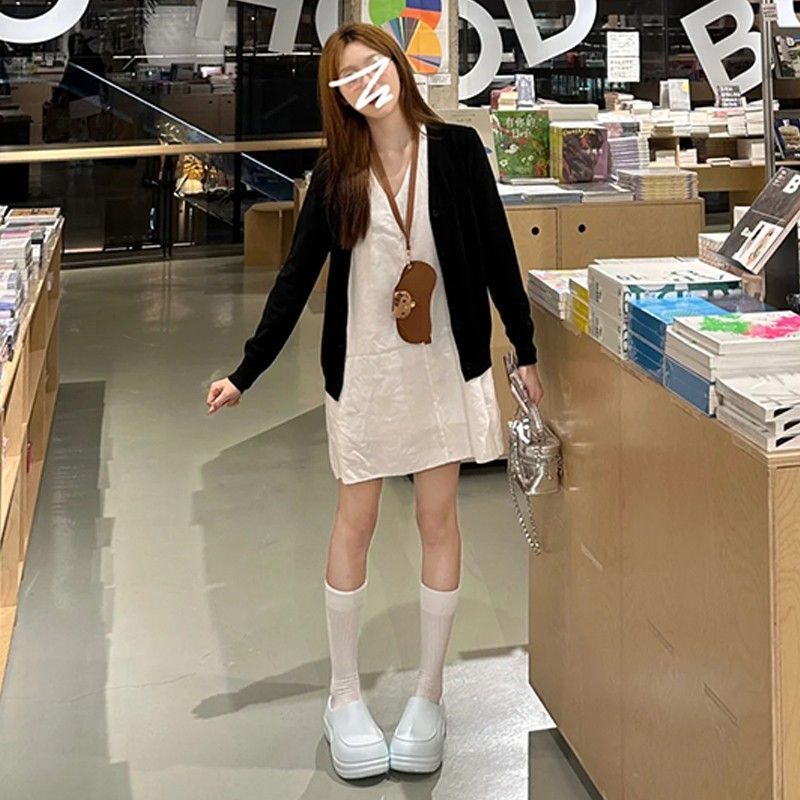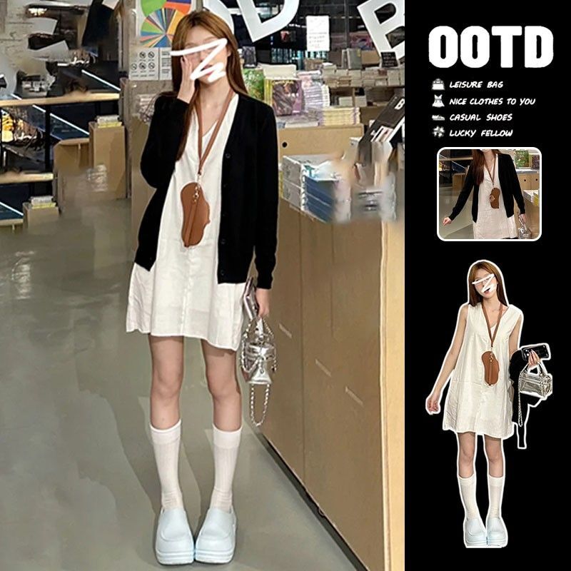 Summer sleeveless vest V-neck dress for women, pure and simple, solid color, loose fit, slimming short skirt, fashionable new women's clothing.