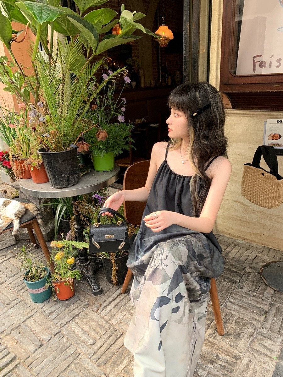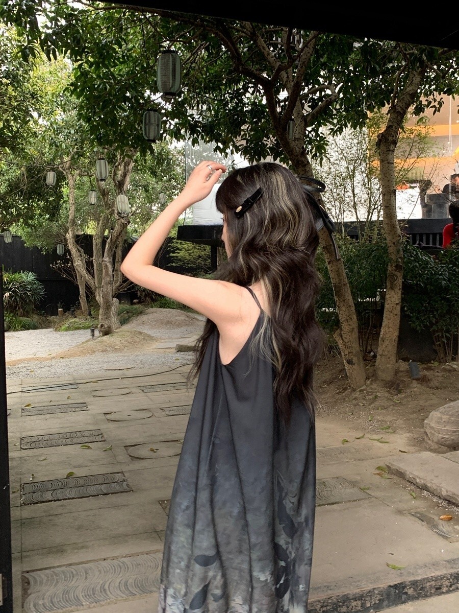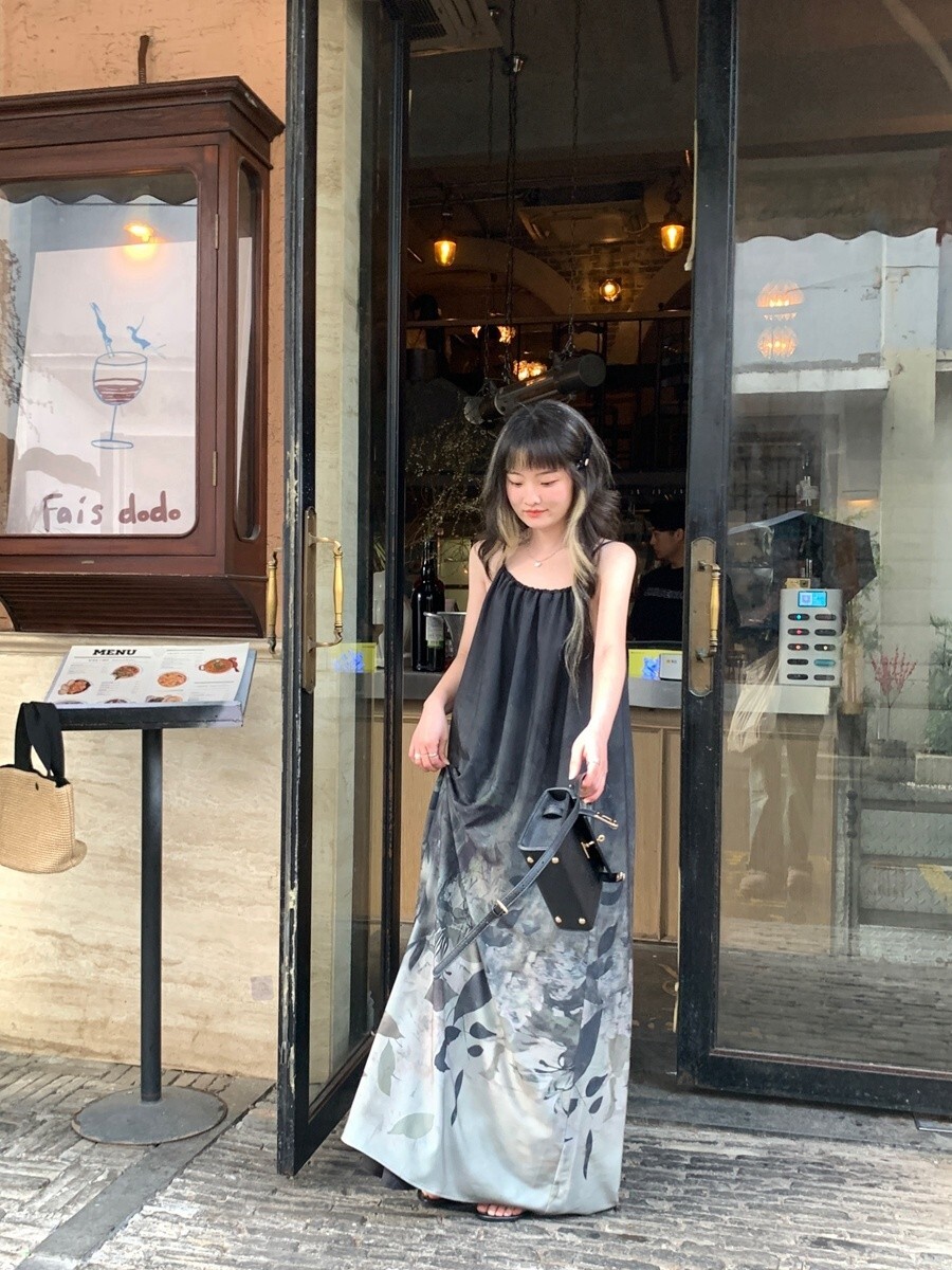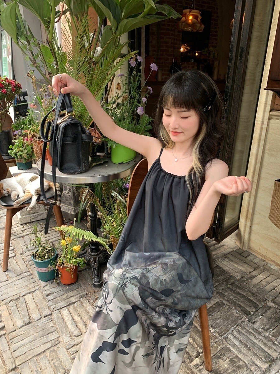 • New Chinese style tie-dye floral print halter dress for women, summer design, loose long dress, elegant sleeveless A-line skirt.
