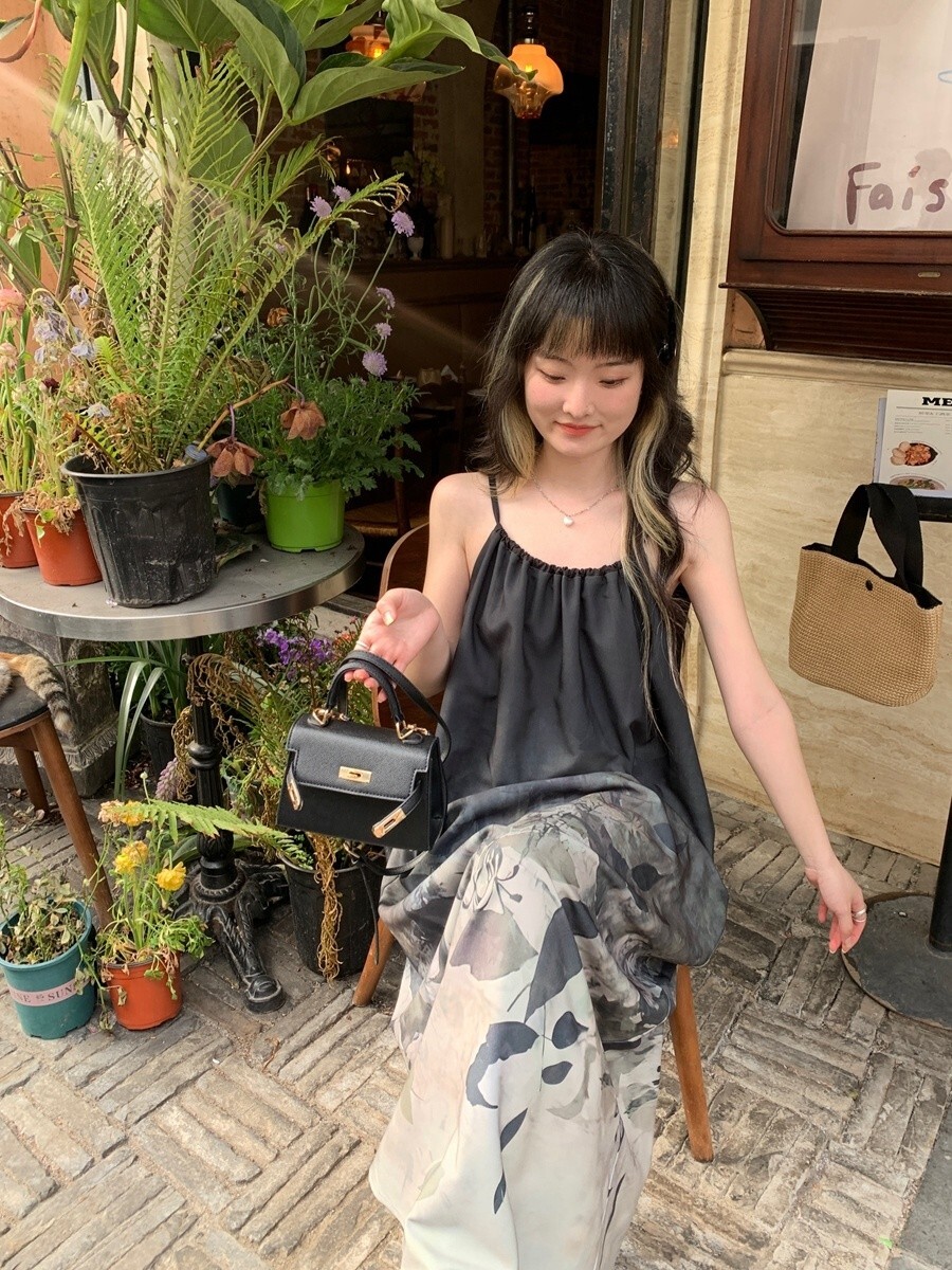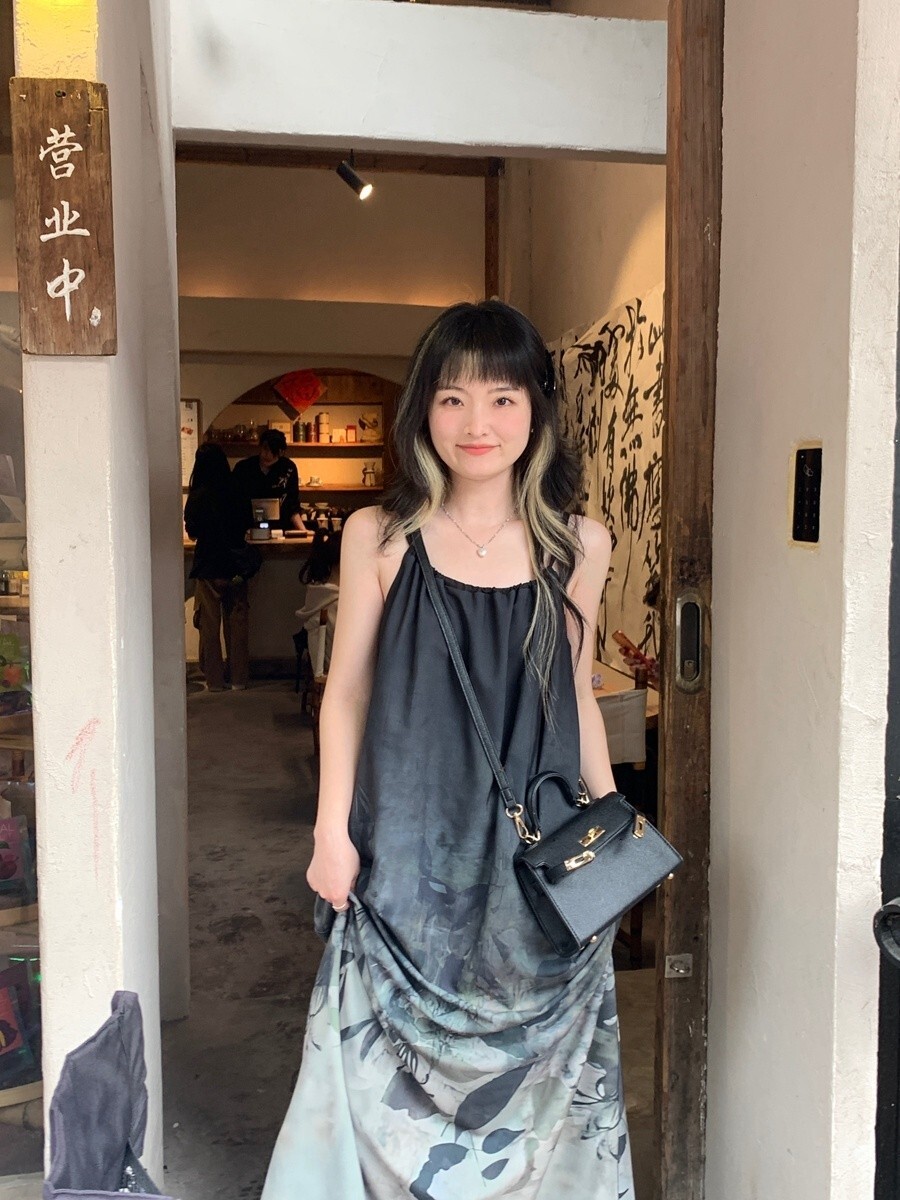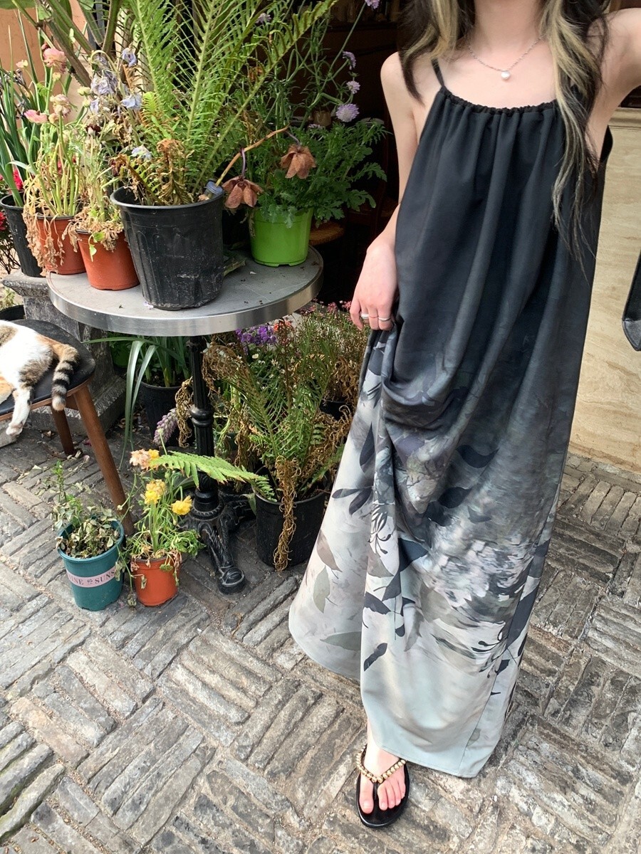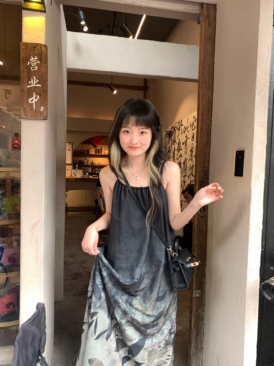• New Chinese style tie-dye floral print halter dress for women, summer design, loose long dress, elegant sleeveless A-line skirt.