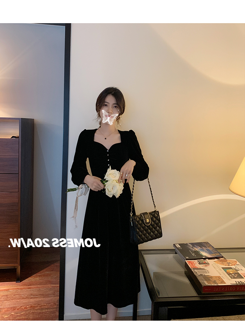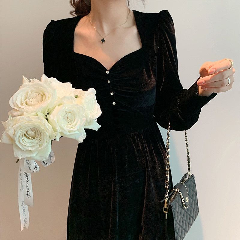 323# High-quality 2023 new French retro Hepburn style little black dress, goddess-like temperament, slim fit