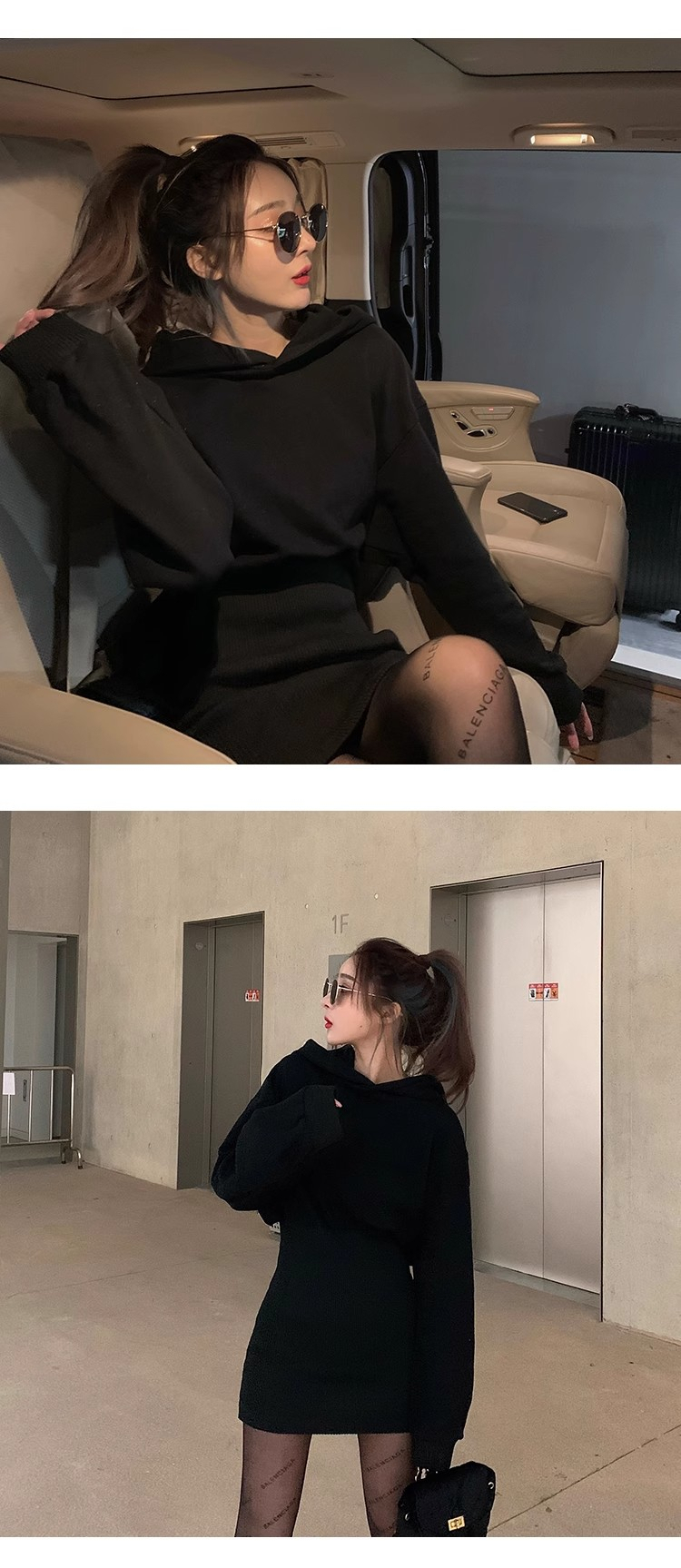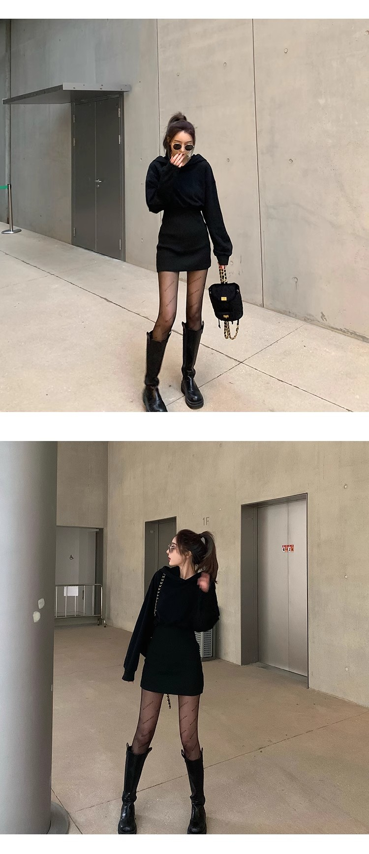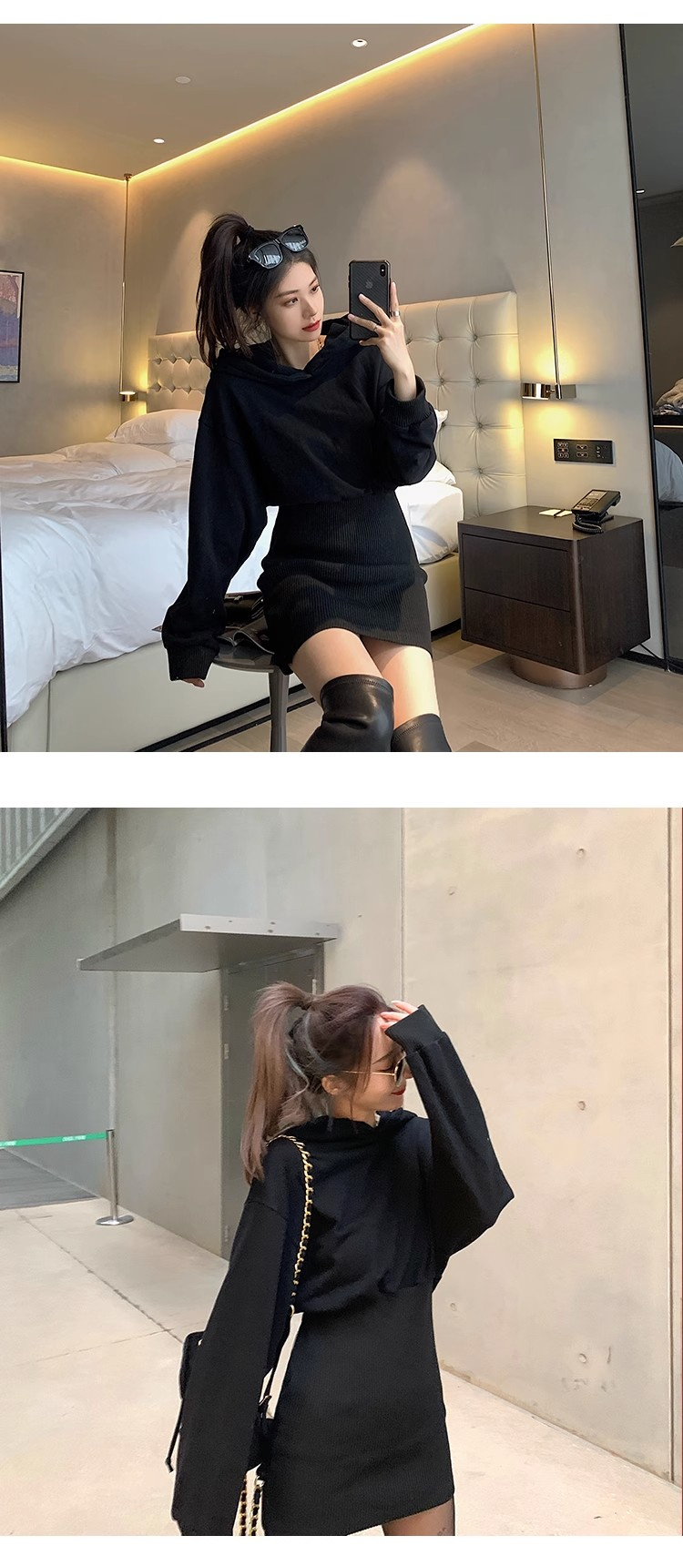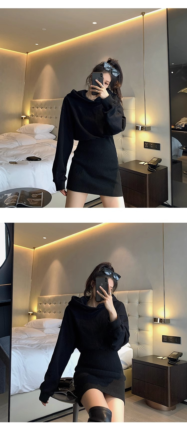 • Women's 2024 Autumn New Style Short Skirt, Fitted Waist, Bodycon, Slim Fit, Long Sleeve, French Style, Niche Style, Hooded Dress.