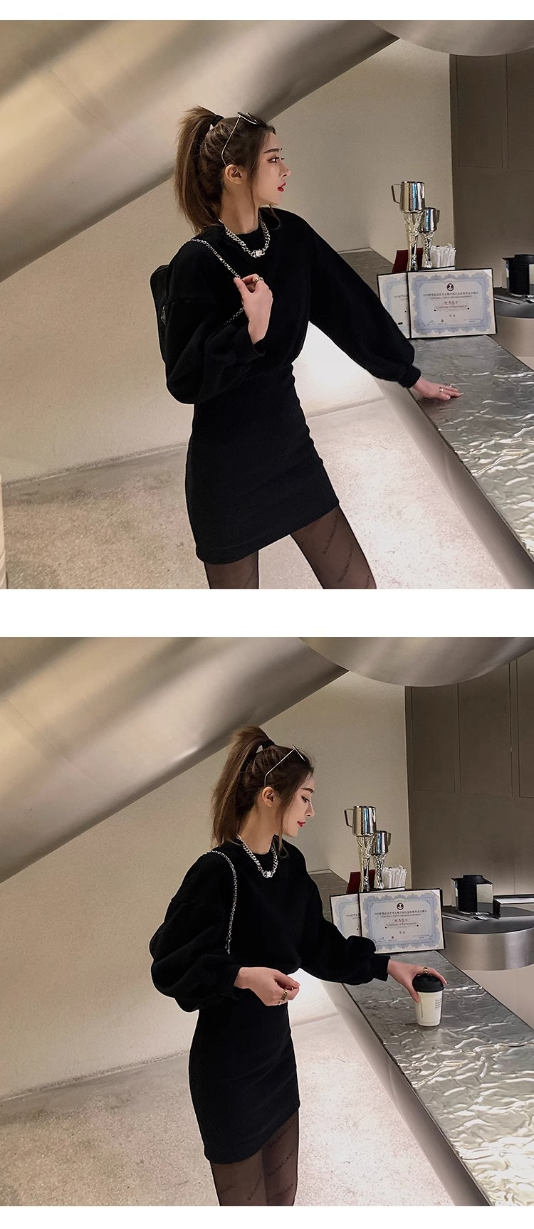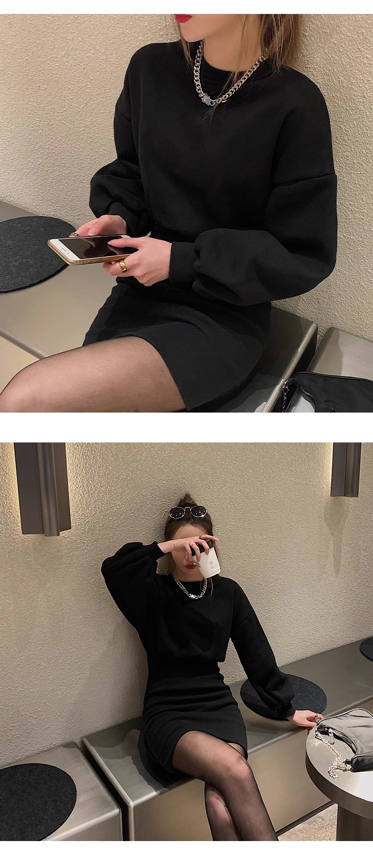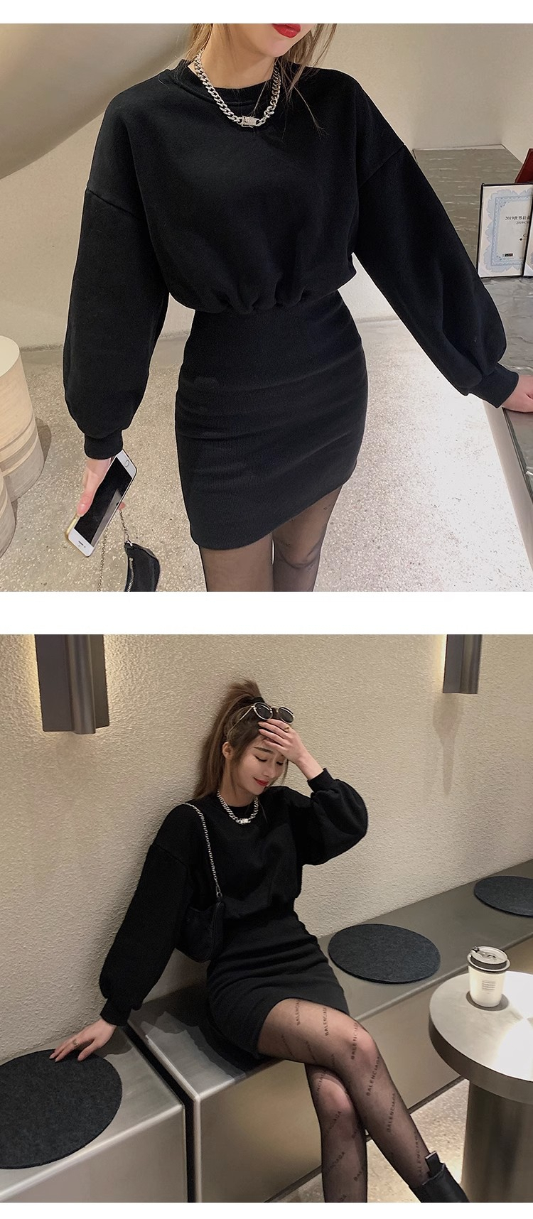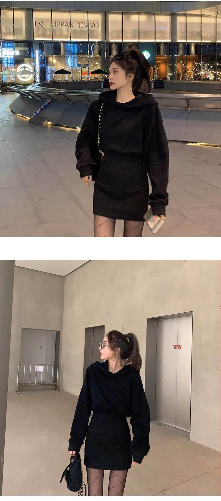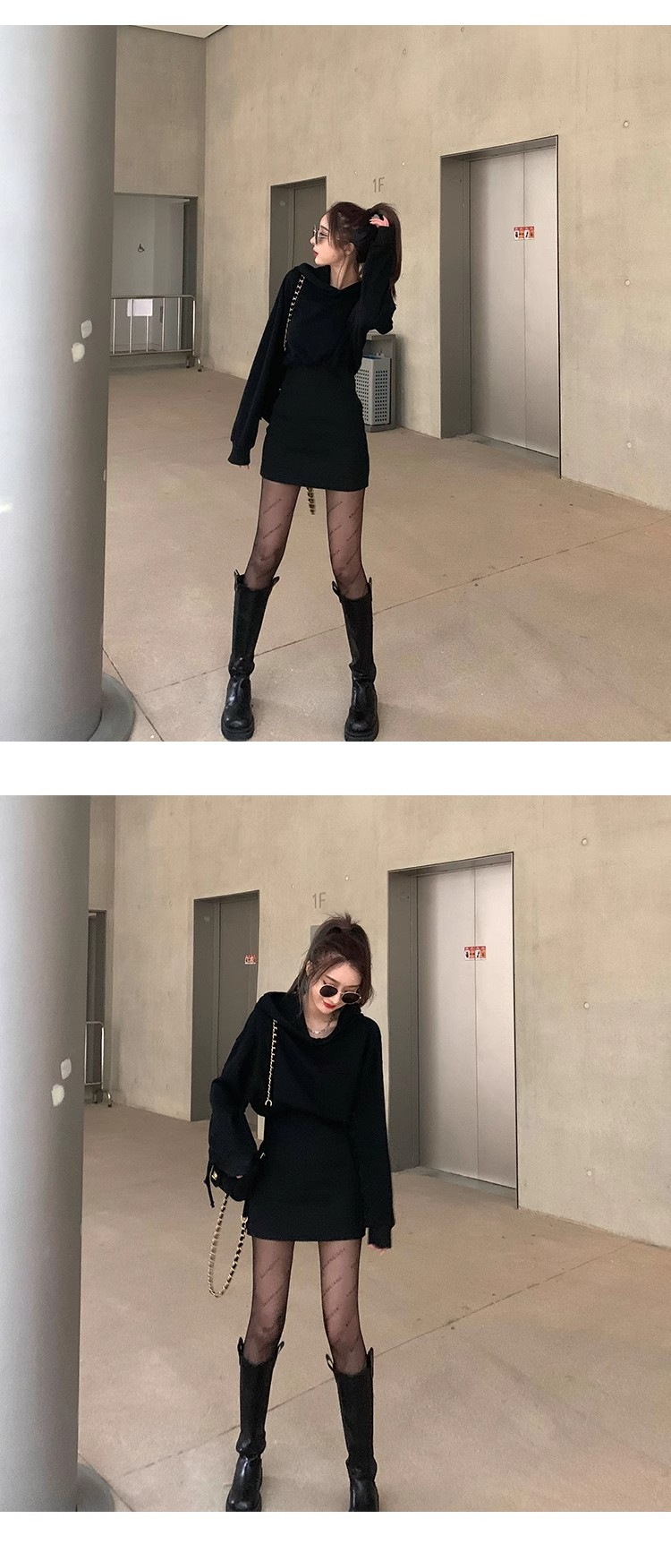 • Women's 2024 Autumn New Style Short Skirt, Fitted Waist, Bodycon, Slim Fit, Long Sleeve, French Style, Niche Style, Hooded Dress.
