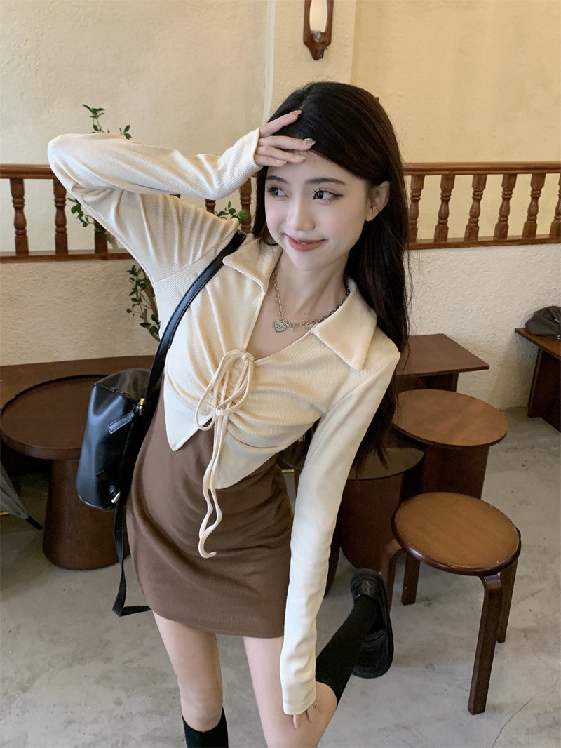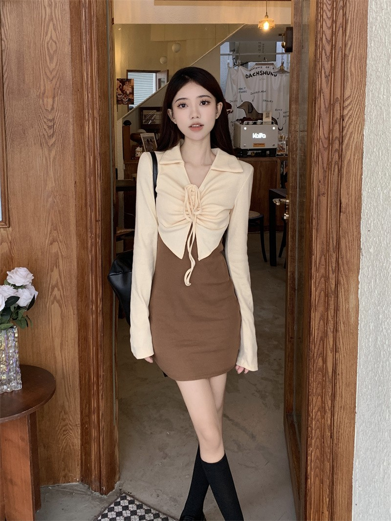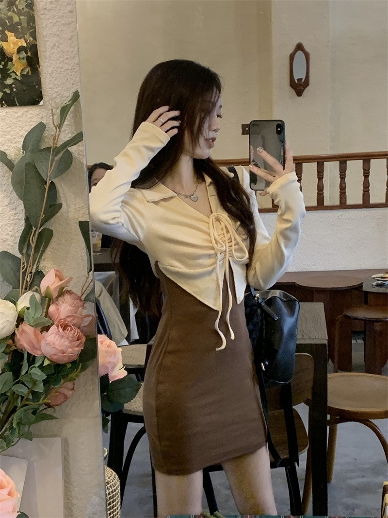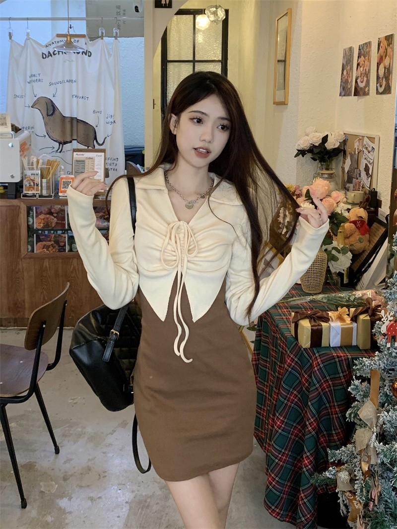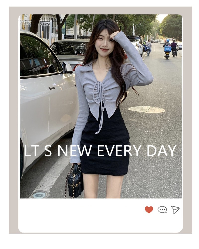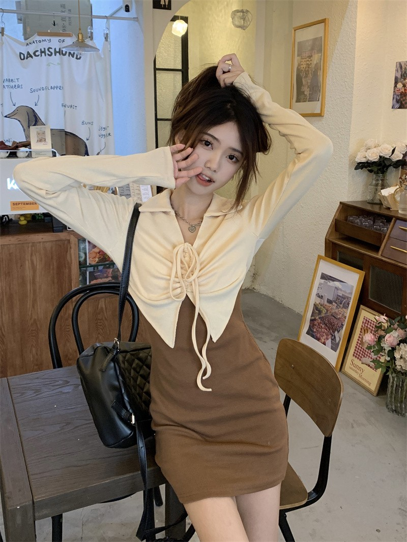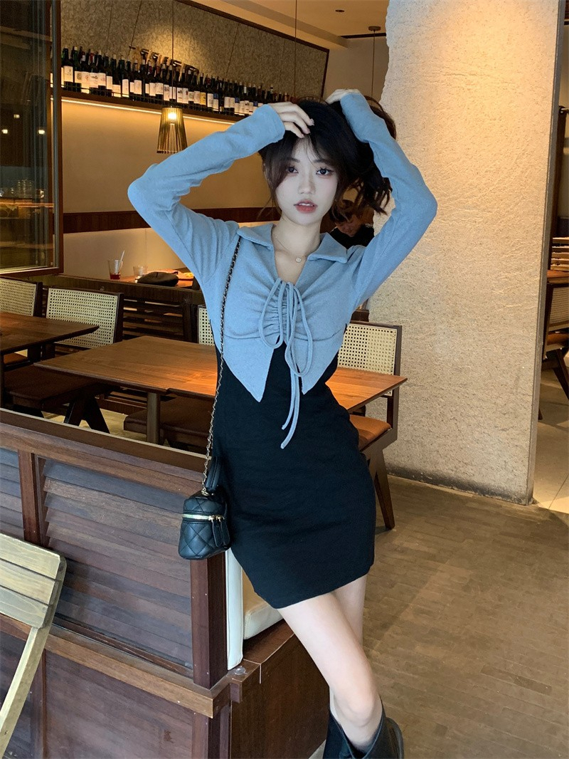 • French-style mature and elegant long-sleeved two-piece dress for women, perfect for autumn, exuding a sophisticated and sexy vibe, perfect for bodycon skirts and short skirts.