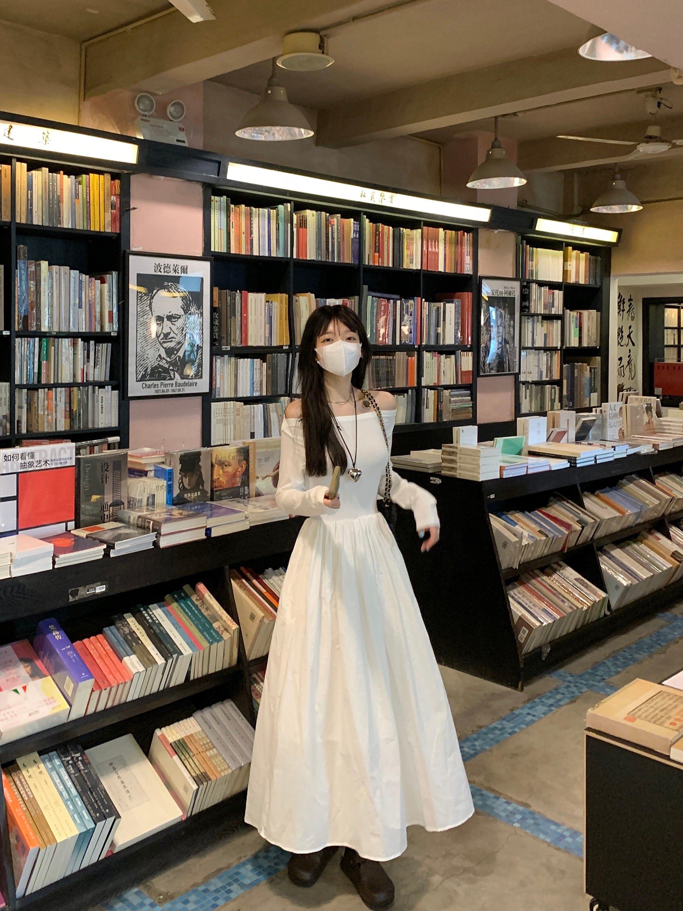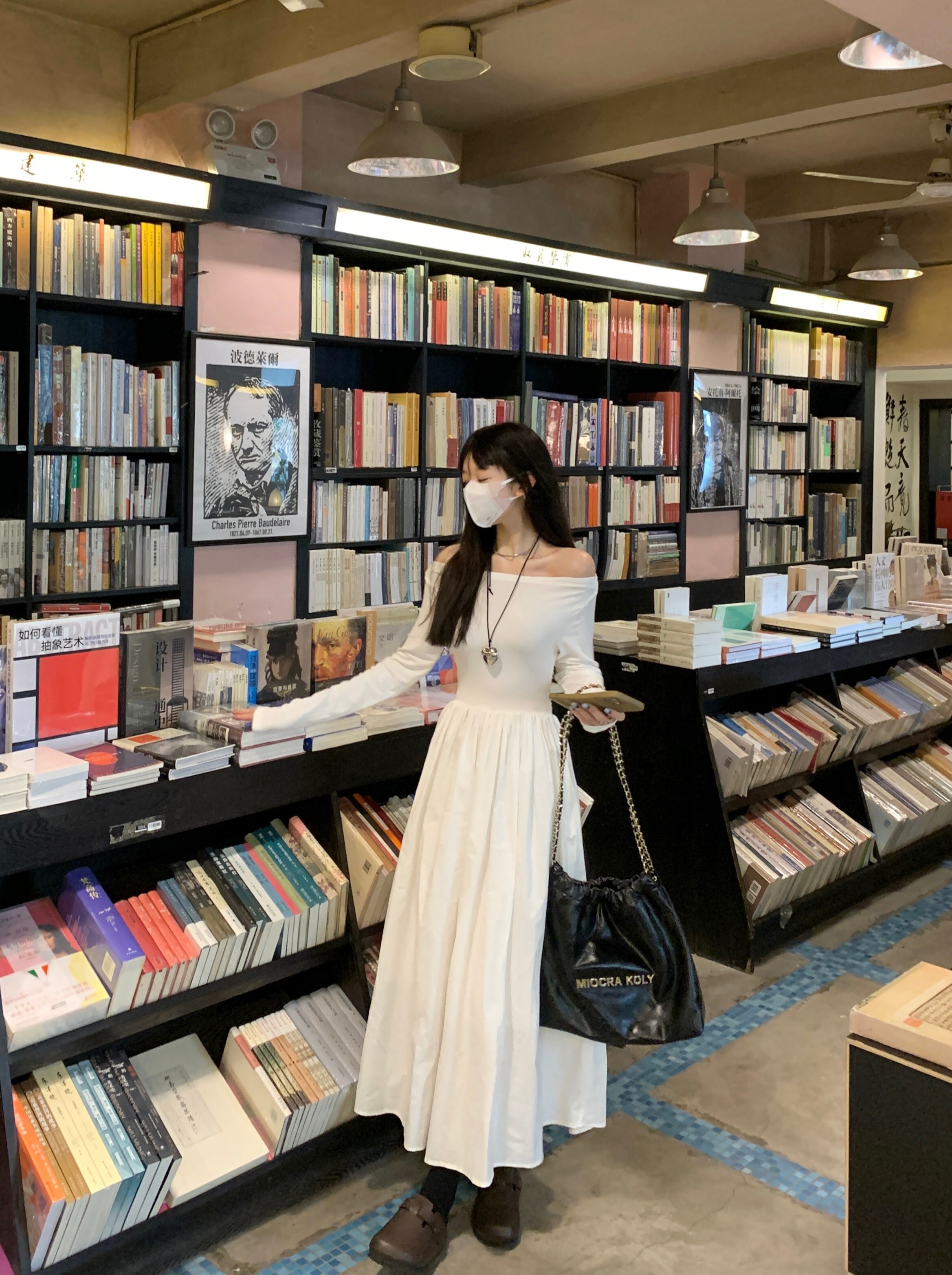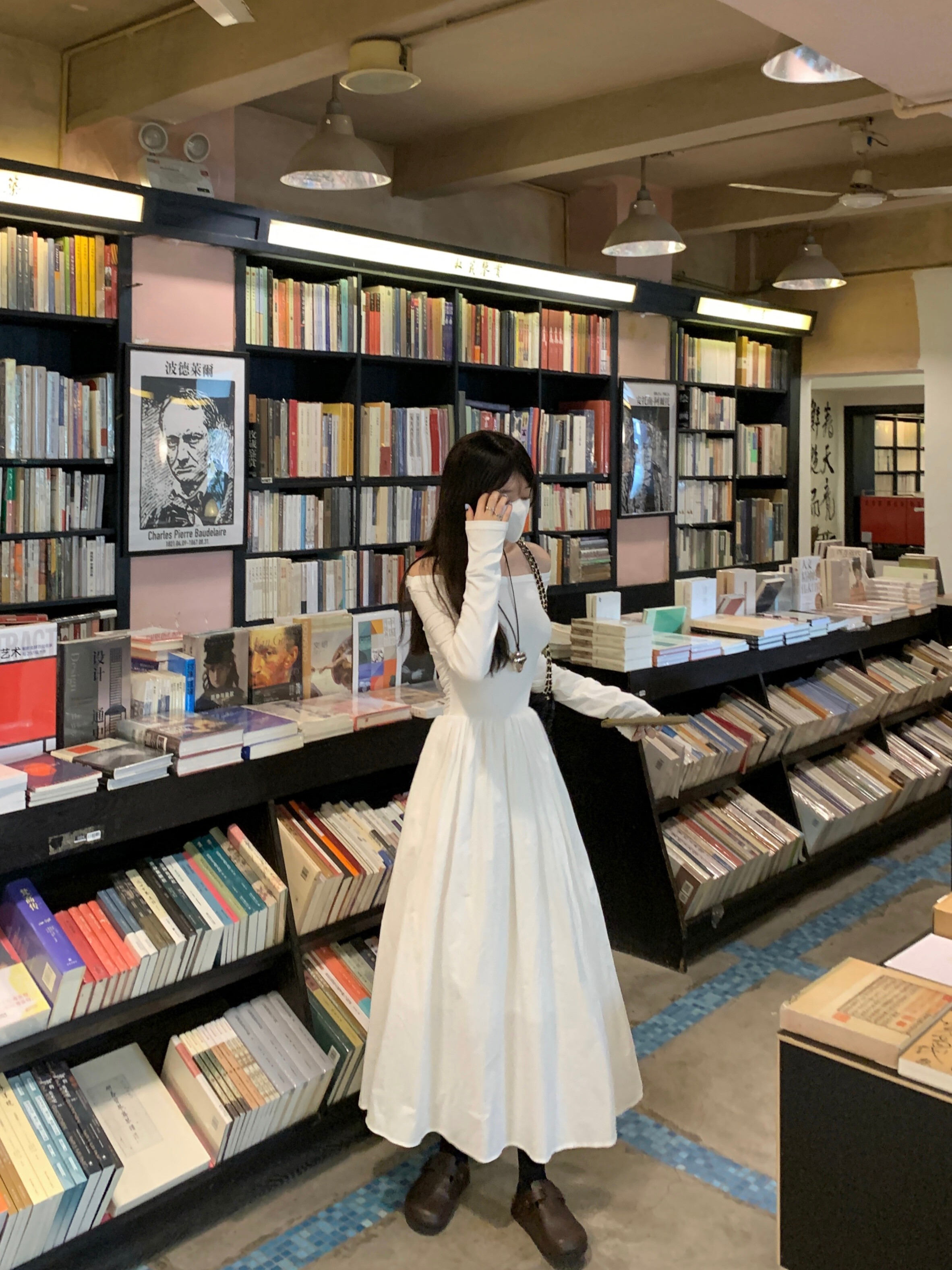 • French Hepburn style off-shoulder patchwork dress for autumn, elegant and flattering, slimming and flattering, A-line long skirt.