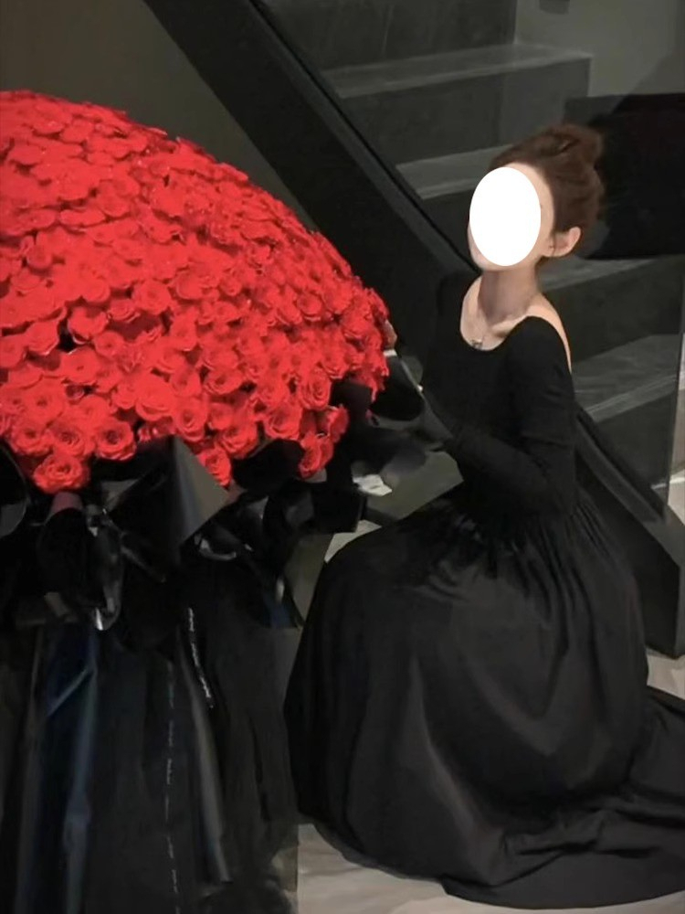 • French-style elegant black dress for women, early autumn 2023, Hepburn style, sophisticated and slimming.
