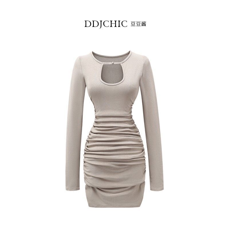 Merlad's figure-flattering halter neck dress for women, perfect for autumn and winter, exuding a pure, sexy, body-hugging style, a short skirt for layering or wearing as an inner layer.
