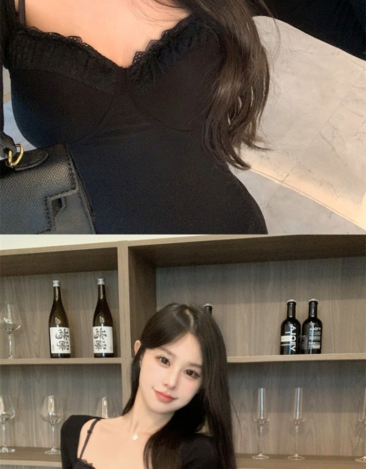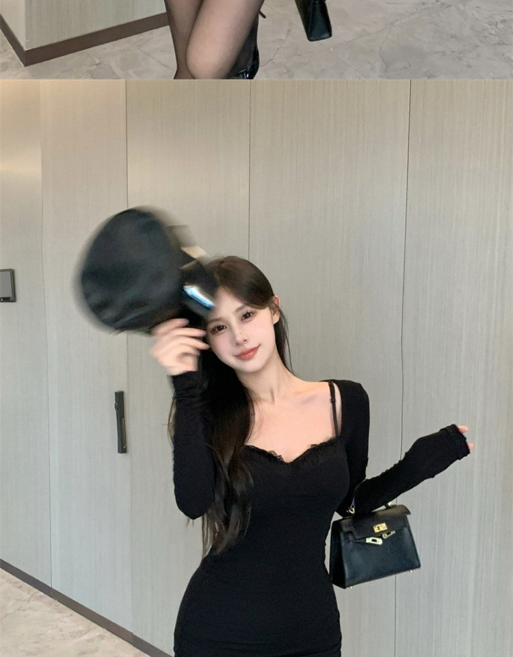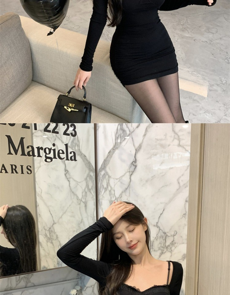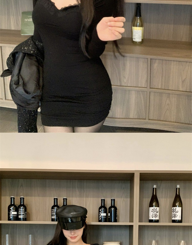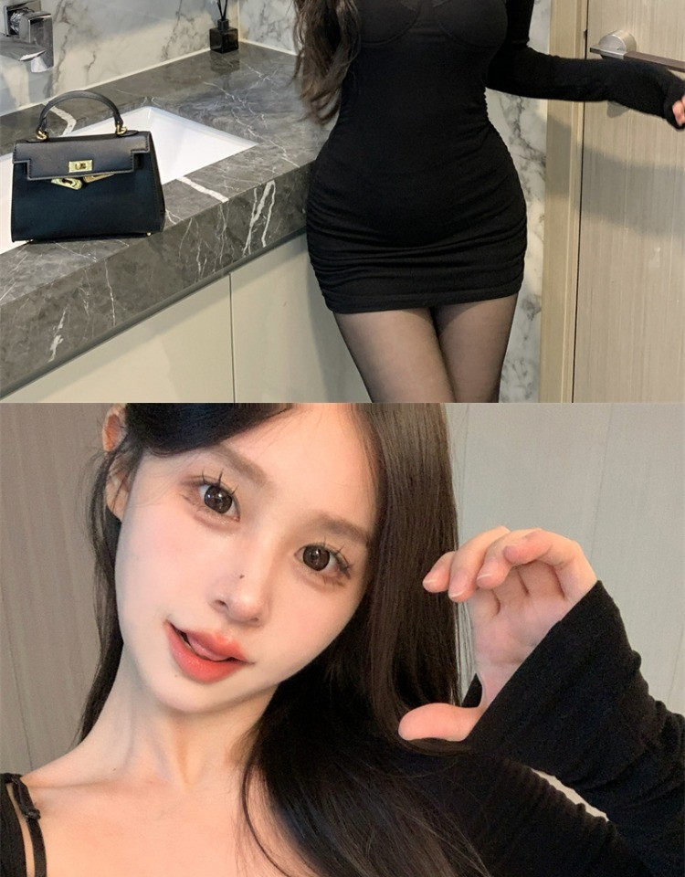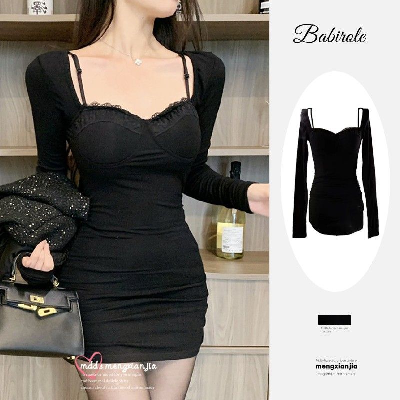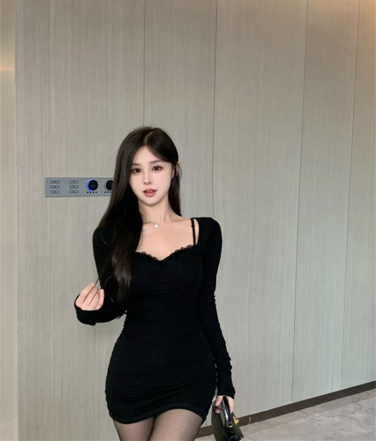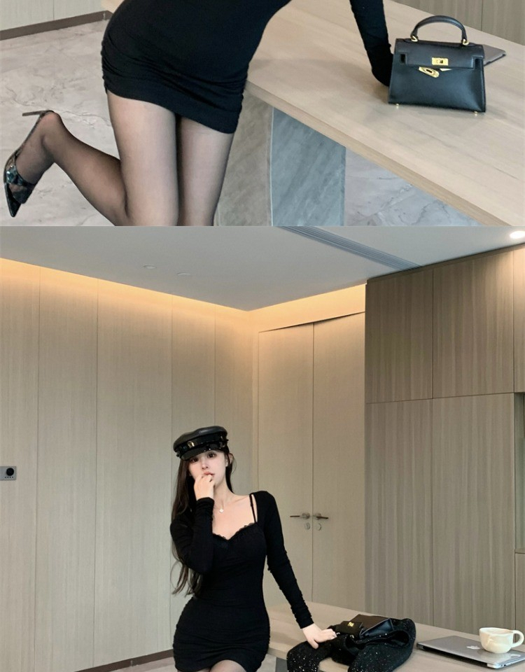 • High-end little black dress for women, autumn 2024 new style, bodycon short skirt, long sleeves, figure-flattering, hollowed-out suspender dress
