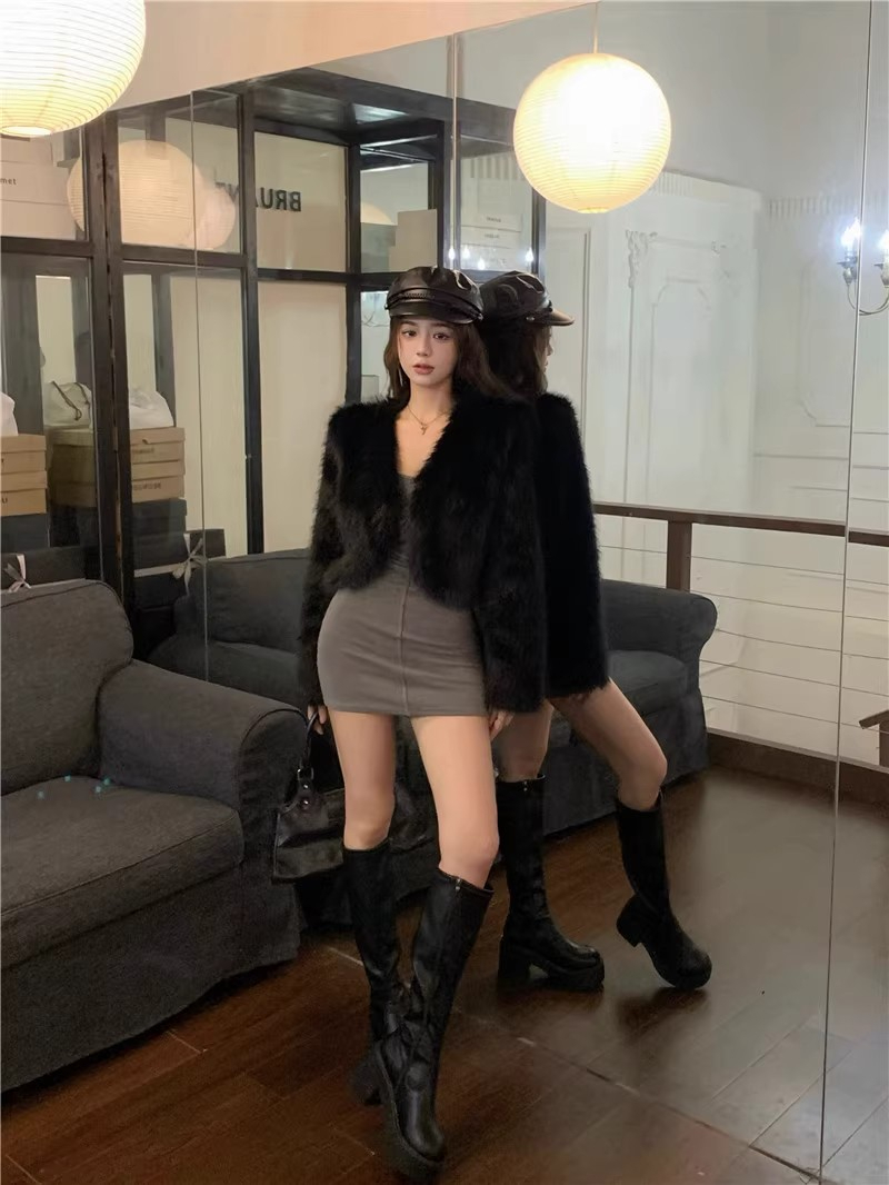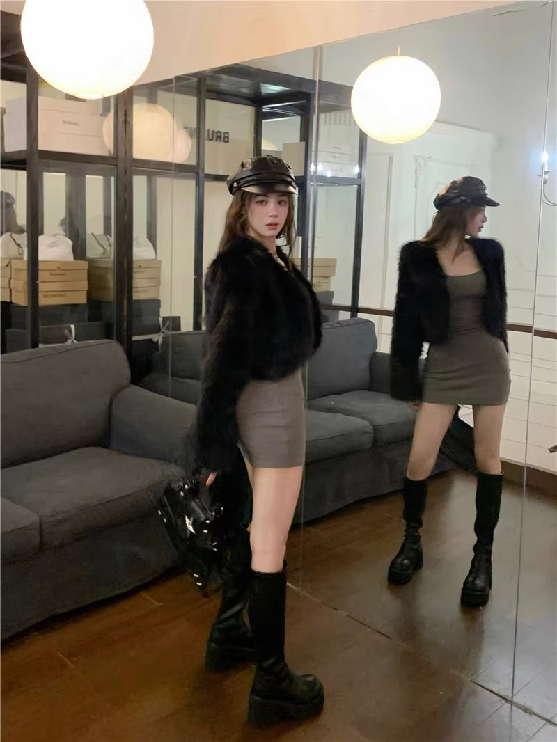 • Grey U-neck bodycon mini skirt for women, sexy autumn and winter base layer, tight-fitting and slimming, pure and sexy long-sleeved dress