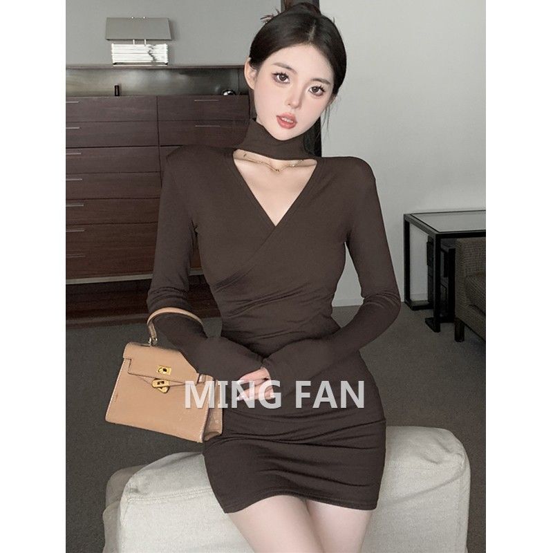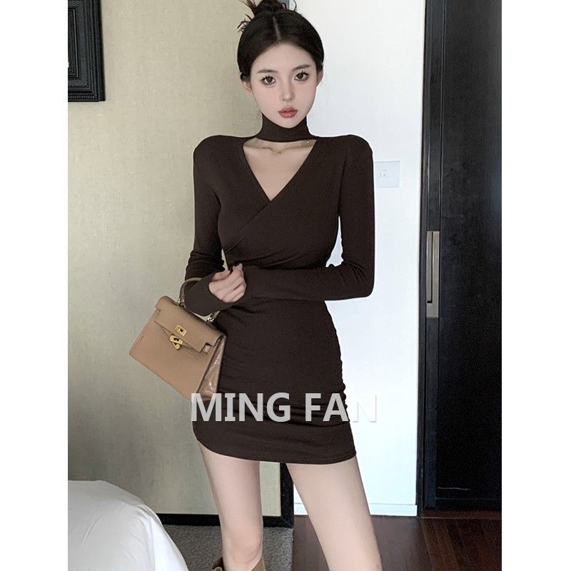 Sexy and sophisticated halter neck dress, perfect for layering under a high-neck, crossover, fitted bodycon mini skirt for autumn and winter.
