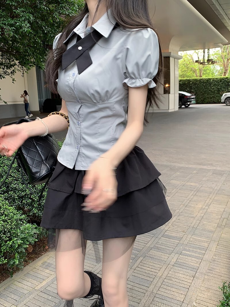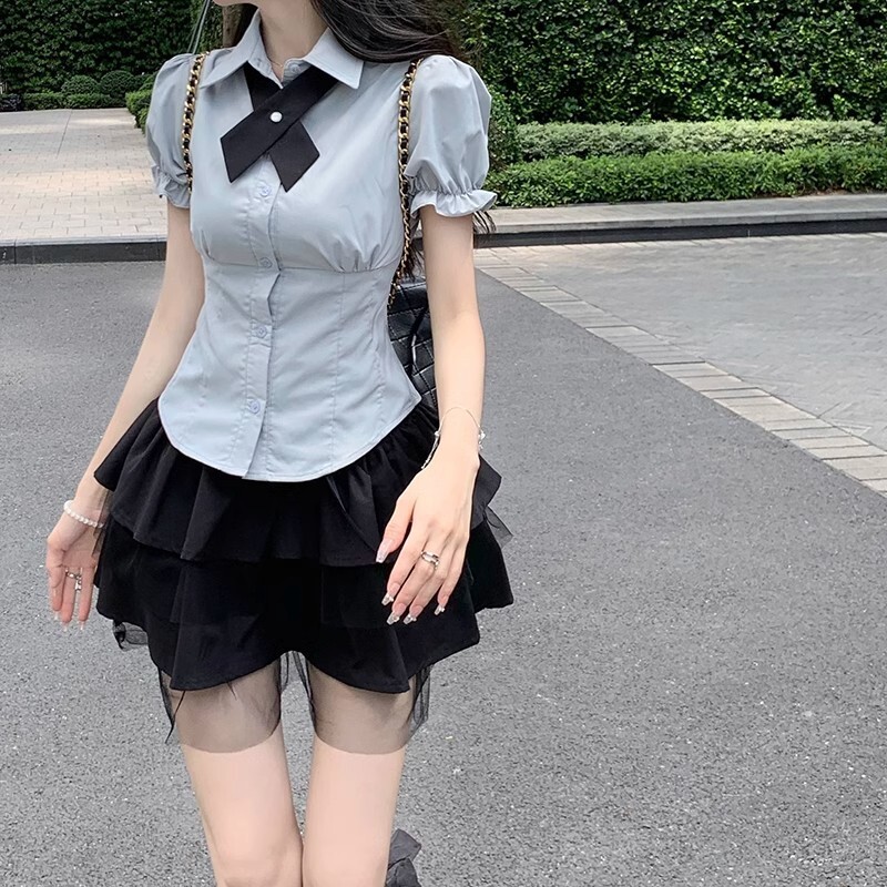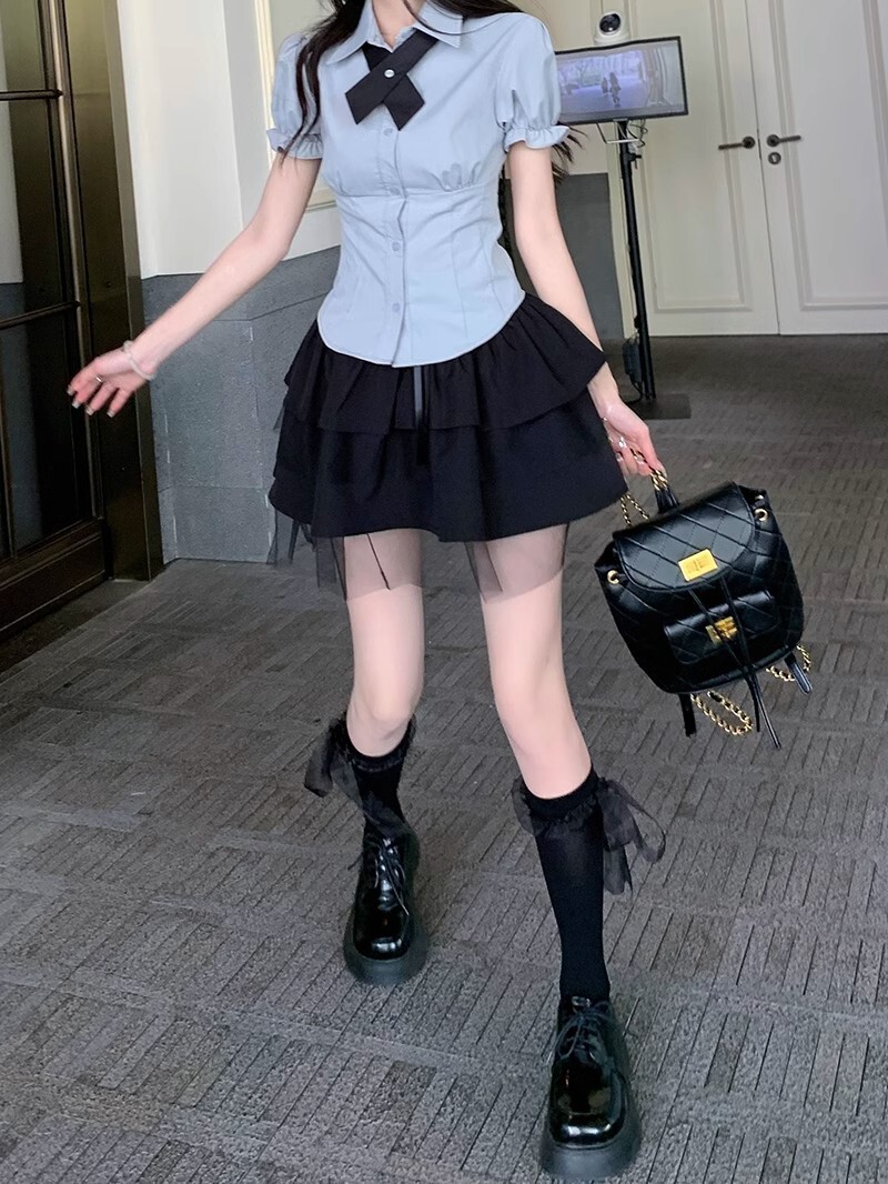 Long-sleeved T-shirt, jacket, shirt, A-line skirt, dress, pleated skirt, women's autumn/winter/spring/summer two-piece set