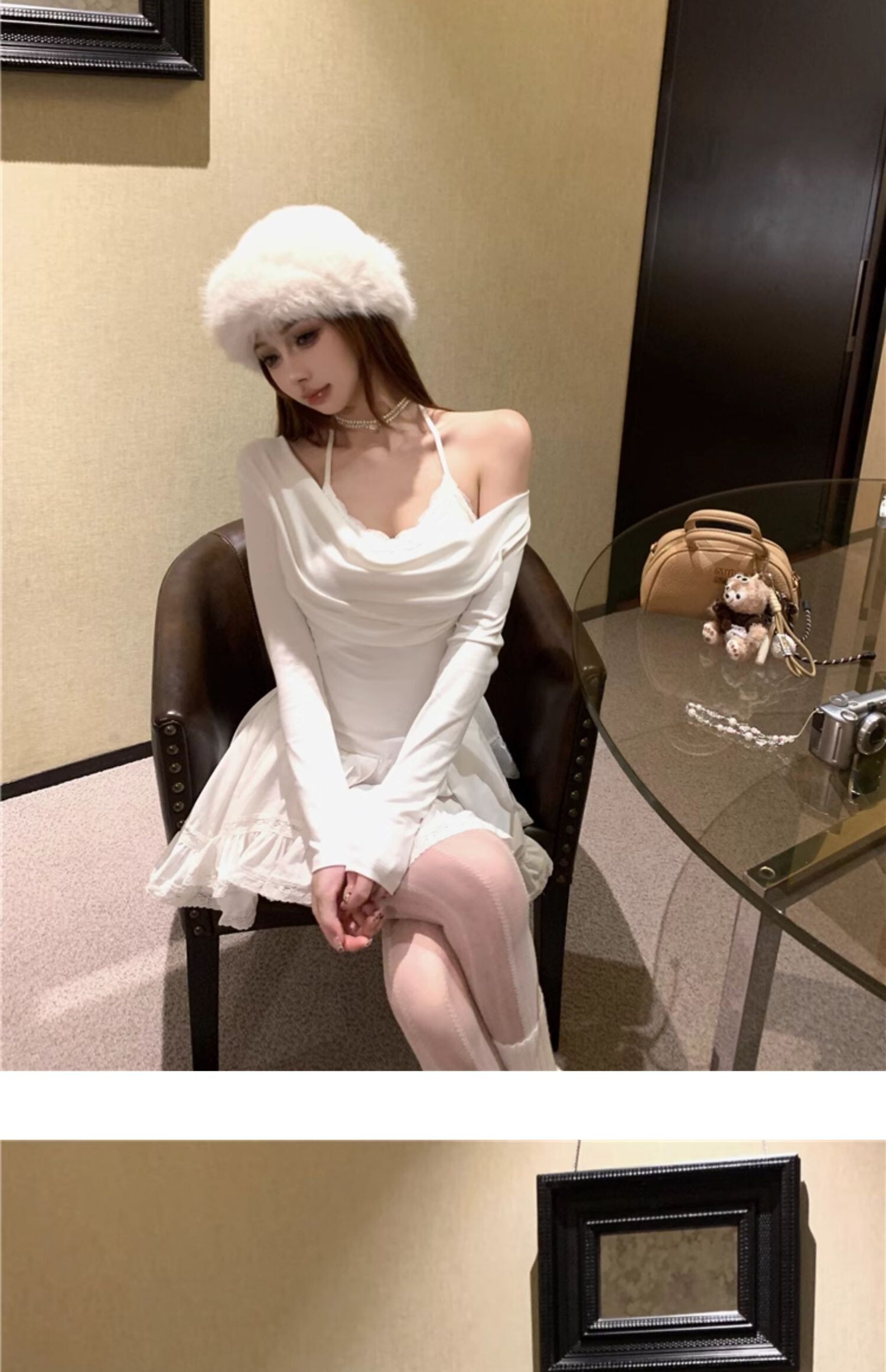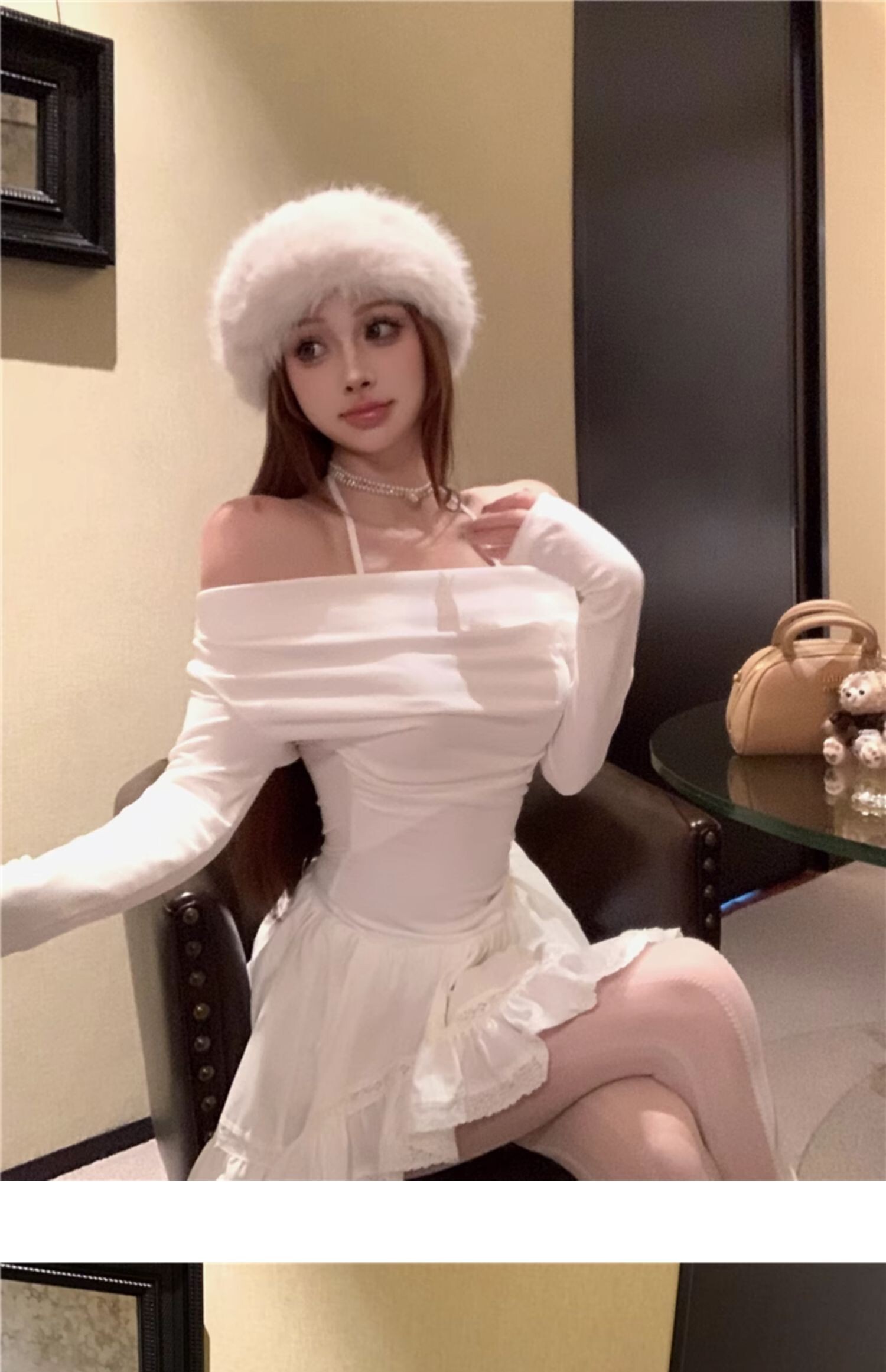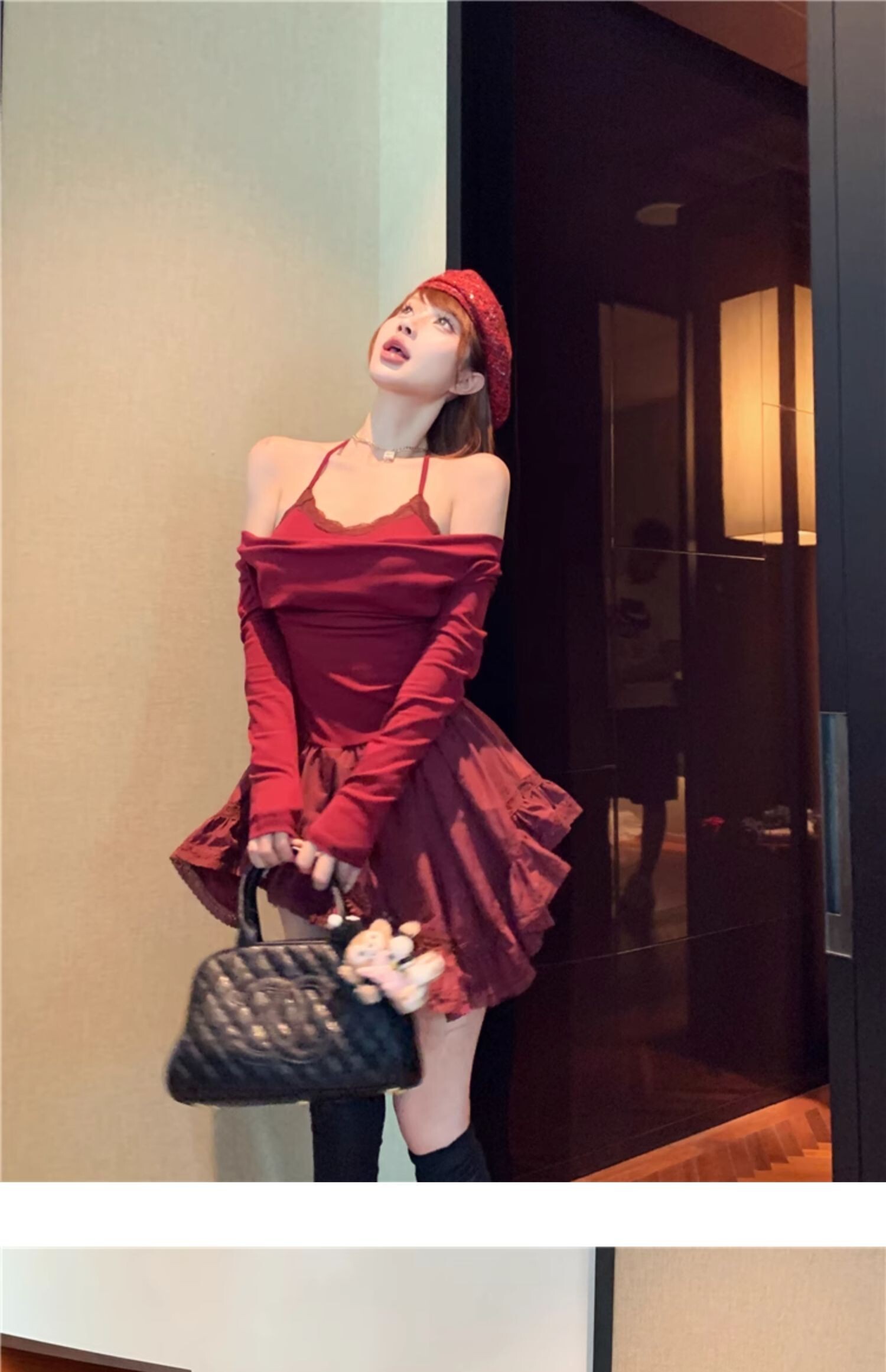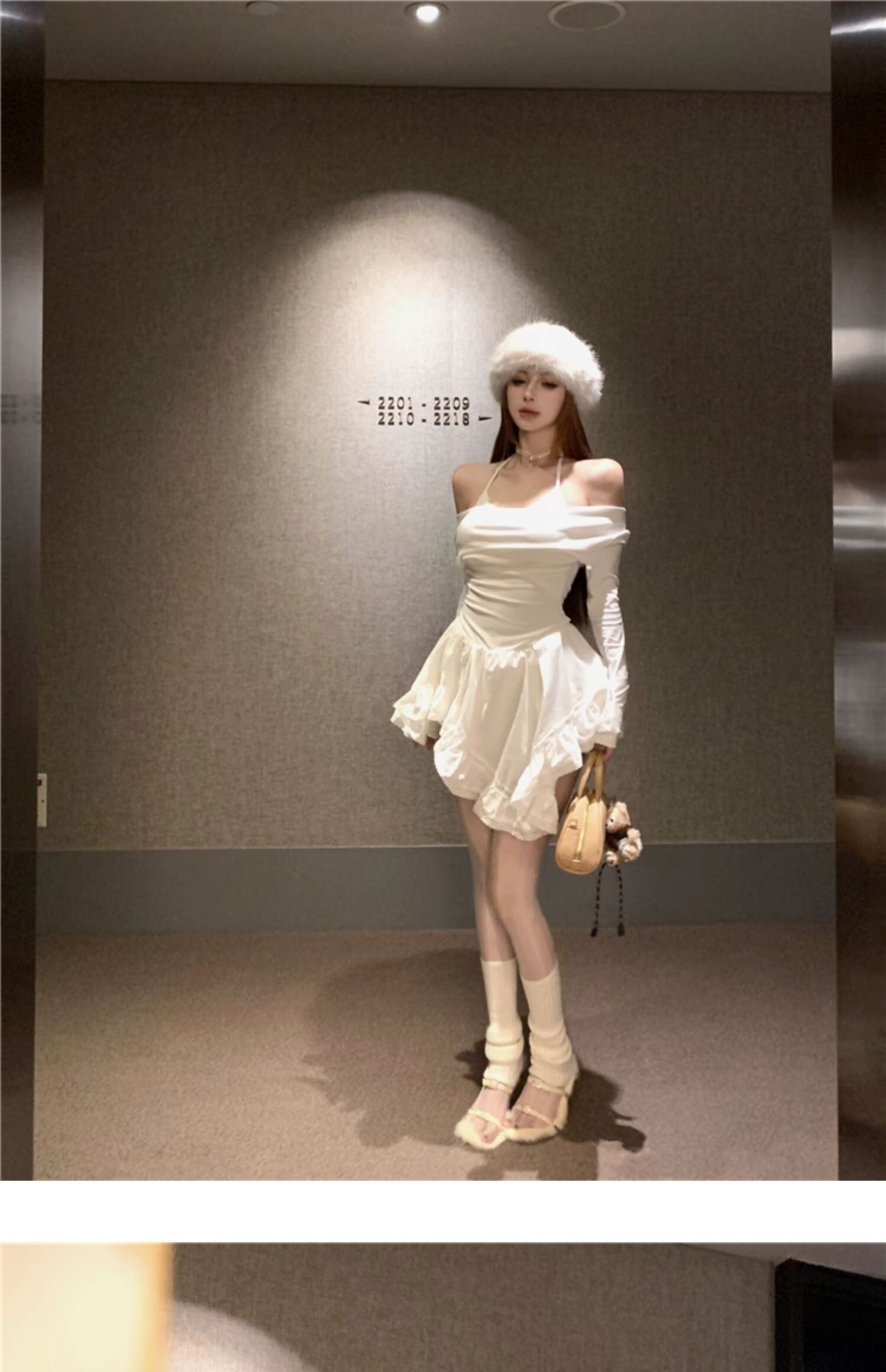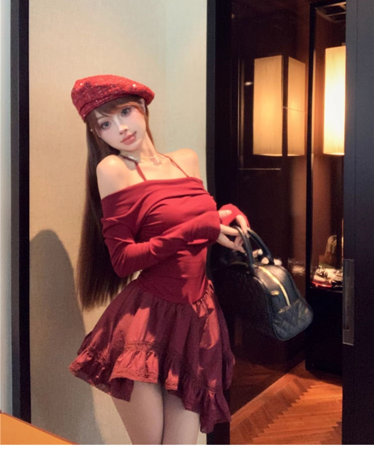 • Sexy off-shoulder halter neck halter long-sleeved dress for spring and autumn, revealing back and fitted waist, irregular skirt.