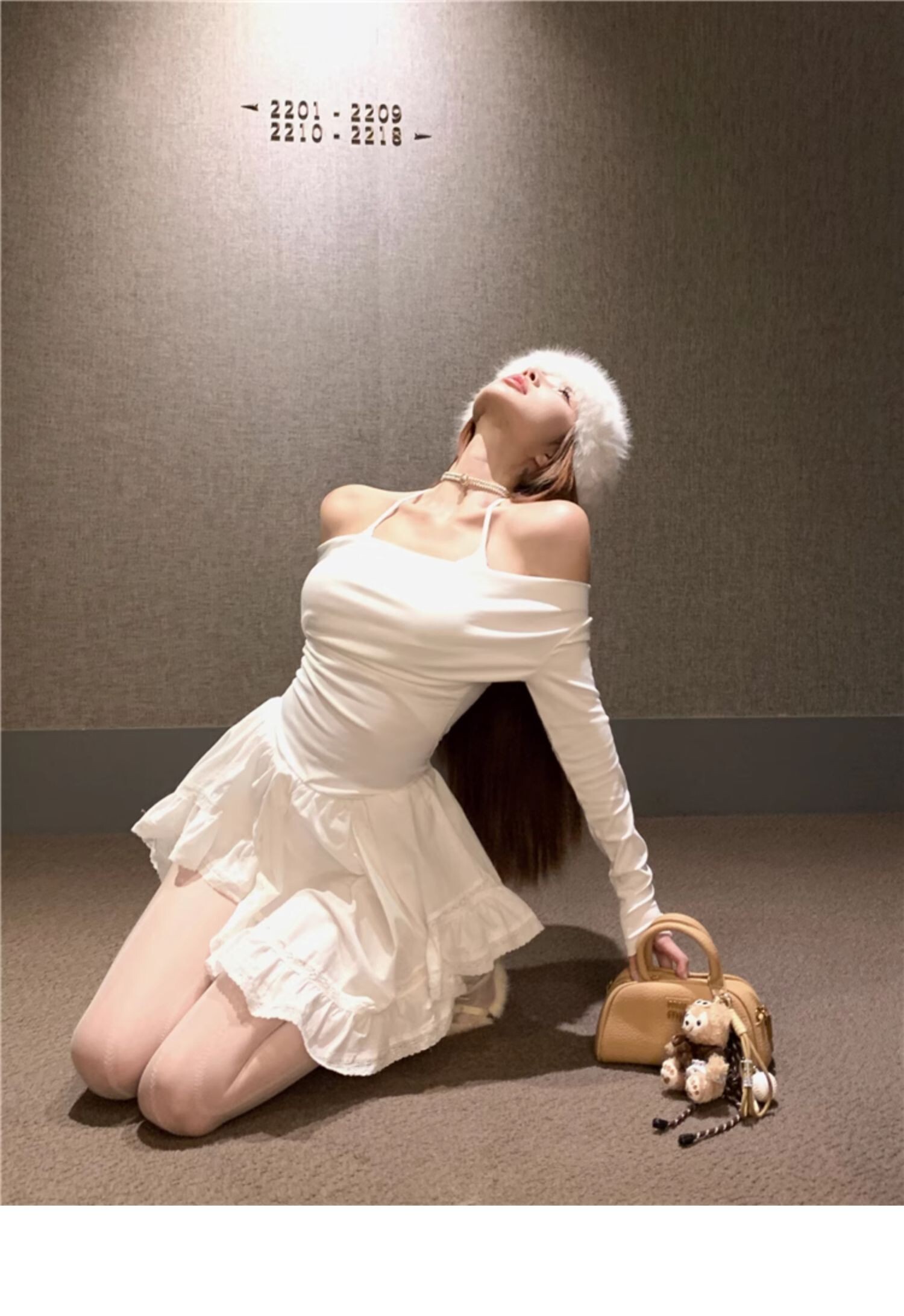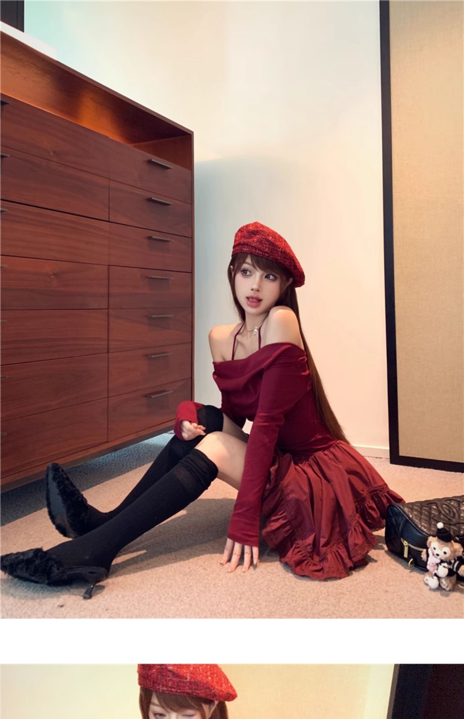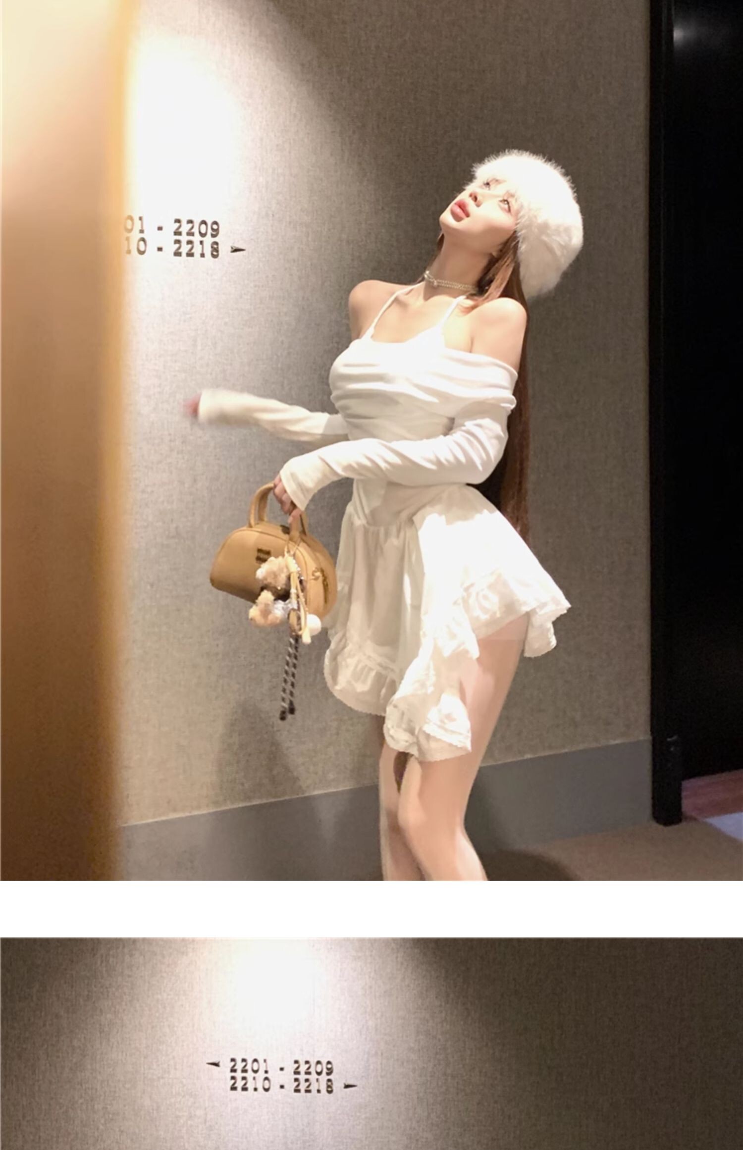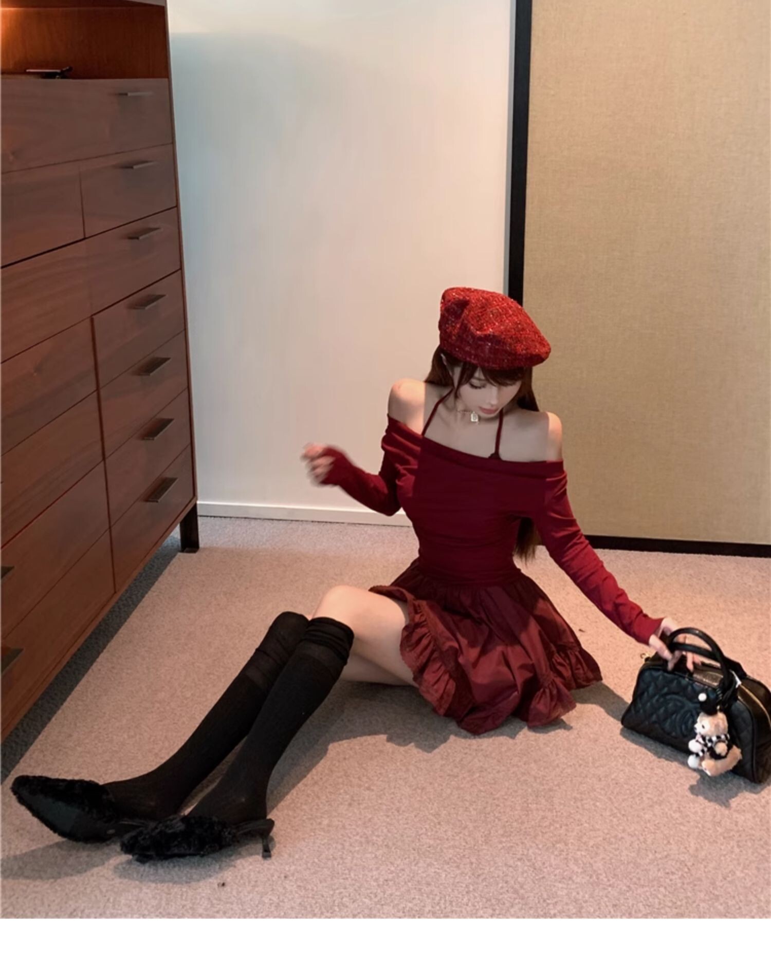 • Sexy off-shoulder halter neck halter long-sleeved dress for spring and autumn, revealing back and fitted waist, irregular skirt.