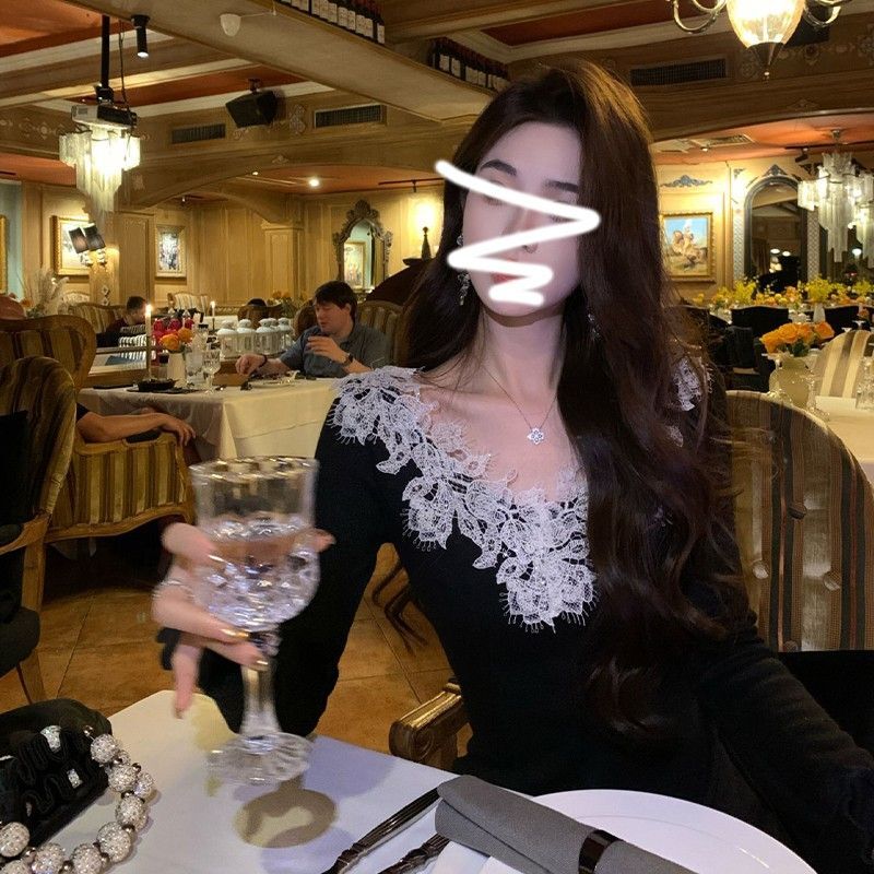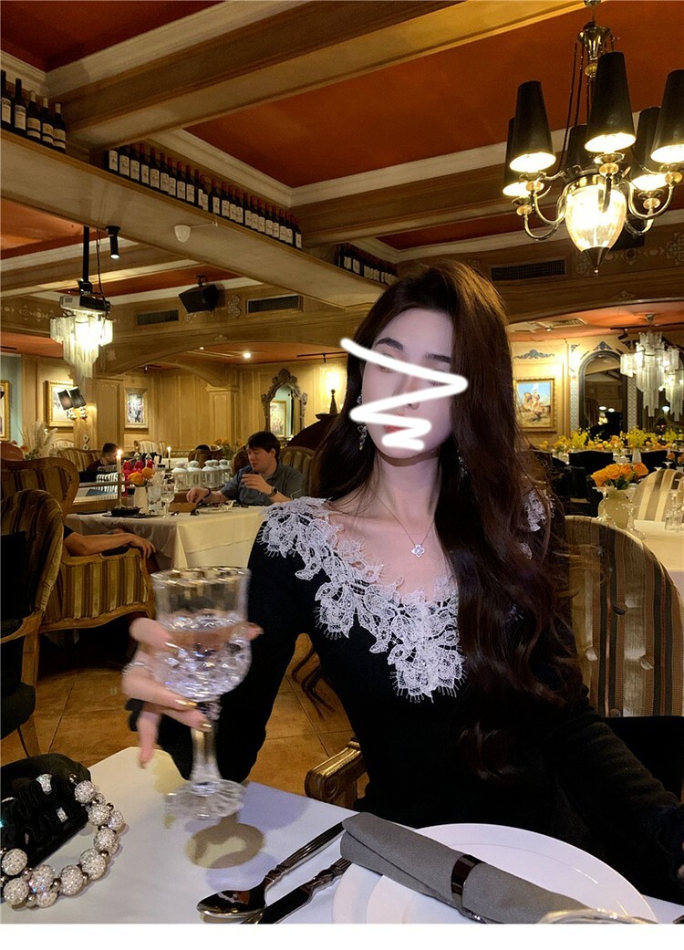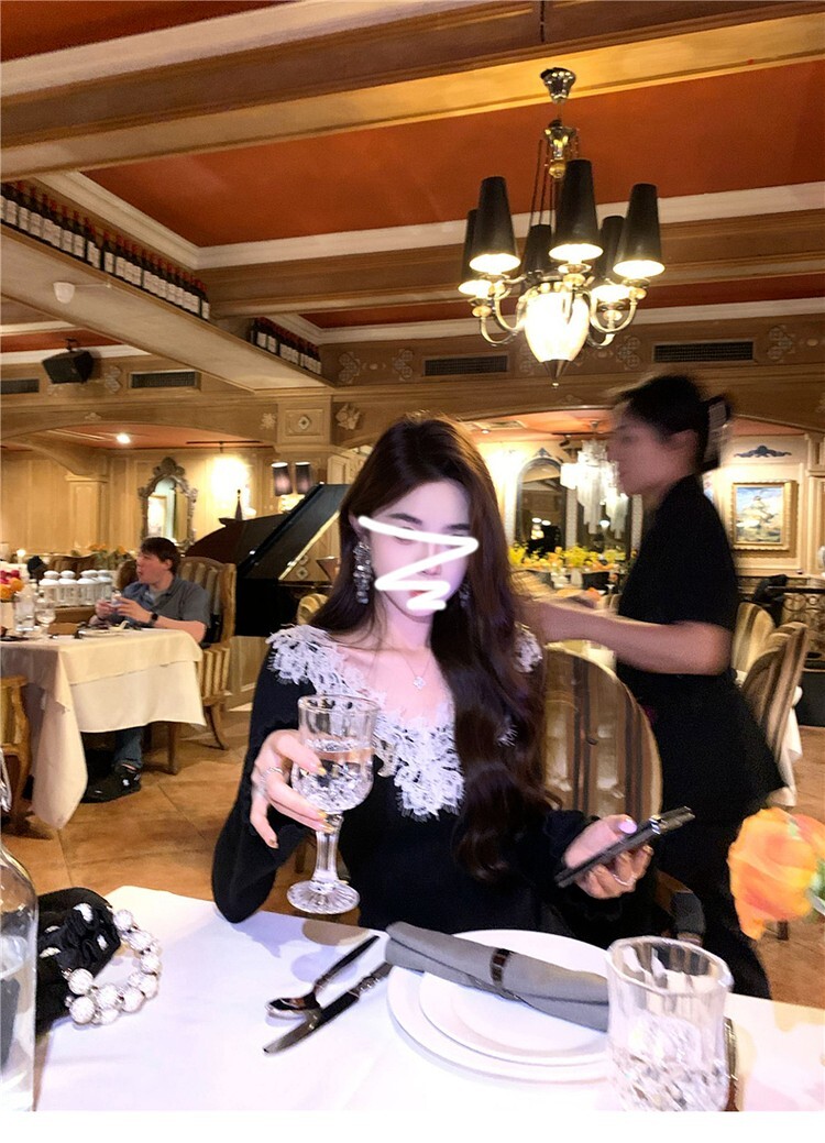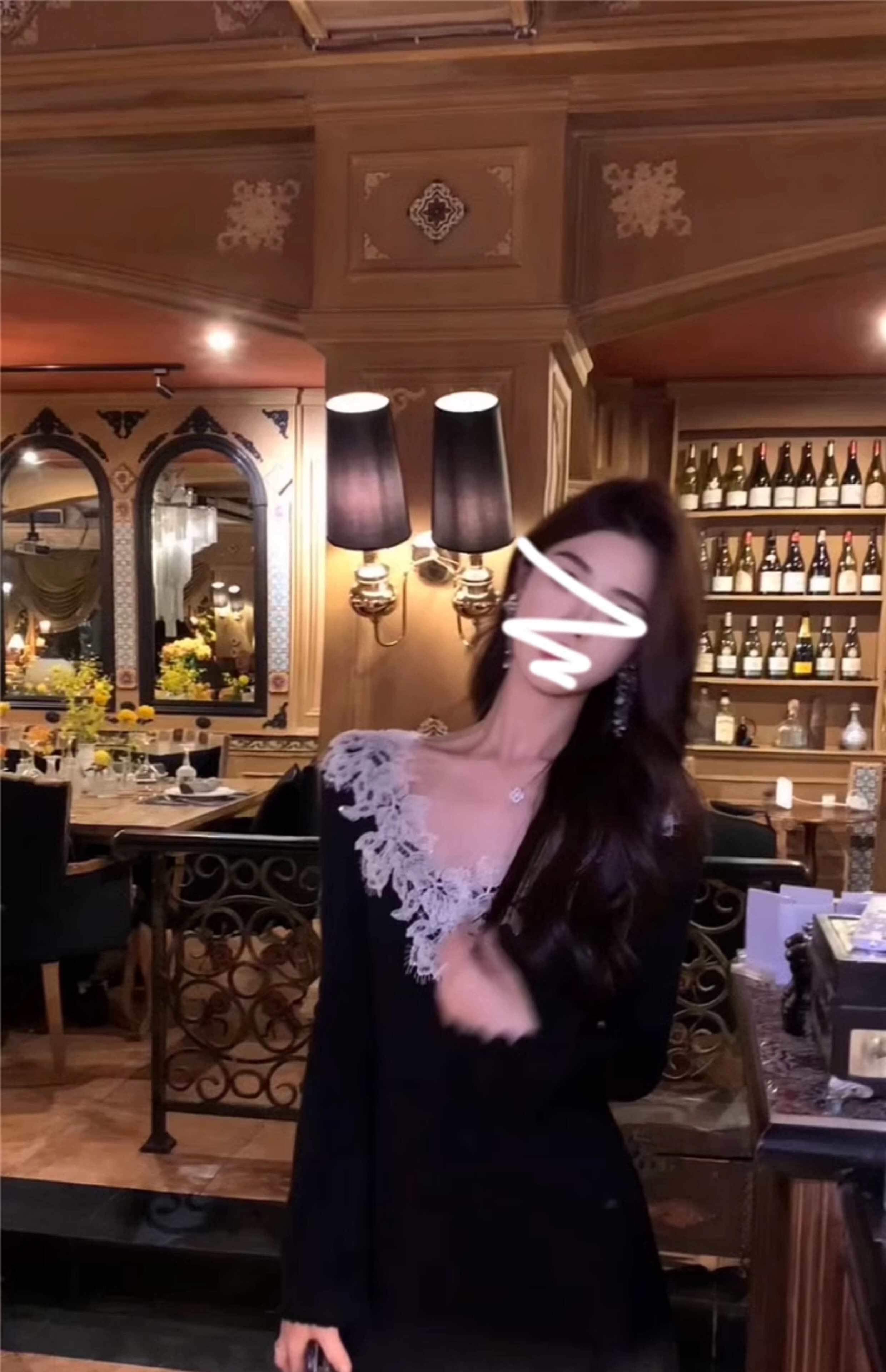 • French Chanel-inspired Hepburn-style black V-neck dress for women, new autumn/winter 2024 style, sophisticated inner layer.