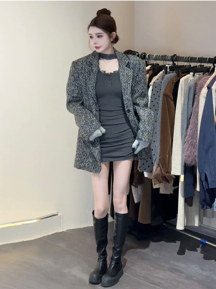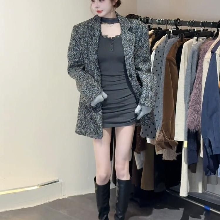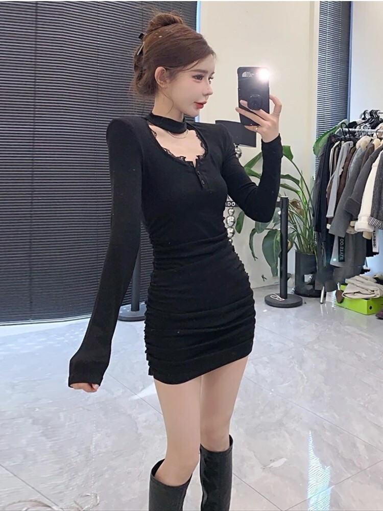 • Spicy halter neck lace collar dress for women, Korean style, pure and sexy design, elegant, slimming, pleated bodycon skirt