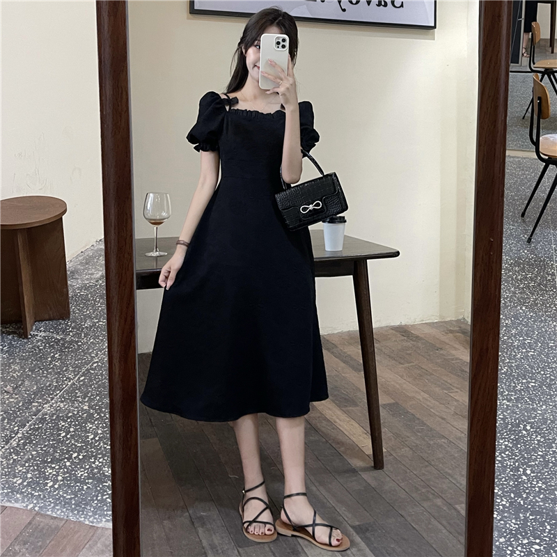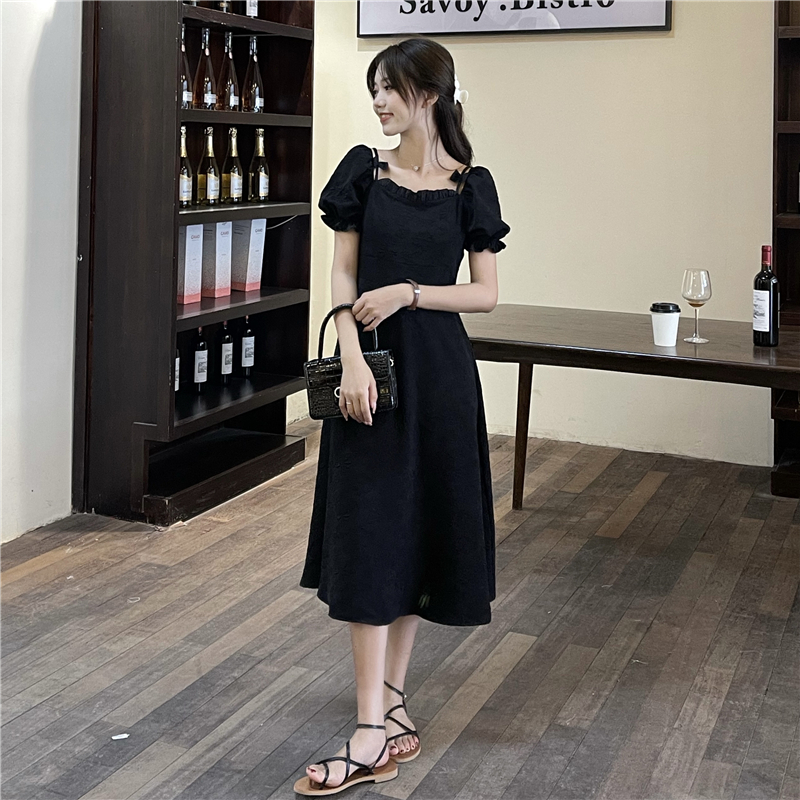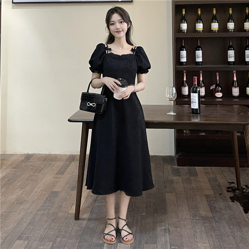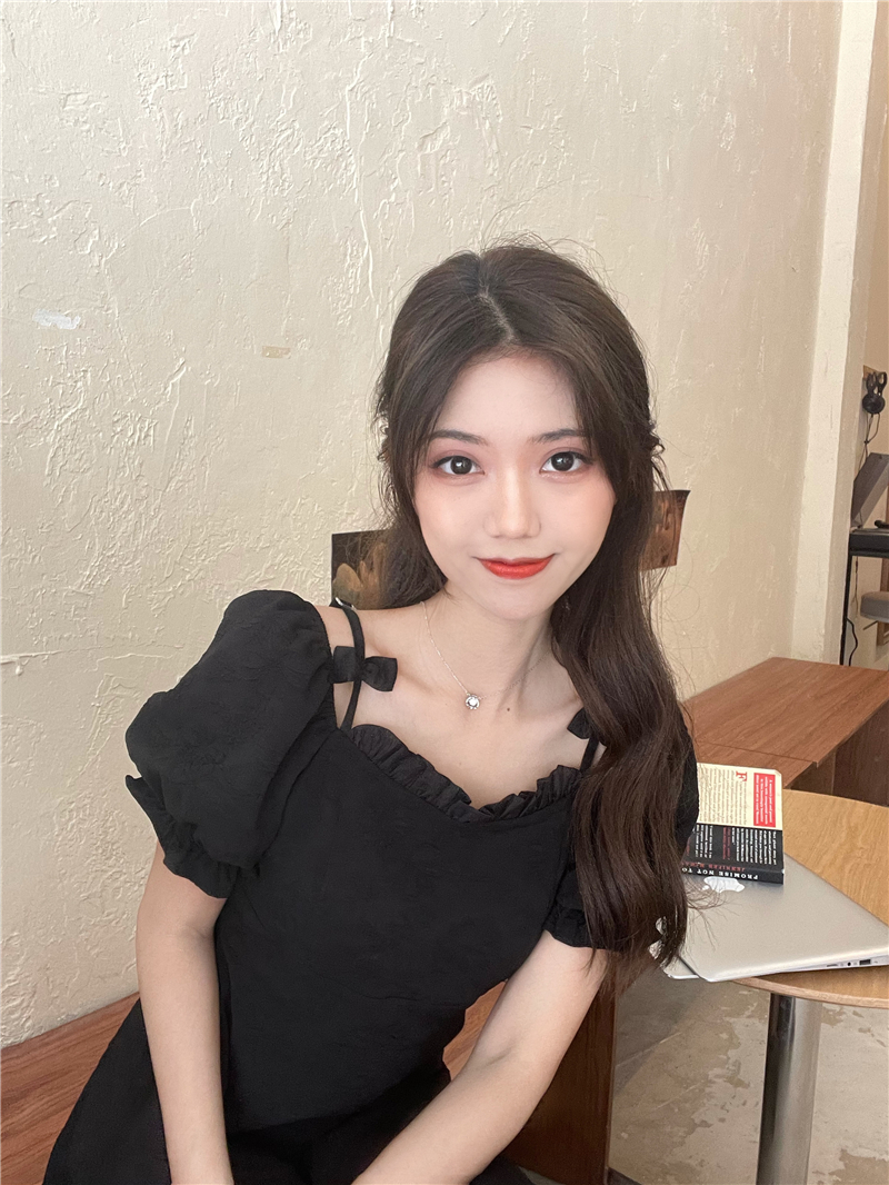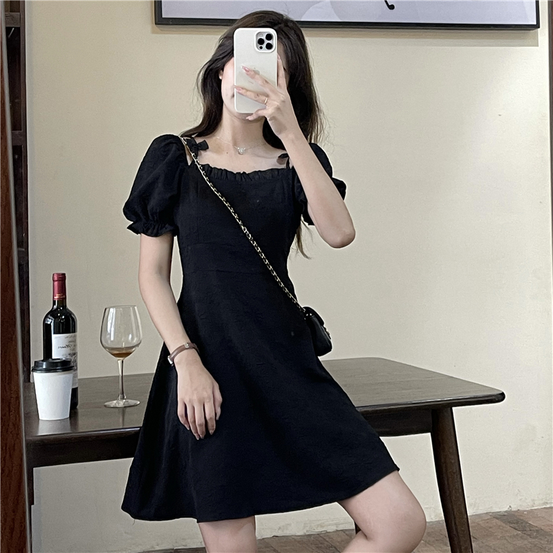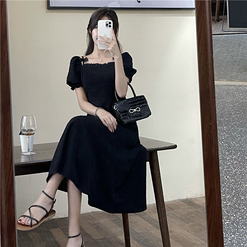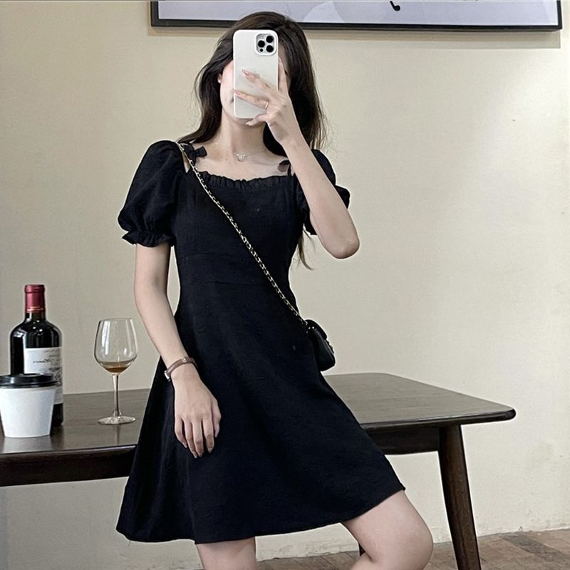 • Official photos, actual price, square neck puff sleeve dress, women's summer 2025 new style, French Hepburn style, little black.
