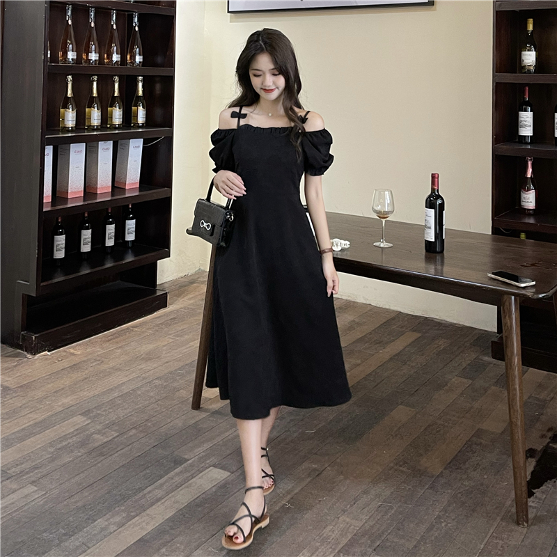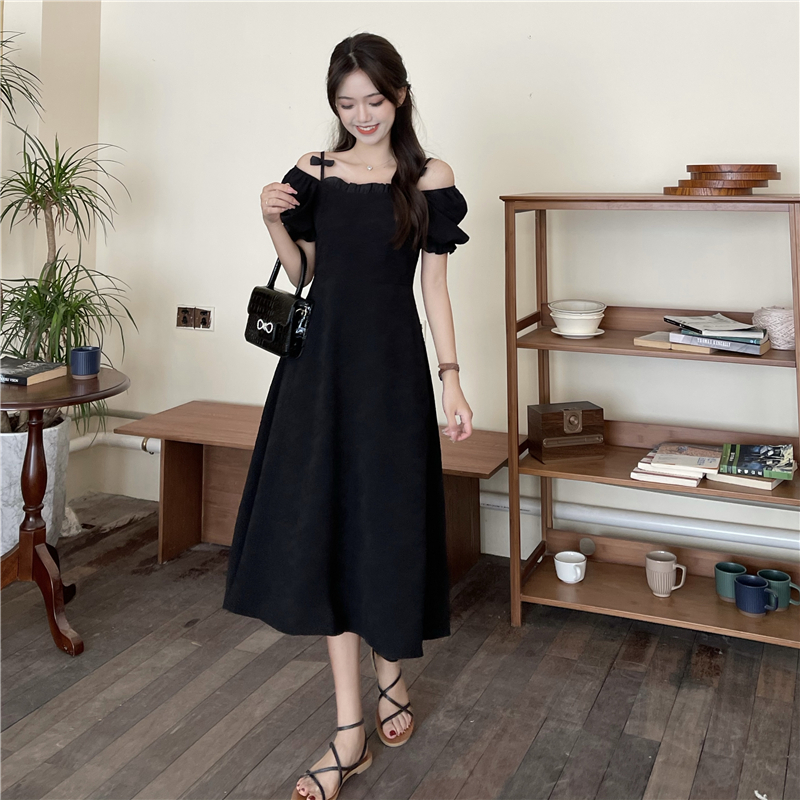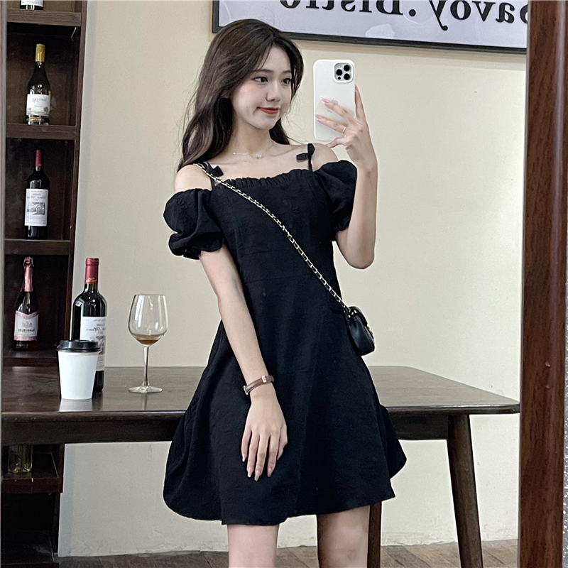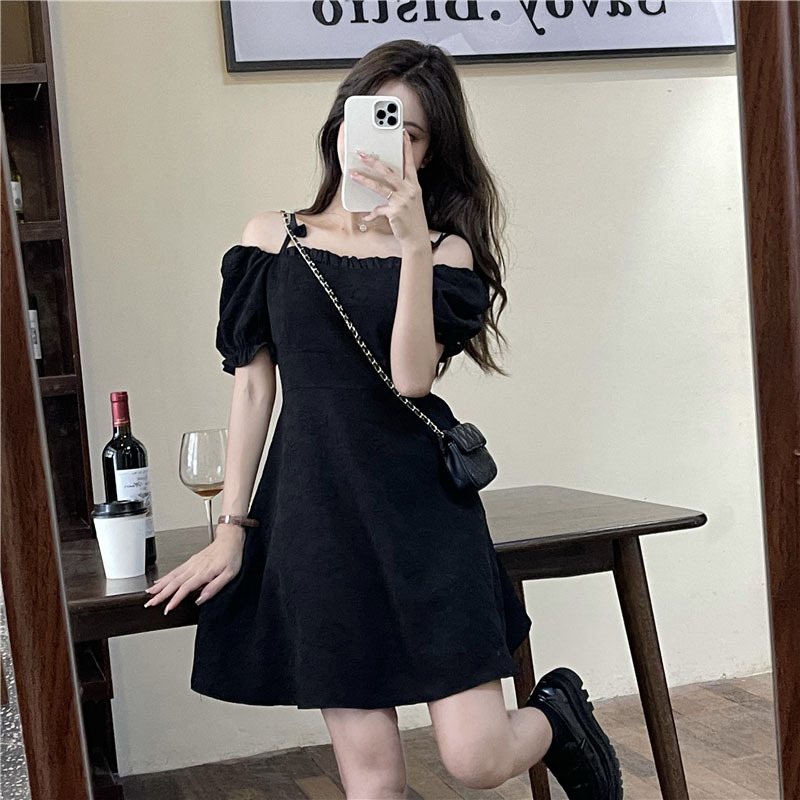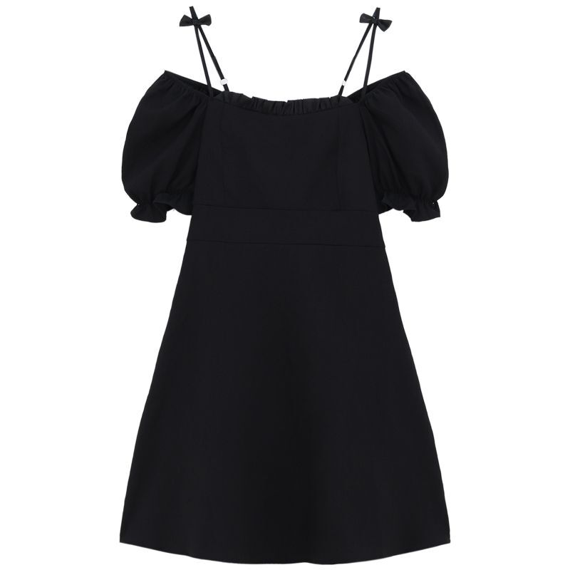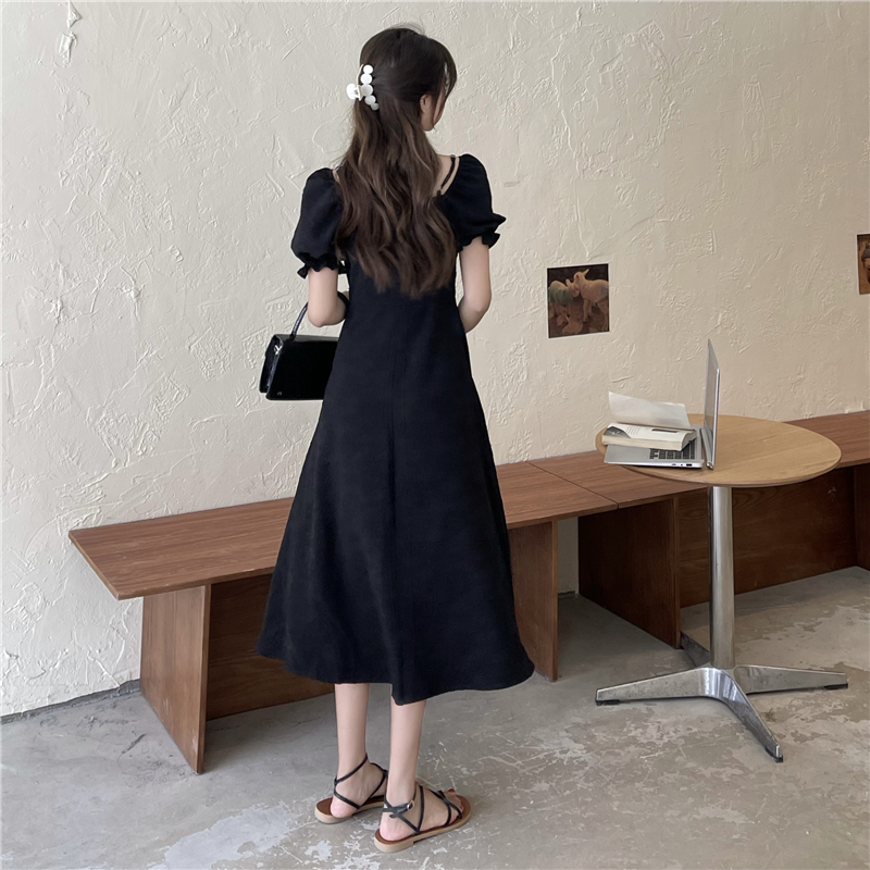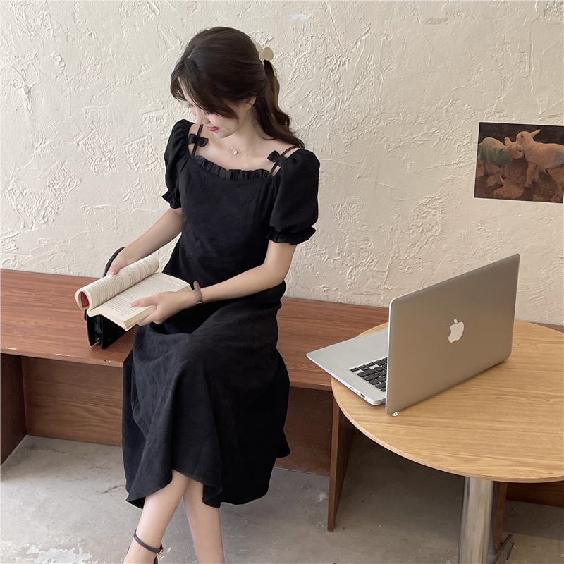 • Official photos, actual price, square neck puff sleeve dress, women's summer 2025 new style, French Hepburn style, little black.