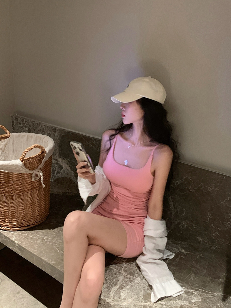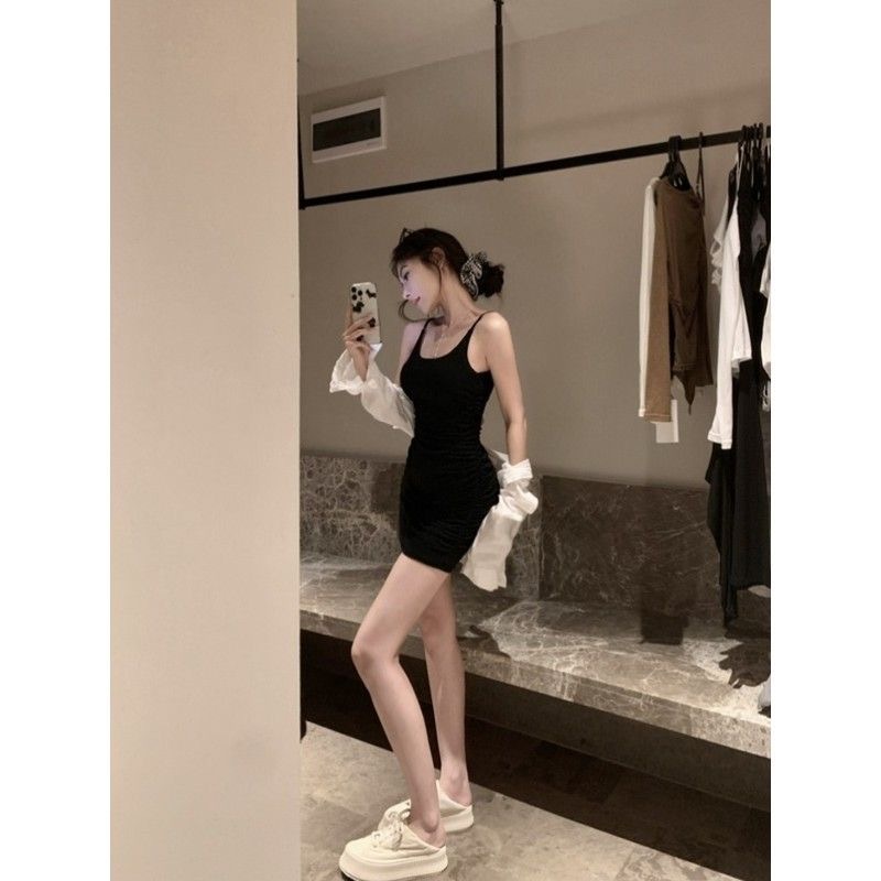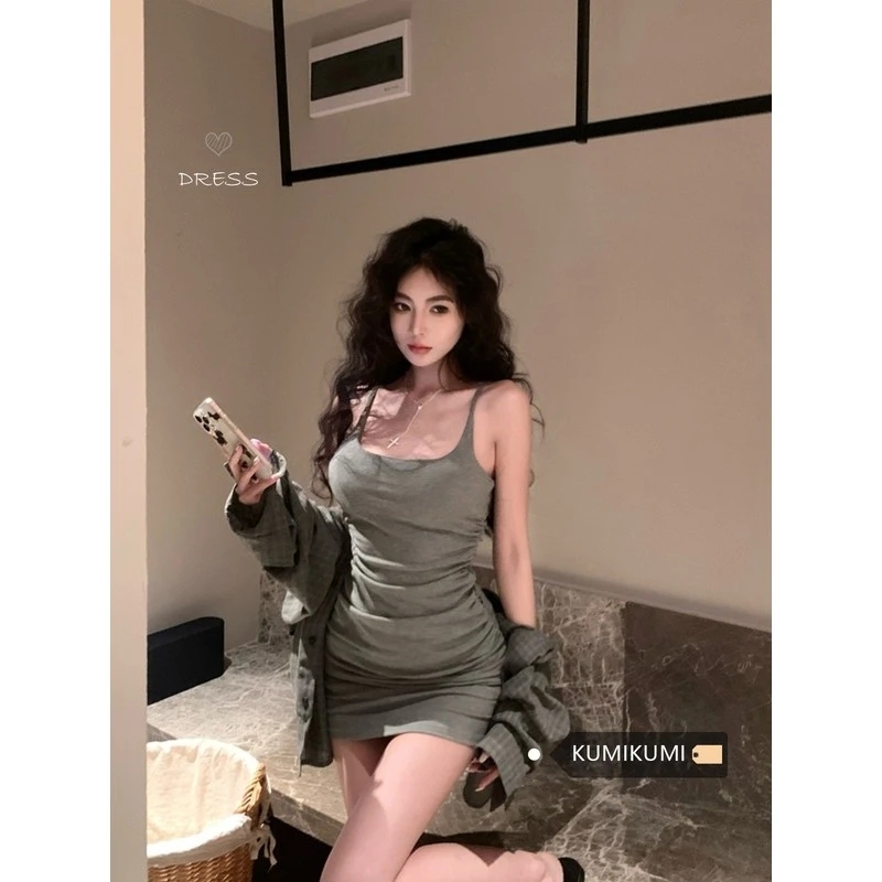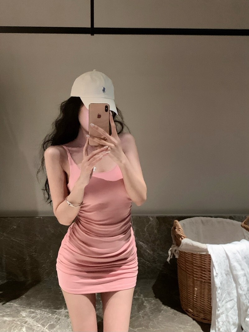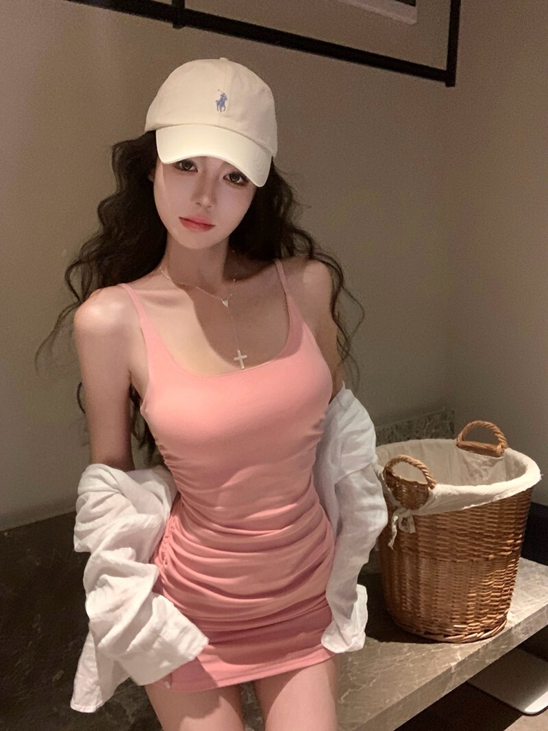 New Pure and Sexy Style Dress, Hot Girl Suspender Dress, Women's Ruffled Waist-cinching Hip-hugging Mini Skirt