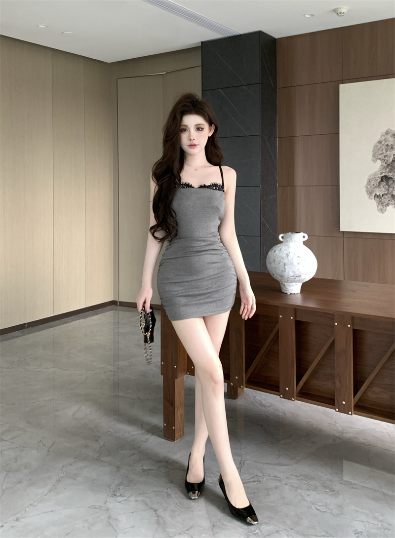 Mature and sexy short bodycon dress with lace trim, strapless design, slim fit, and alluring style.