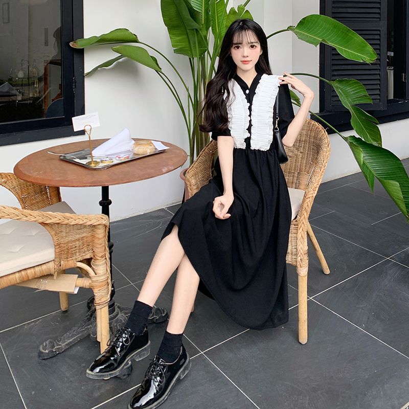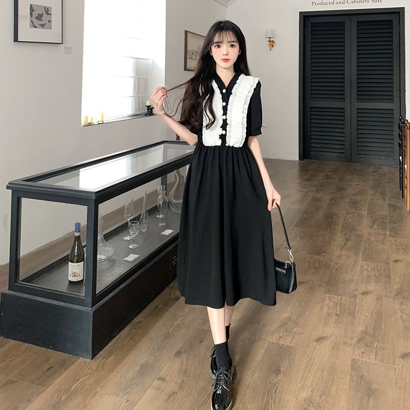 • #813 Real Shot & Price Summer New Plus Size Women's Fashionable and Elegant V-Neck Slim Waist Ruffle Dress