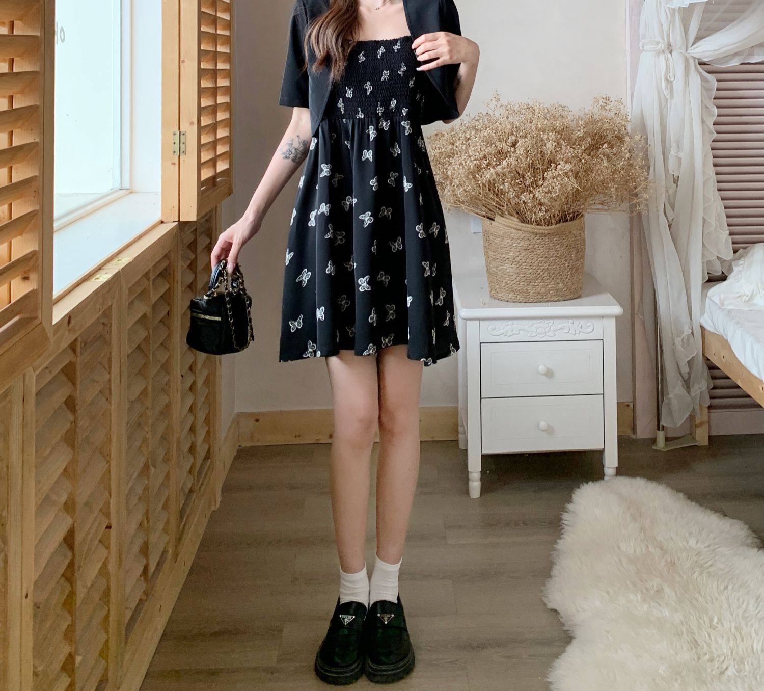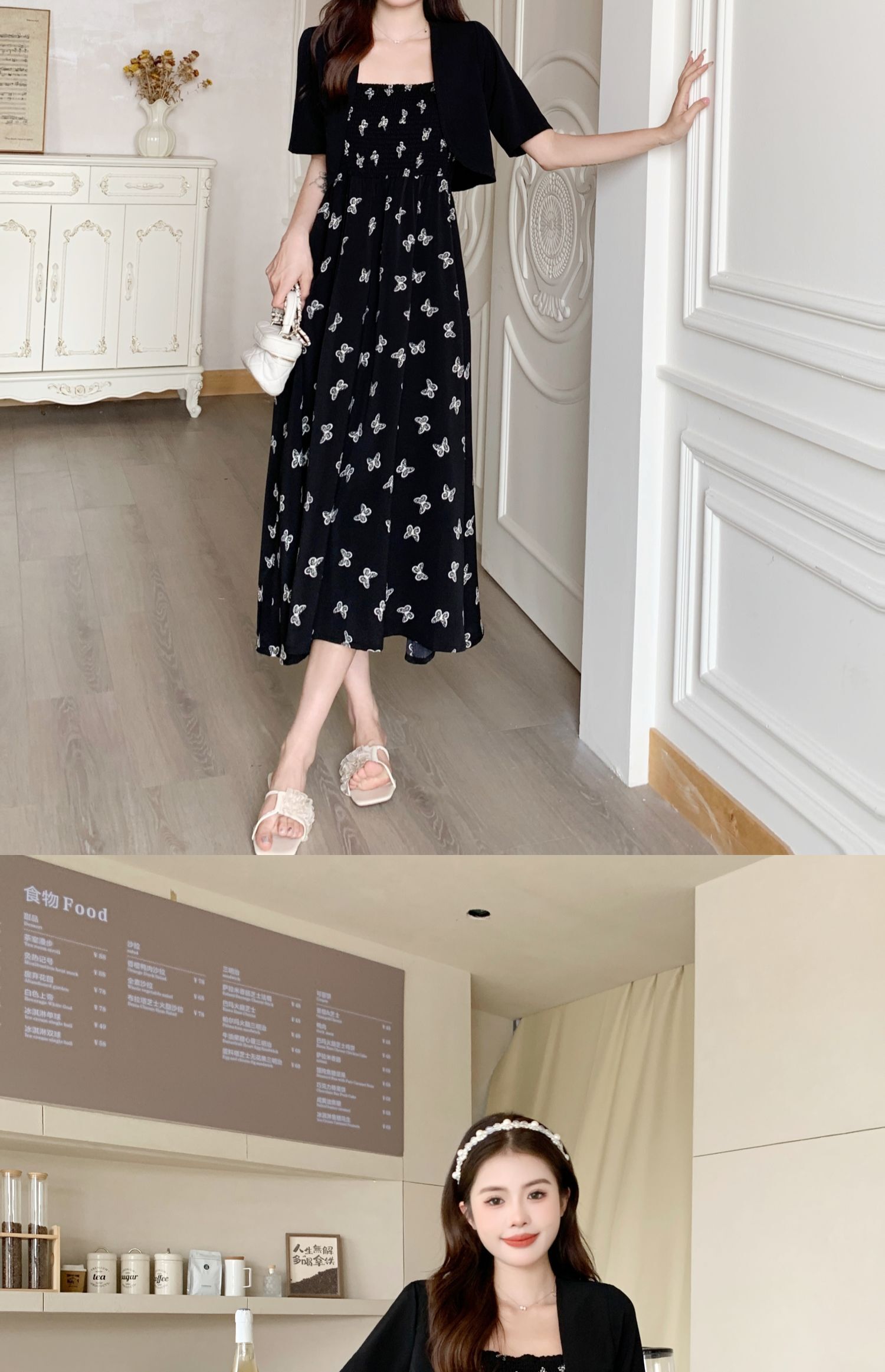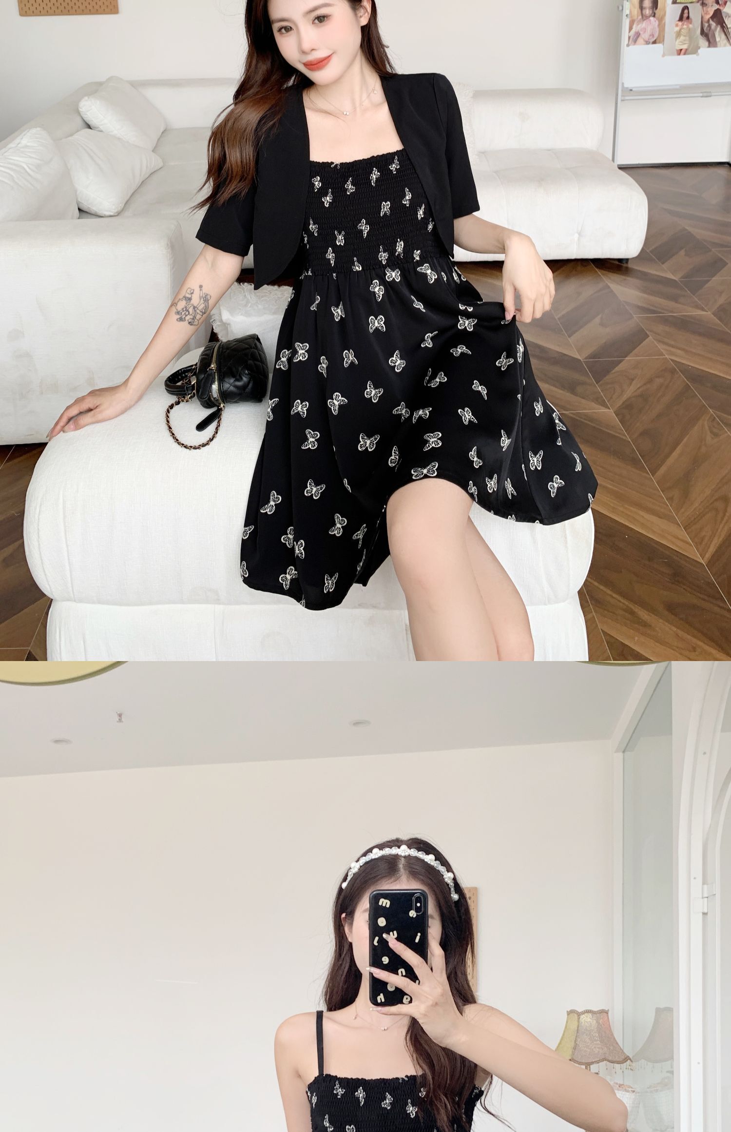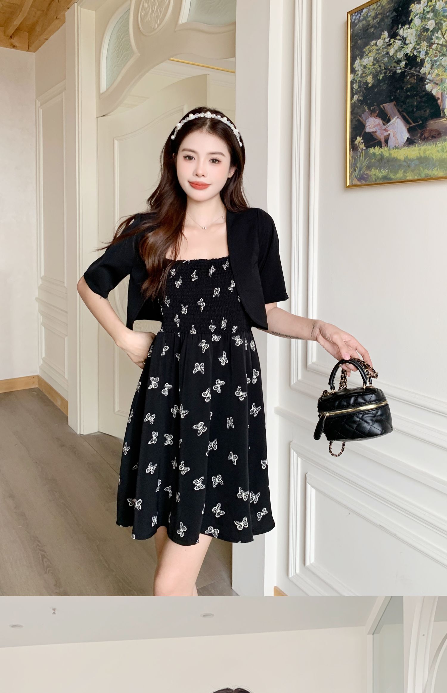 Plus-size women's summer new style, flattering and youthful, floral print suspender dress two-piece set.