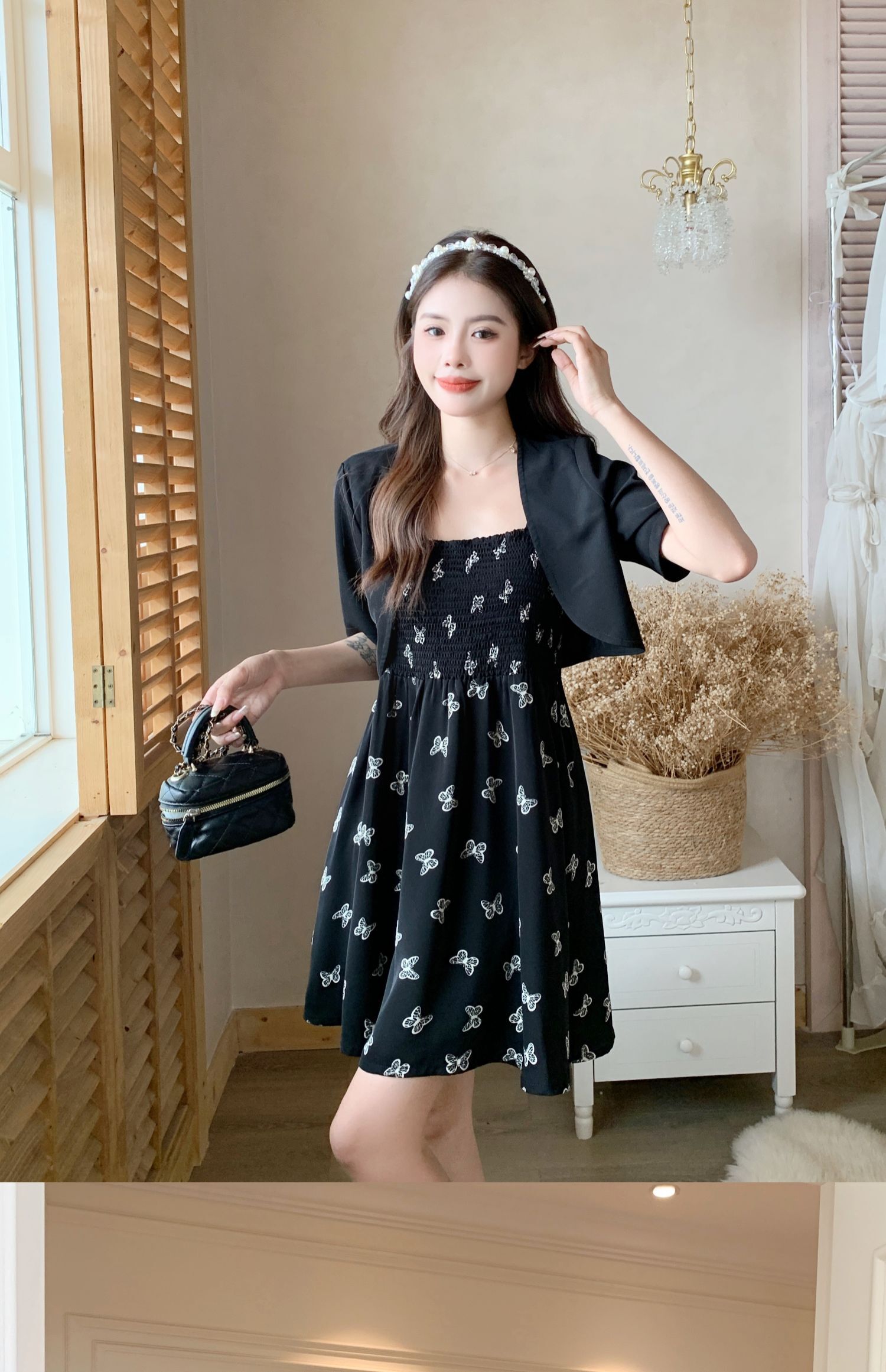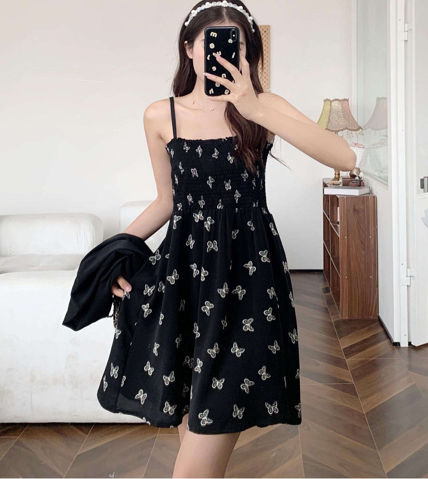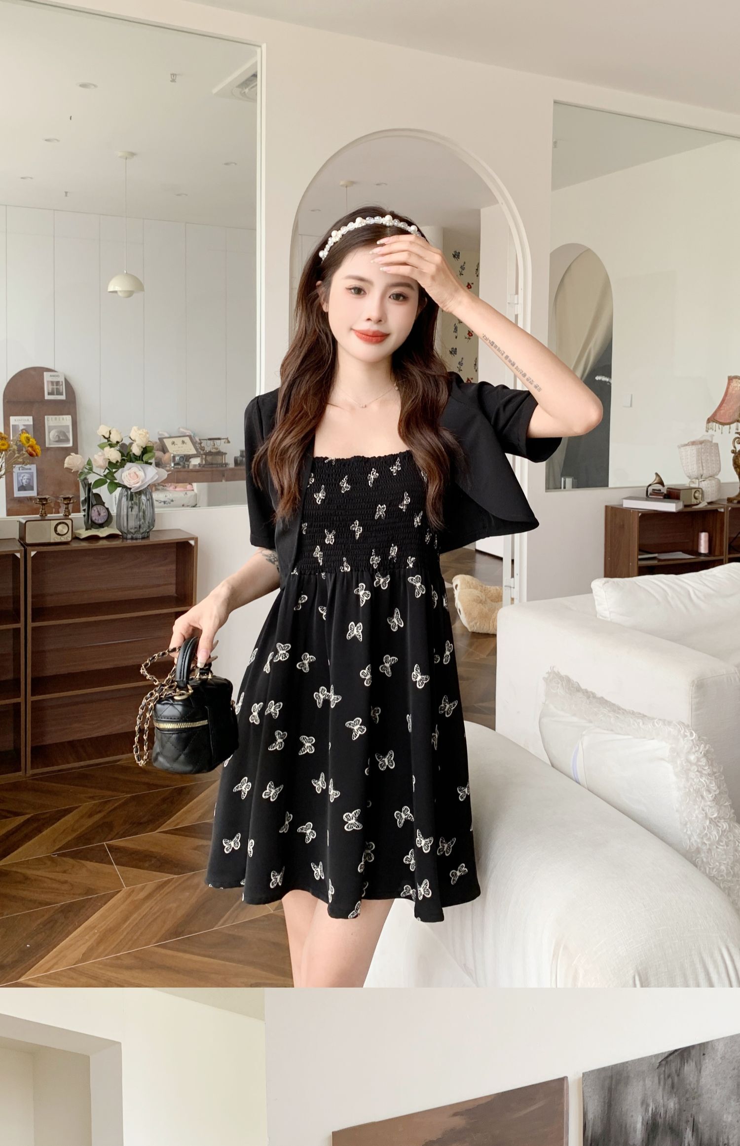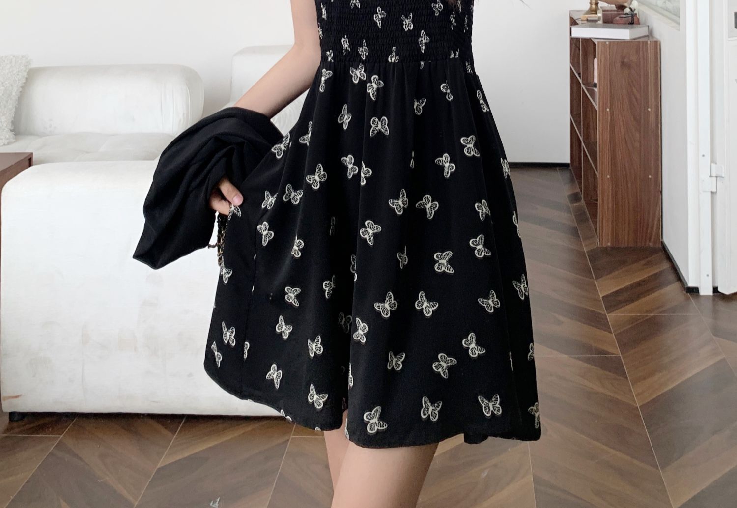 Plus-size women's summer new style, flattering and youthful, floral print suspender dress two-piece set.