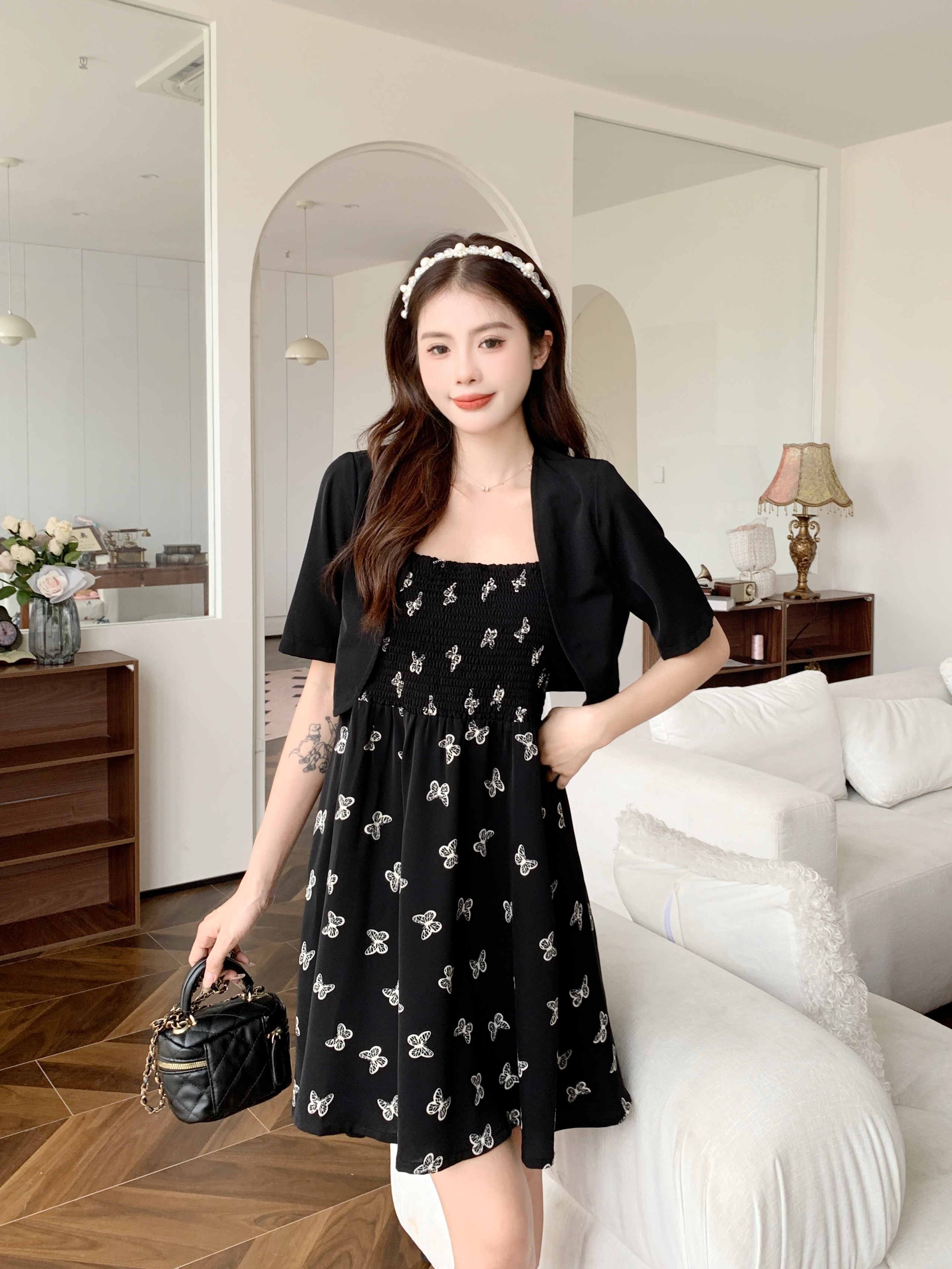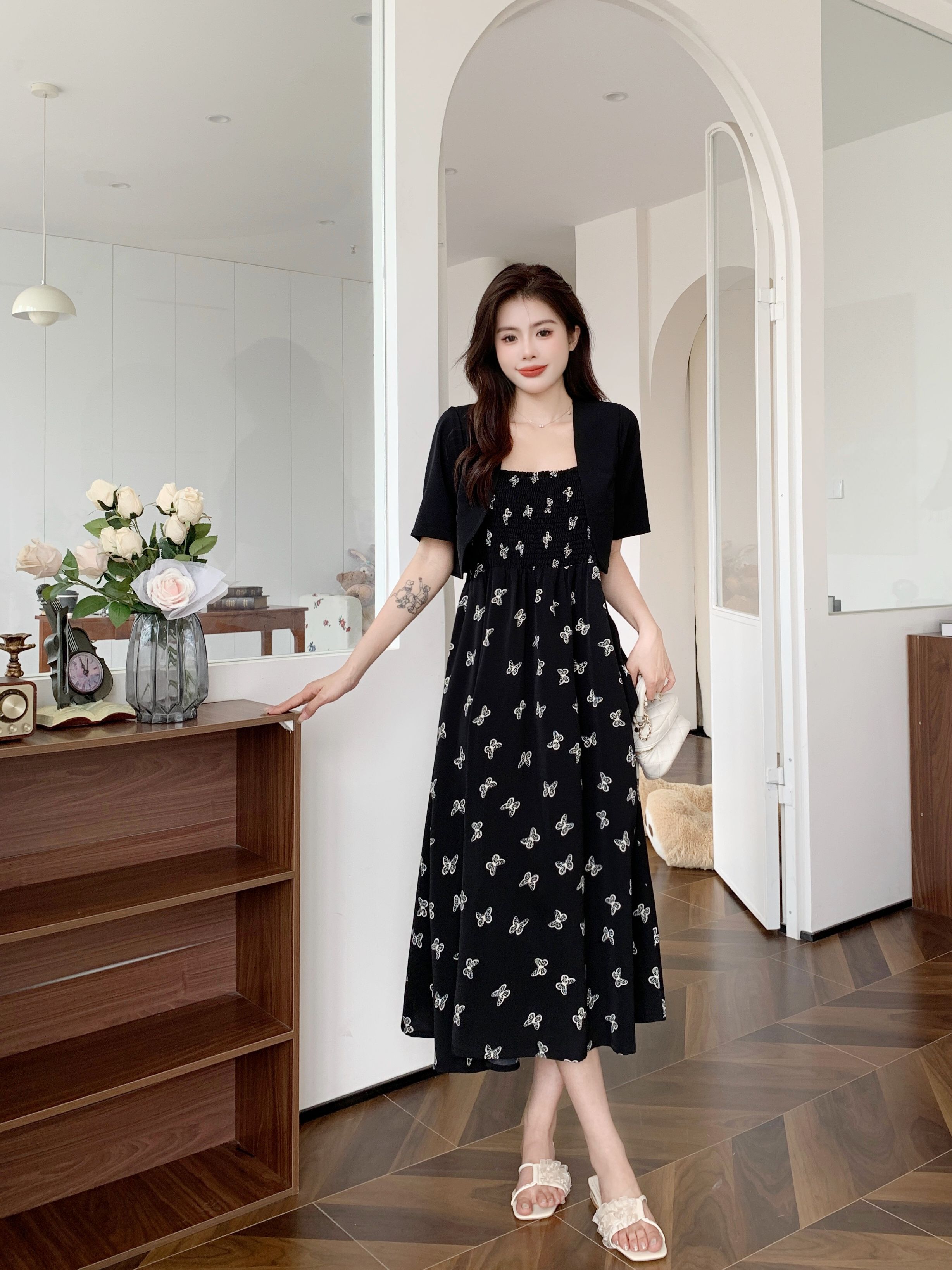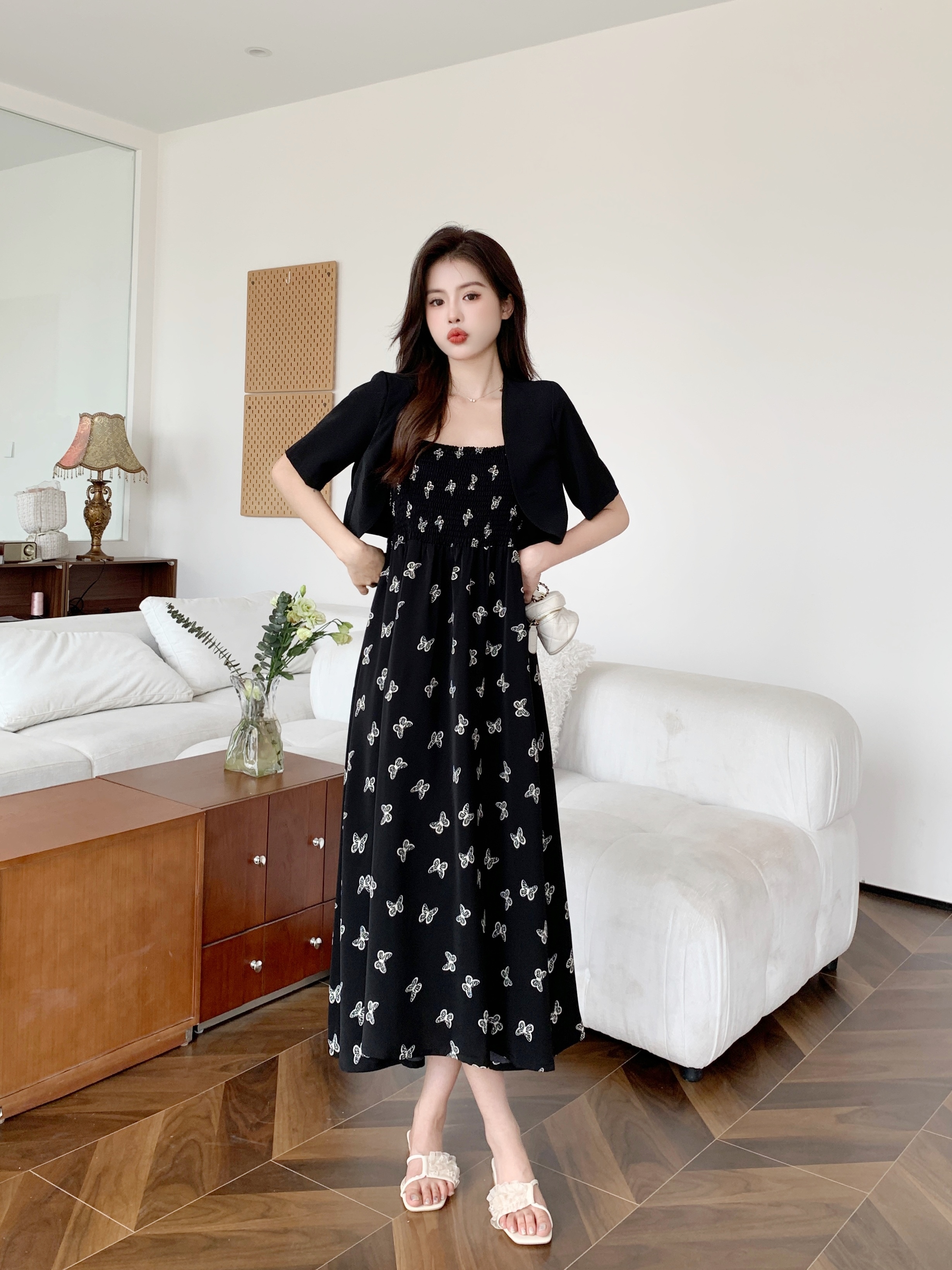 • Plus-size women's summer new style, flattering and youthful, floral print suspender dress two-piece set.