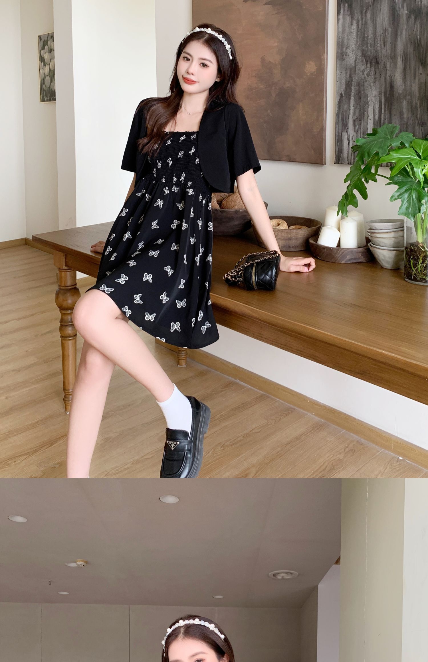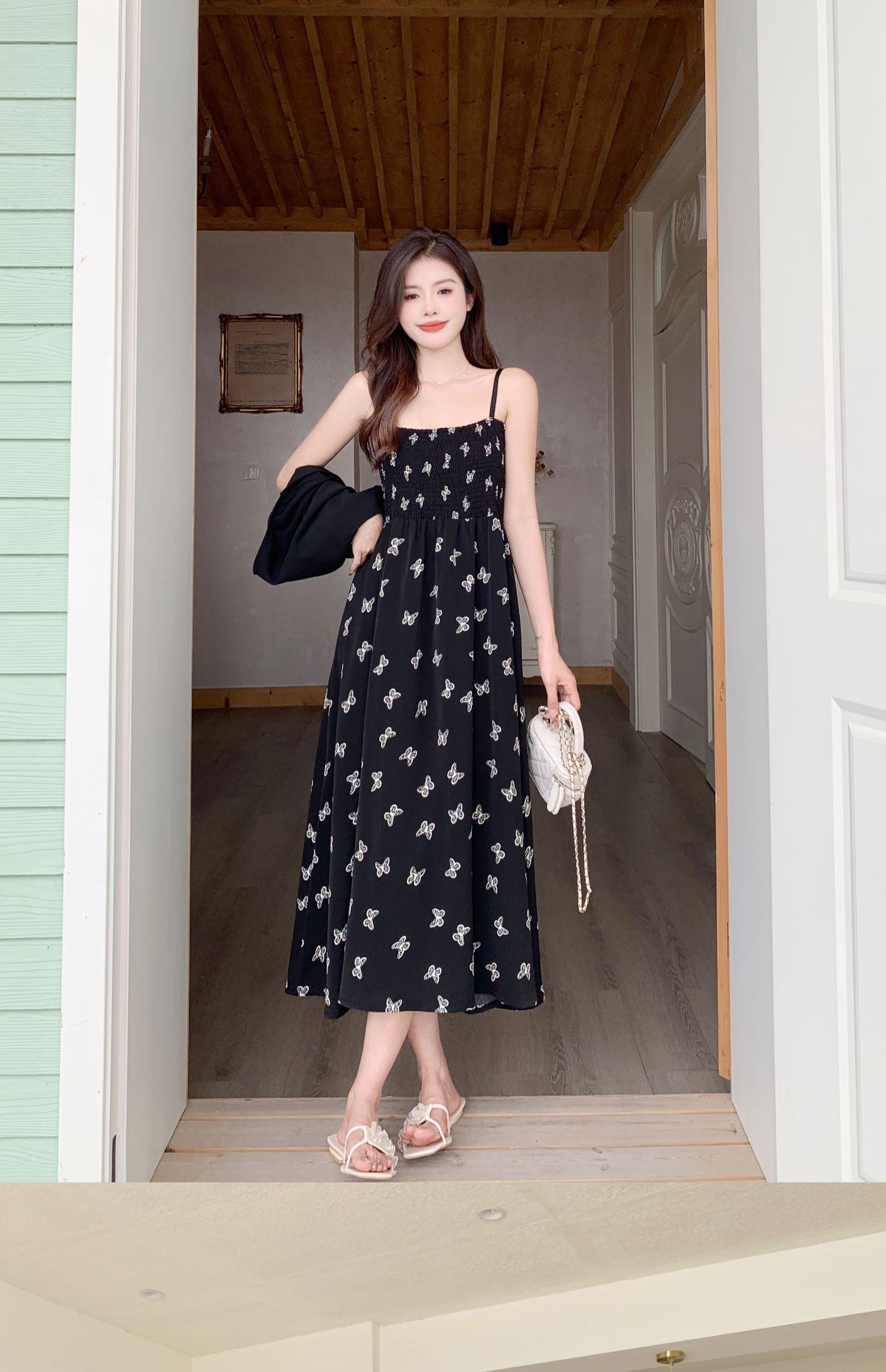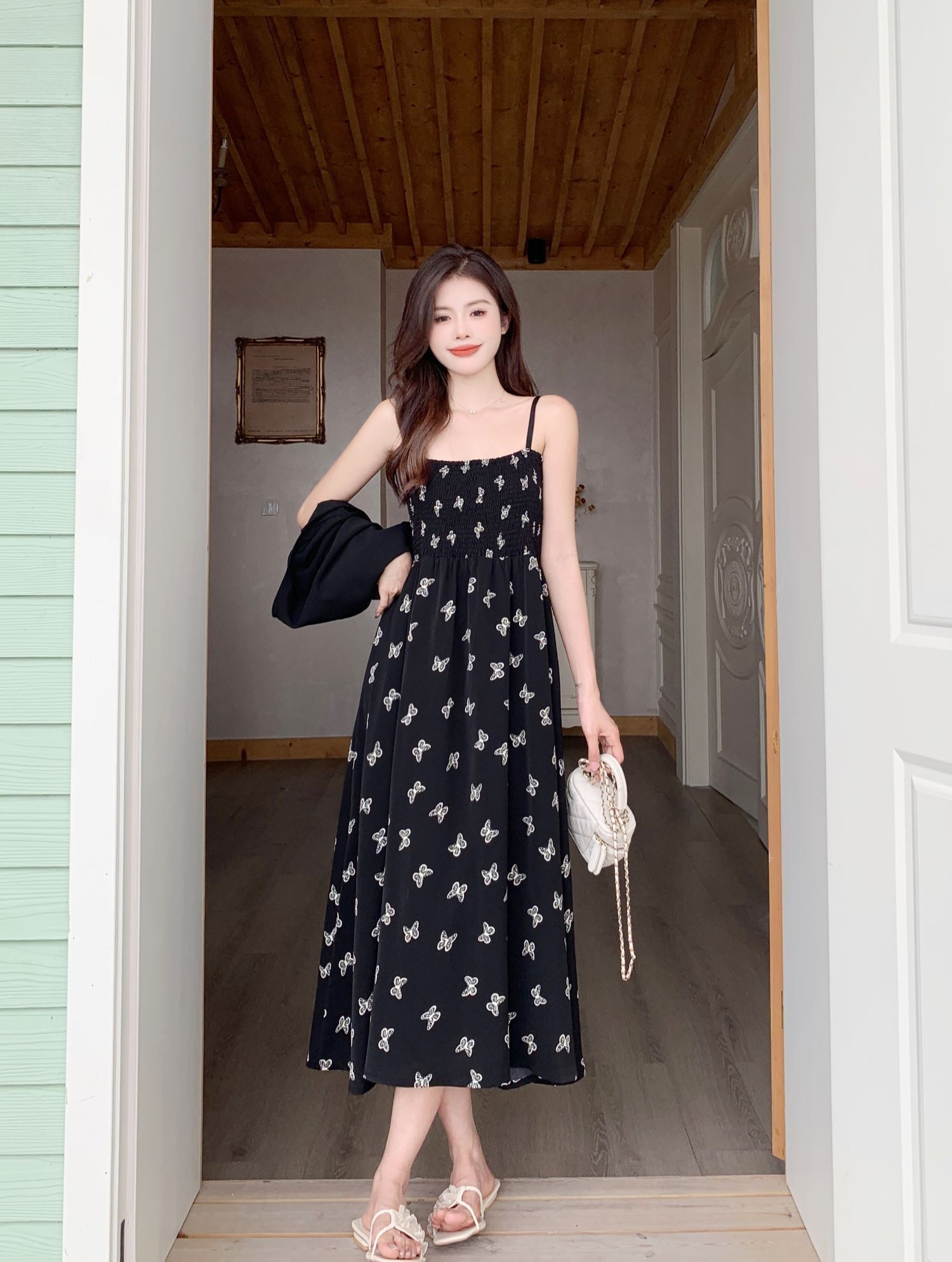 • Plus-size women's summer new style, flattering and youthful, floral print suspender dress two-piece set.