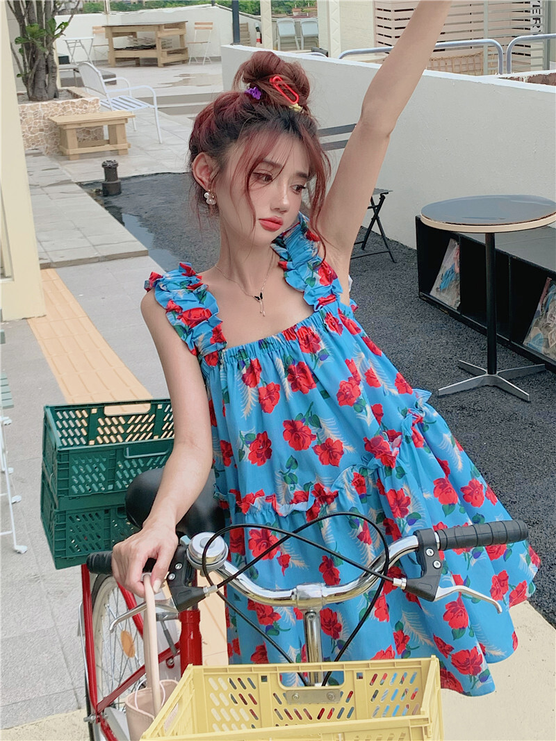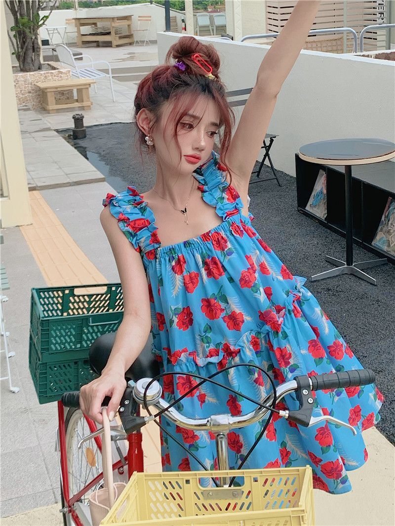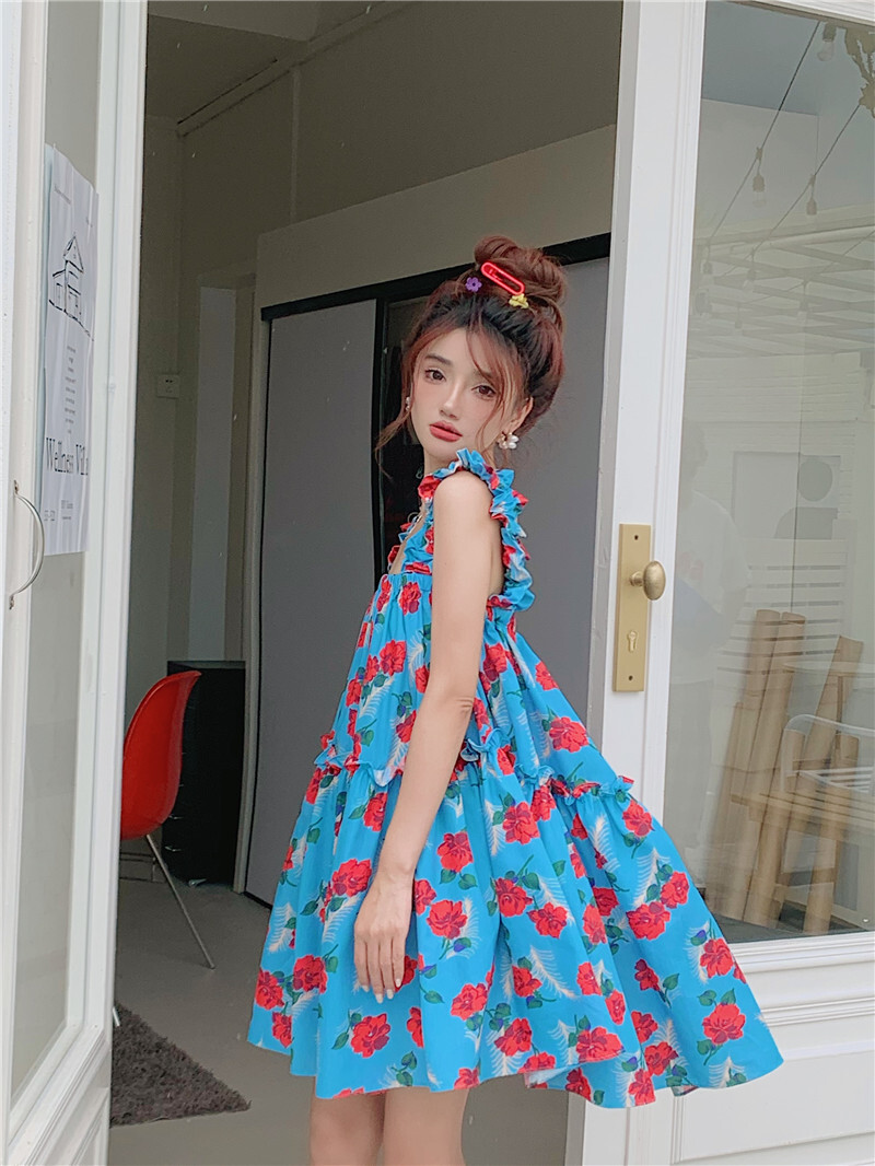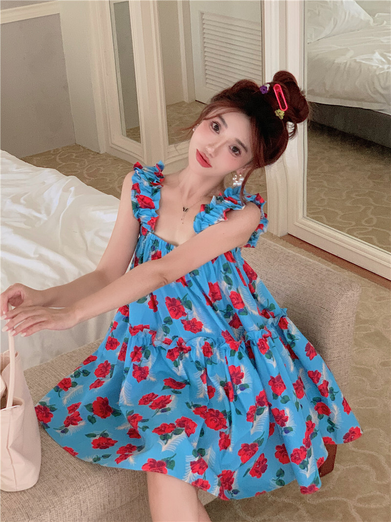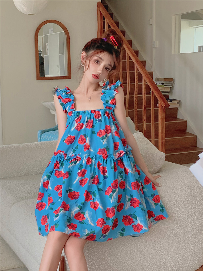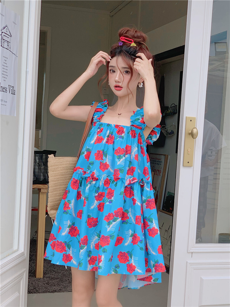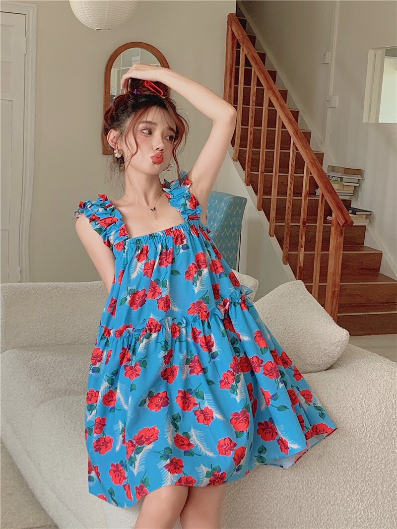 • Pastoral style floral print sundress for women, new summer style, loose fit, slimming and flattering short skirt