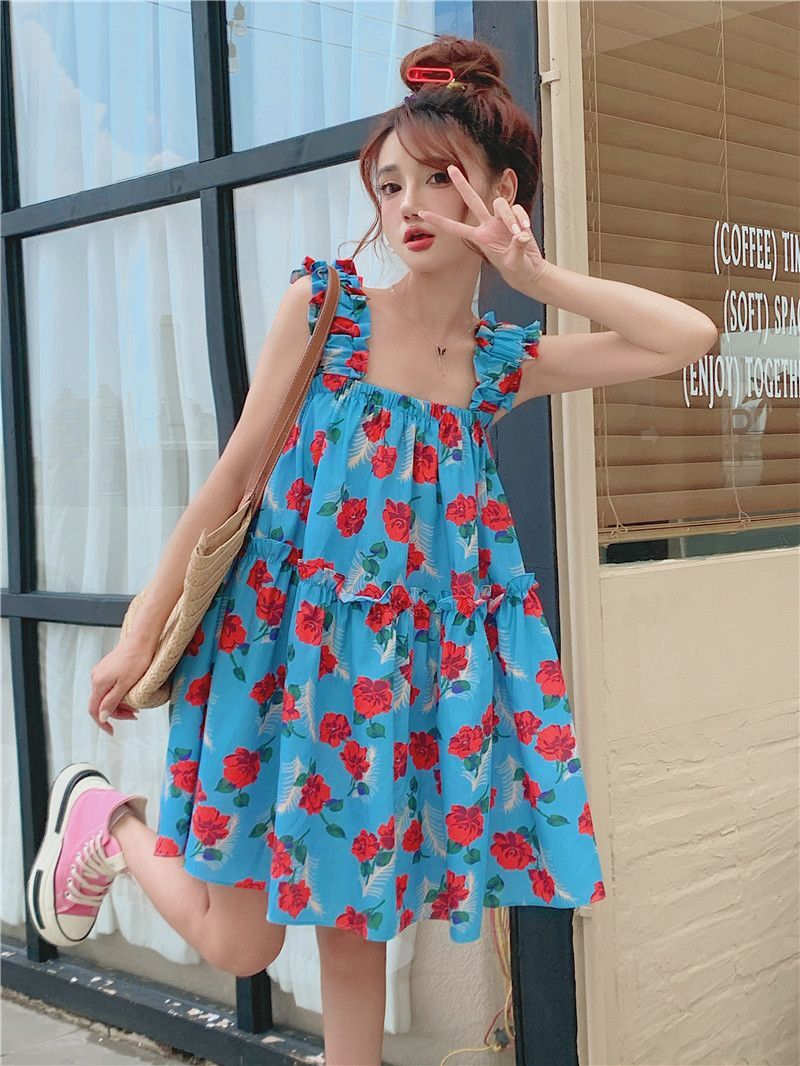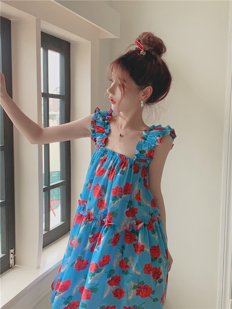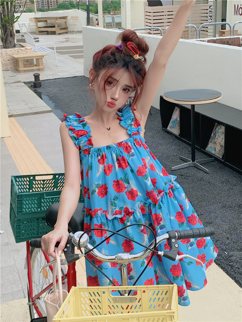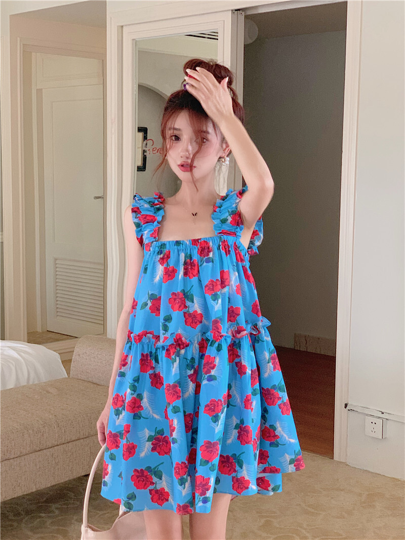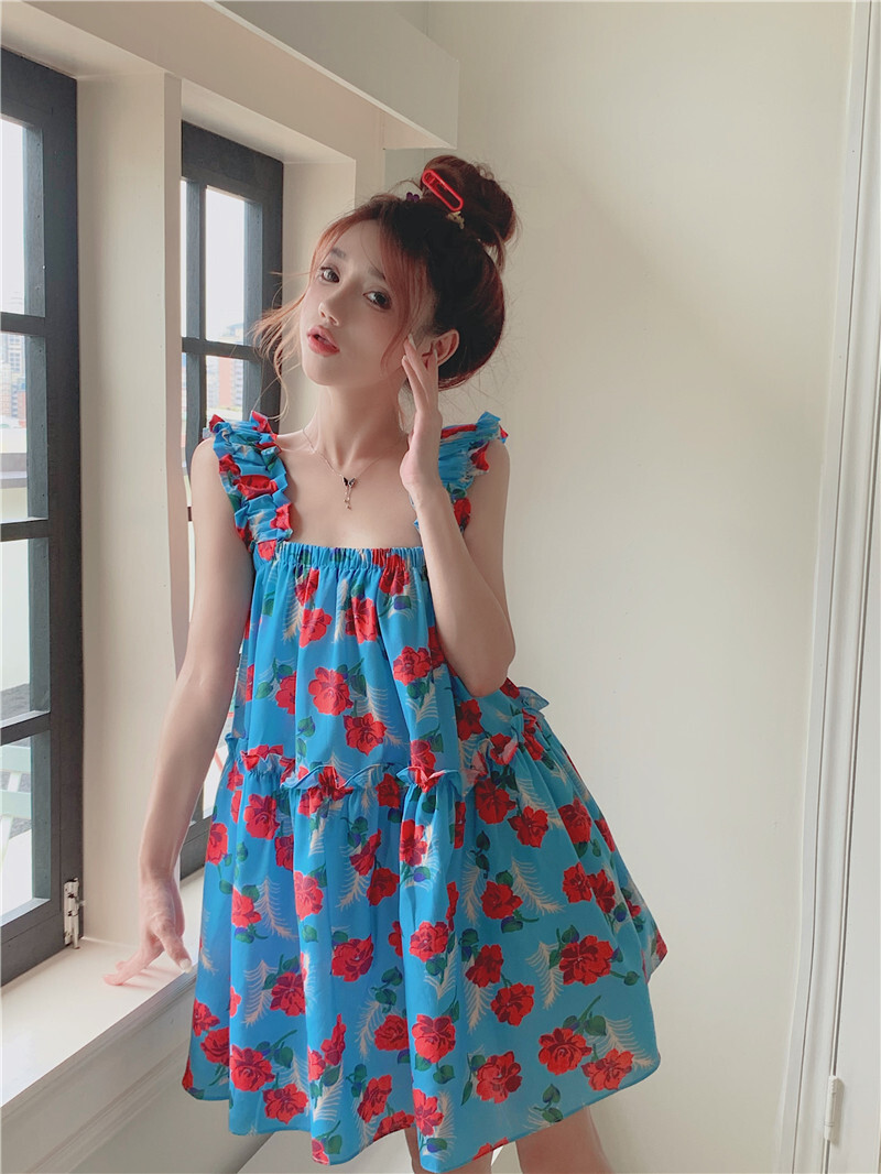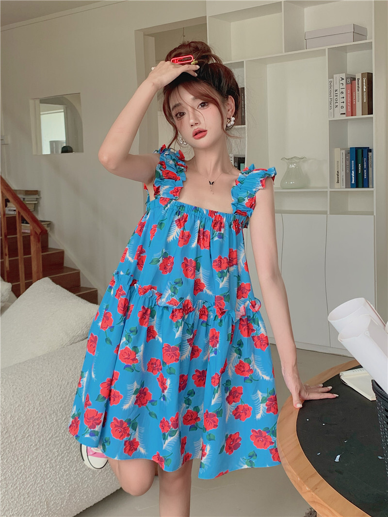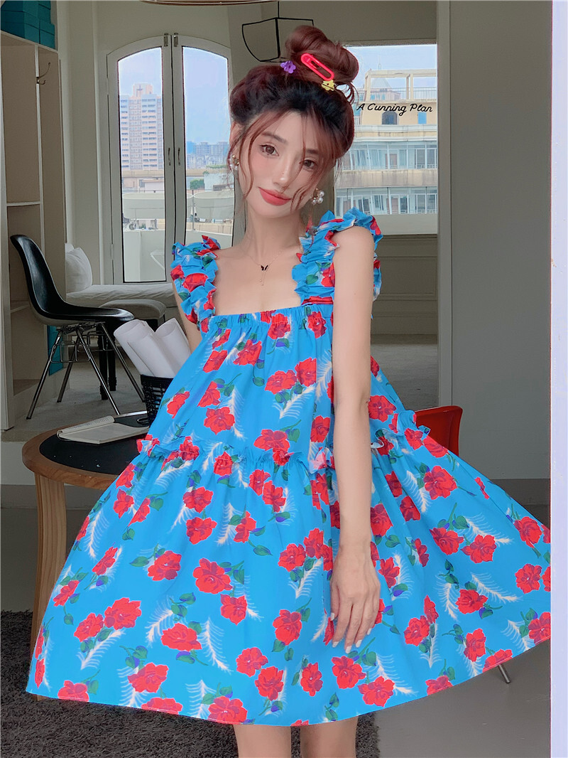 • Pastoral style floral print sundress for women, new summer style, loose fit, slimming and flattering short skirt